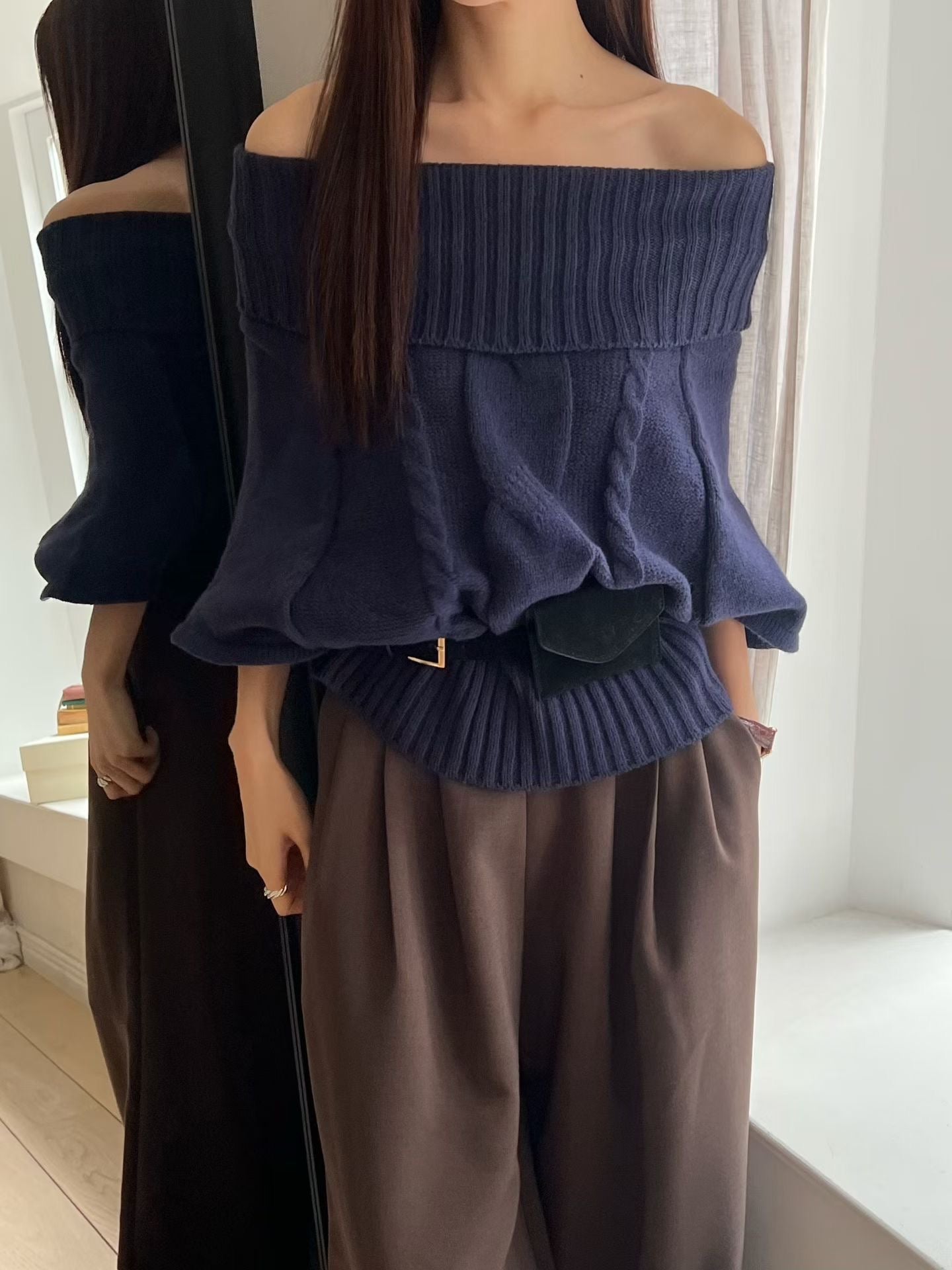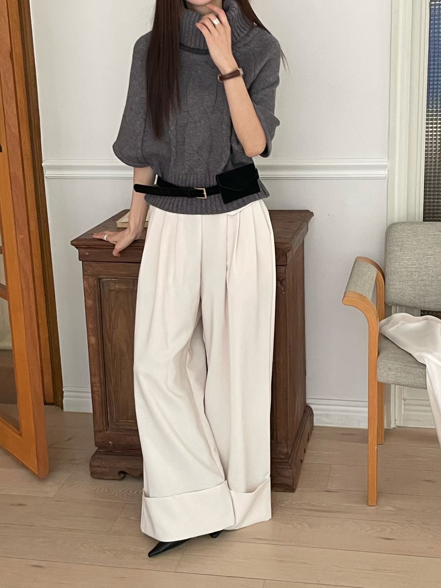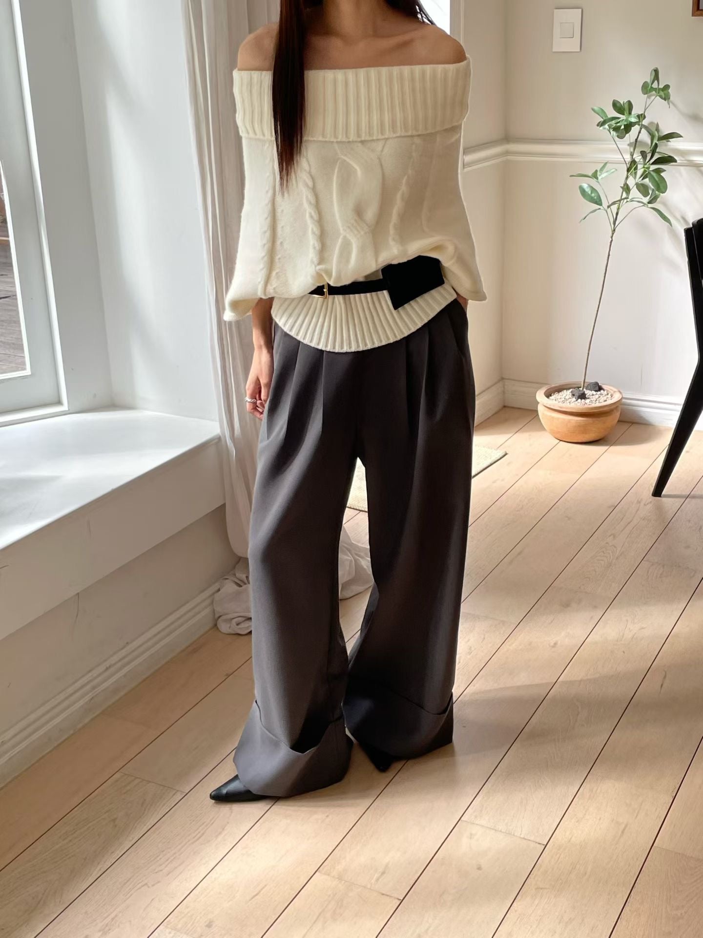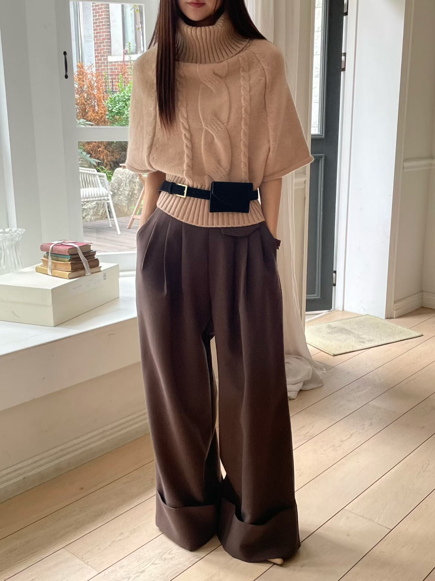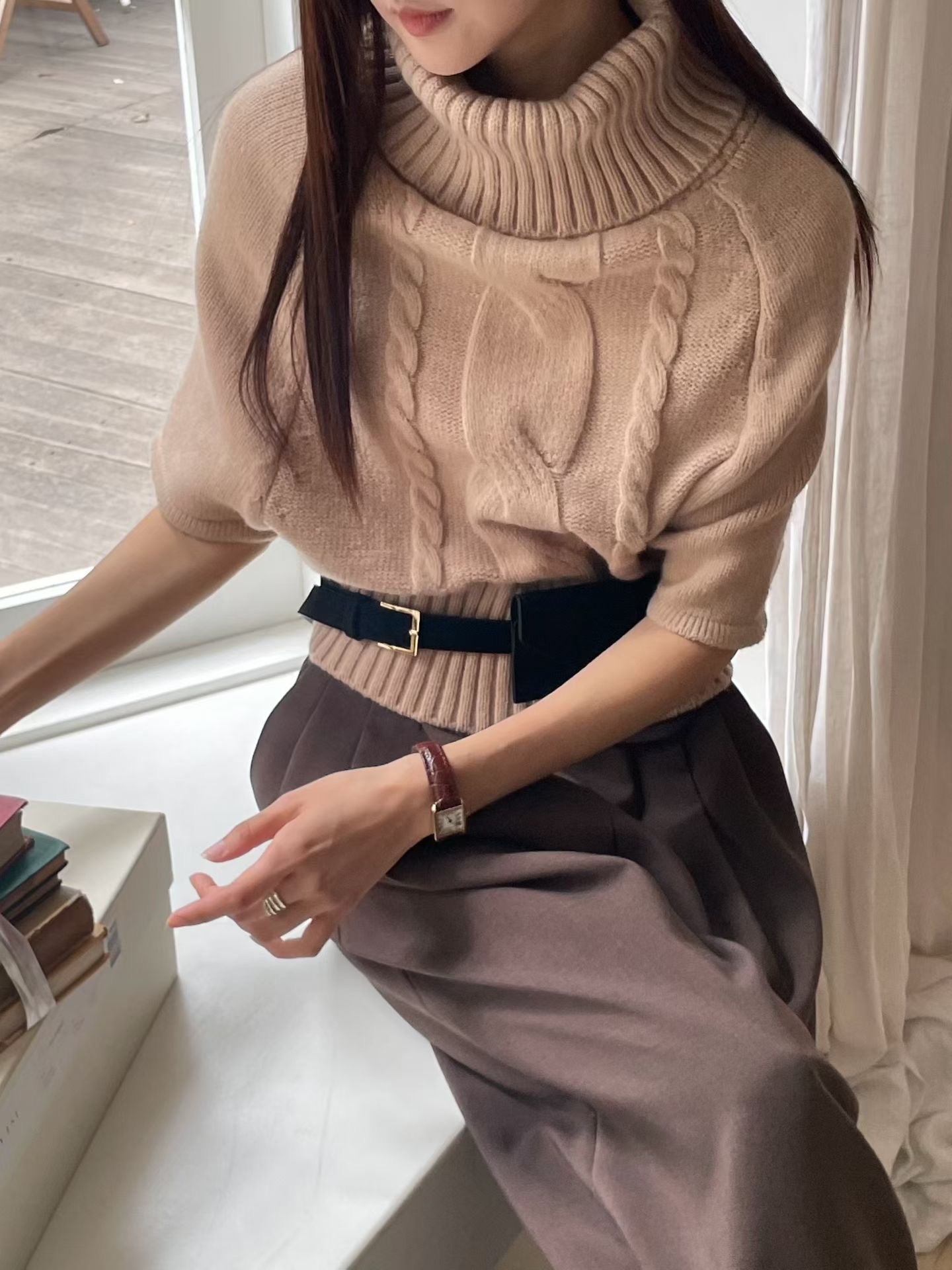 ⫸ 領口變化~一衣多造型:厚實羅紋高領可整圈立起保暖、對摺成寬翻領,或往下折成直肩/斜肩造型,一件搞定多風格。高領|翻領|露肩。