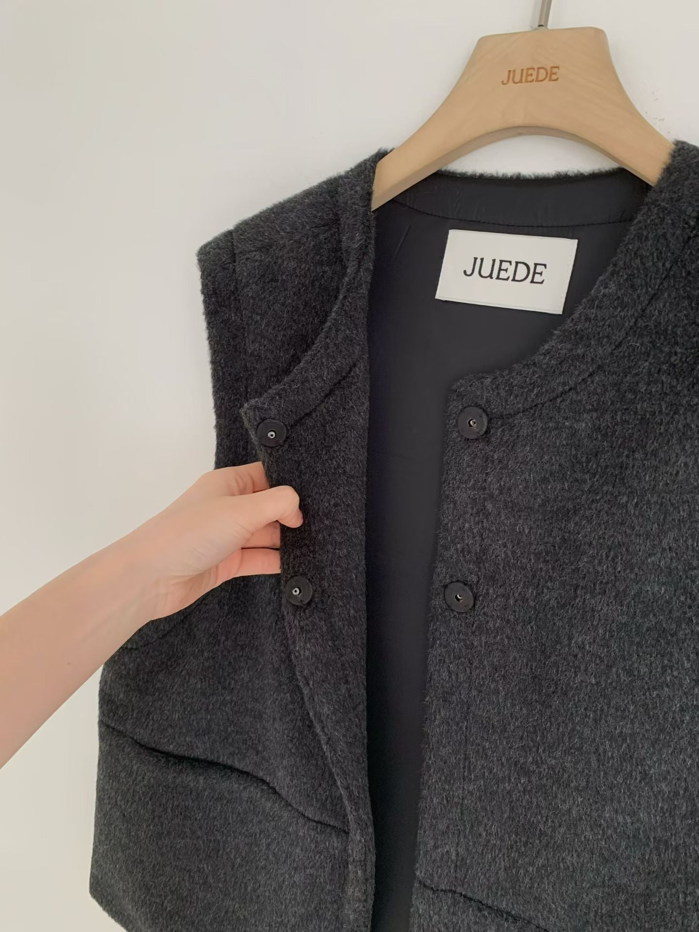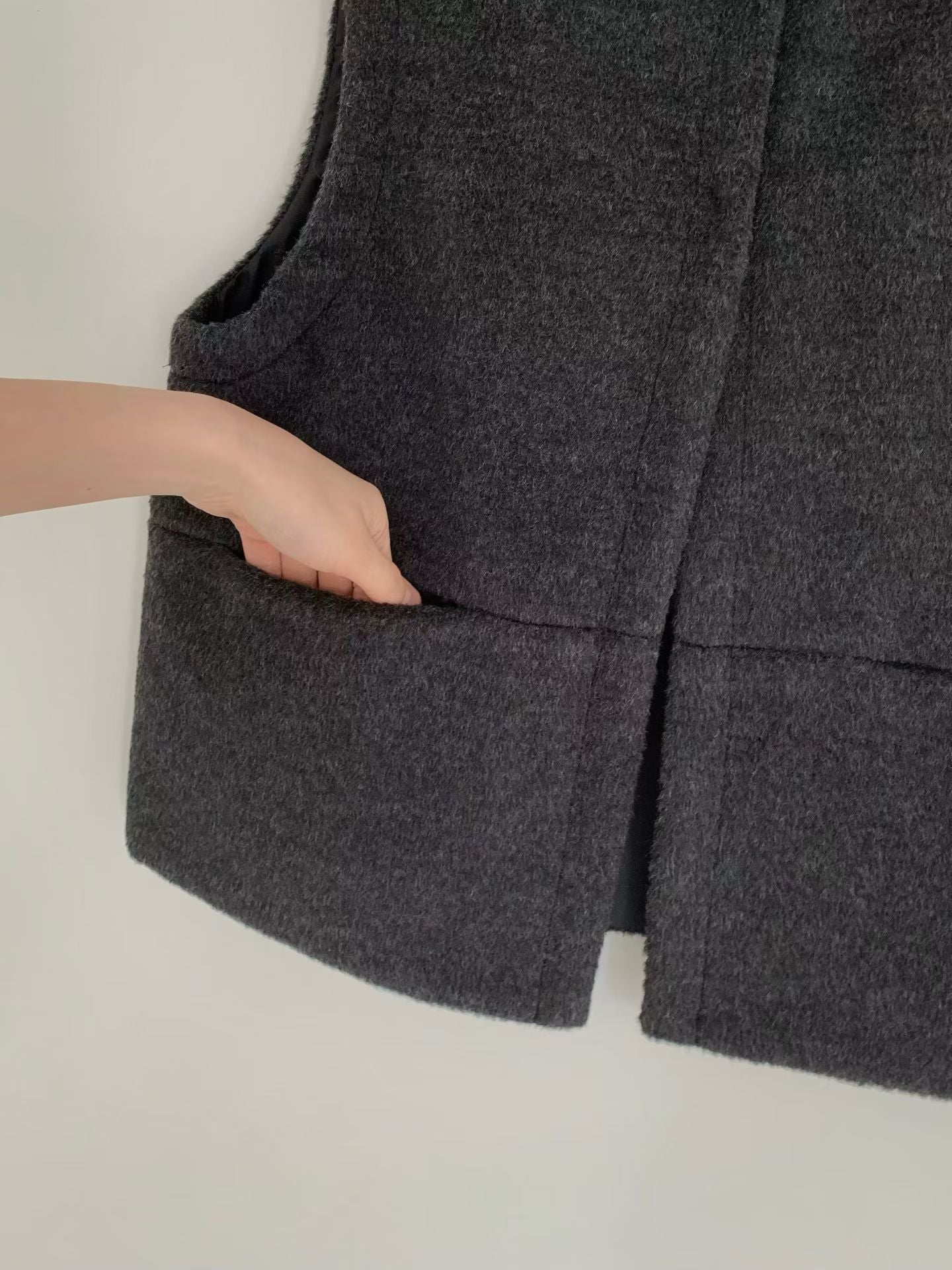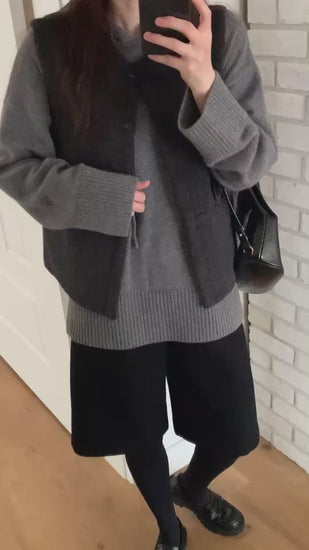 - 這款背心版型方正俐落:從休閒到氣質風都能駕馭,是冬季必備、耐穿又百搭的質感單品。