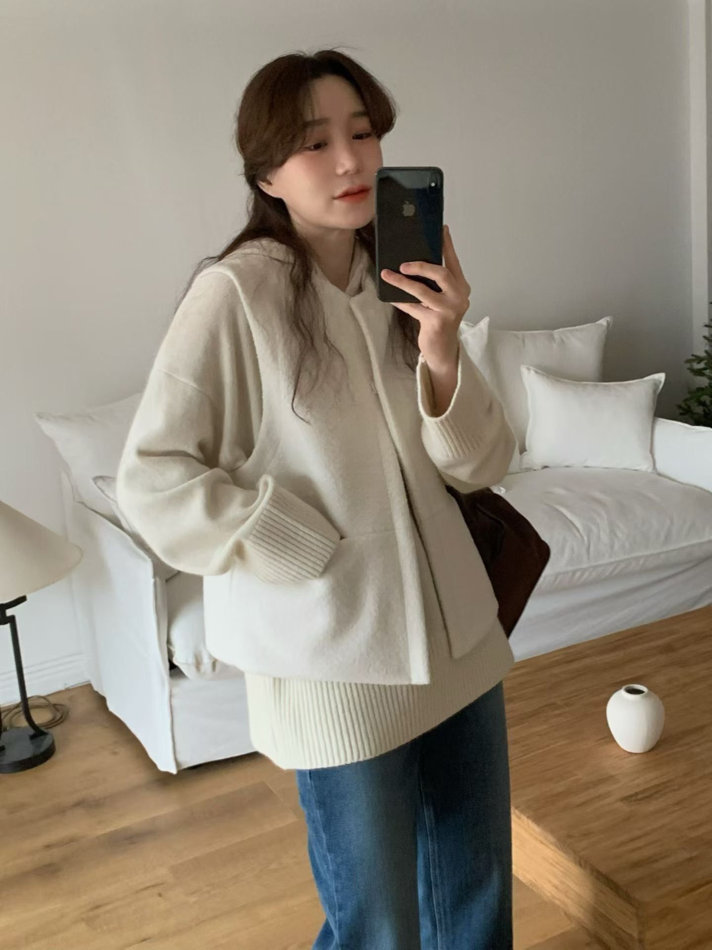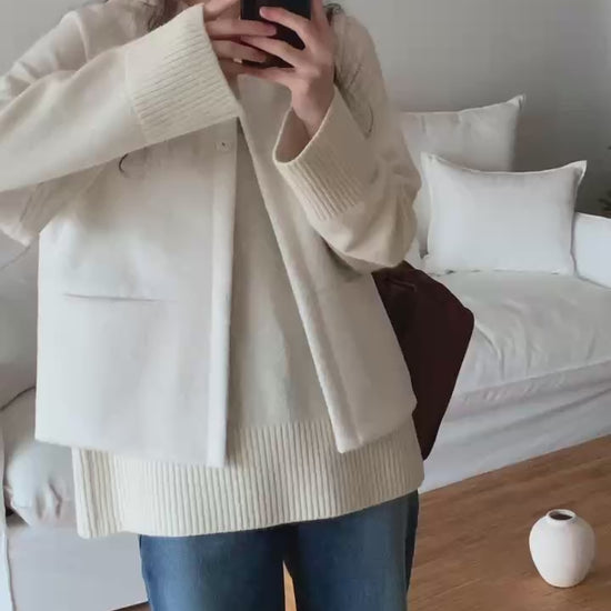 - 整體呈現高級極簡、乾淨俐落的線條,搭配柔軟毛呢材質,給人非常典雅的高級感。