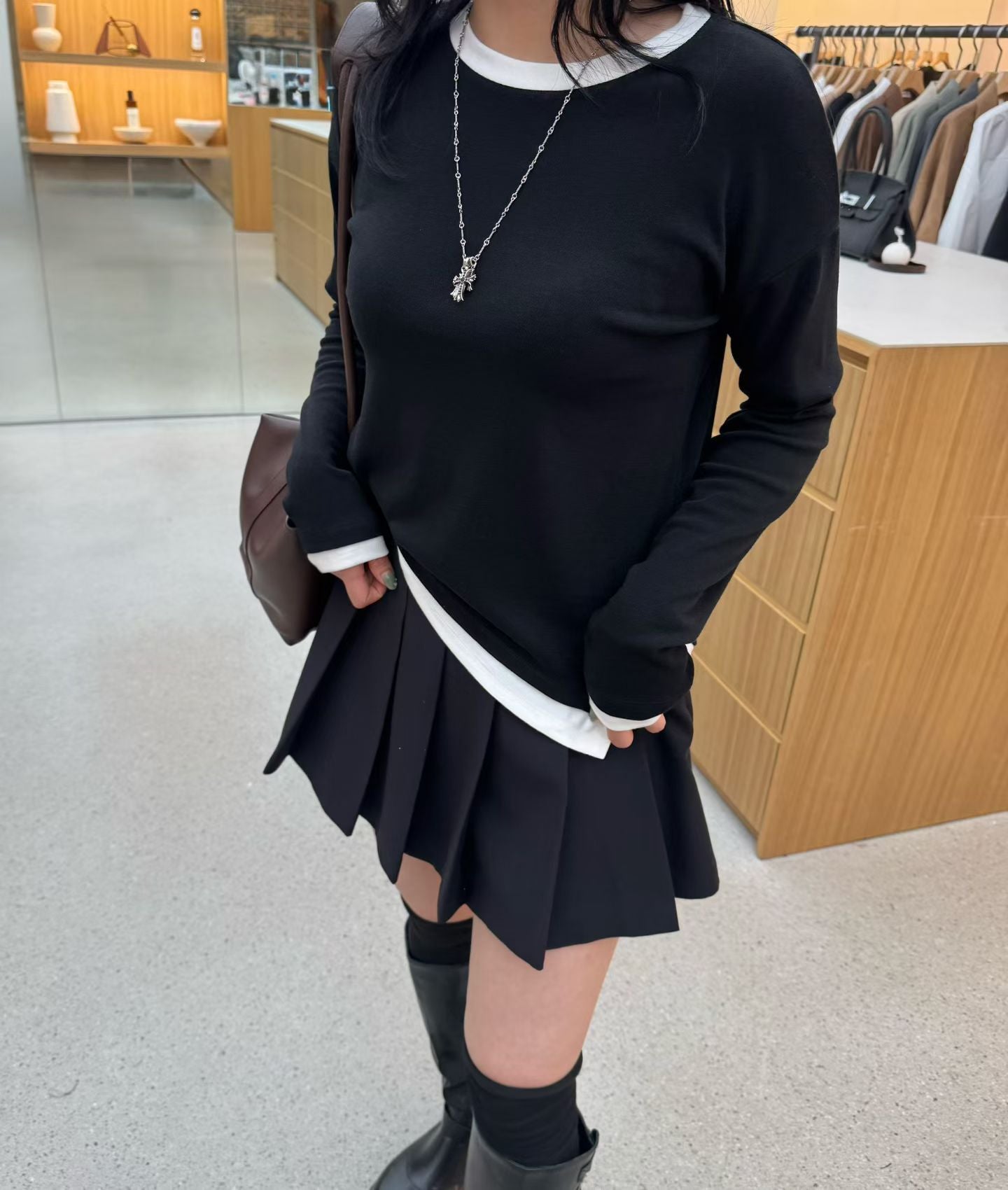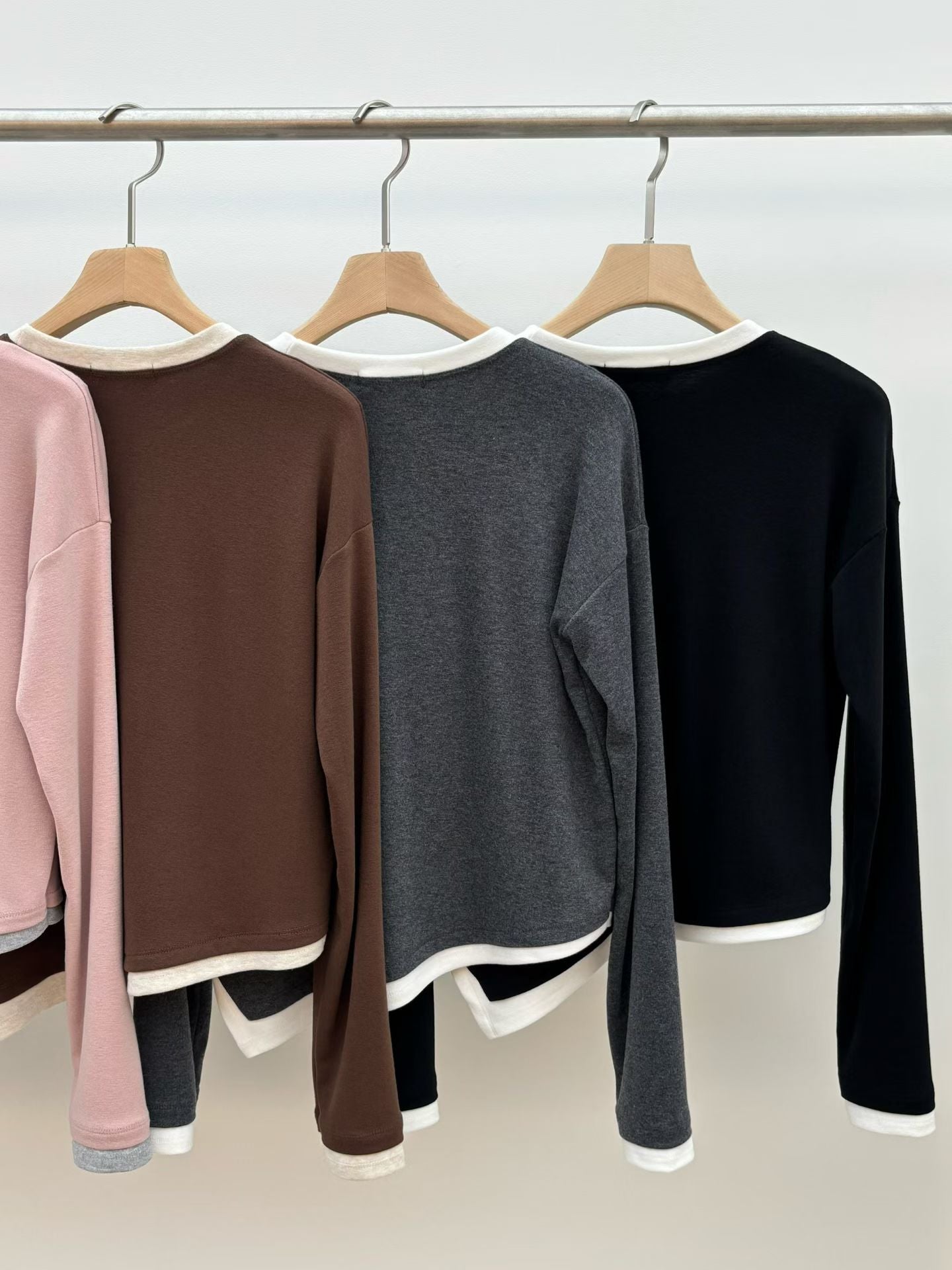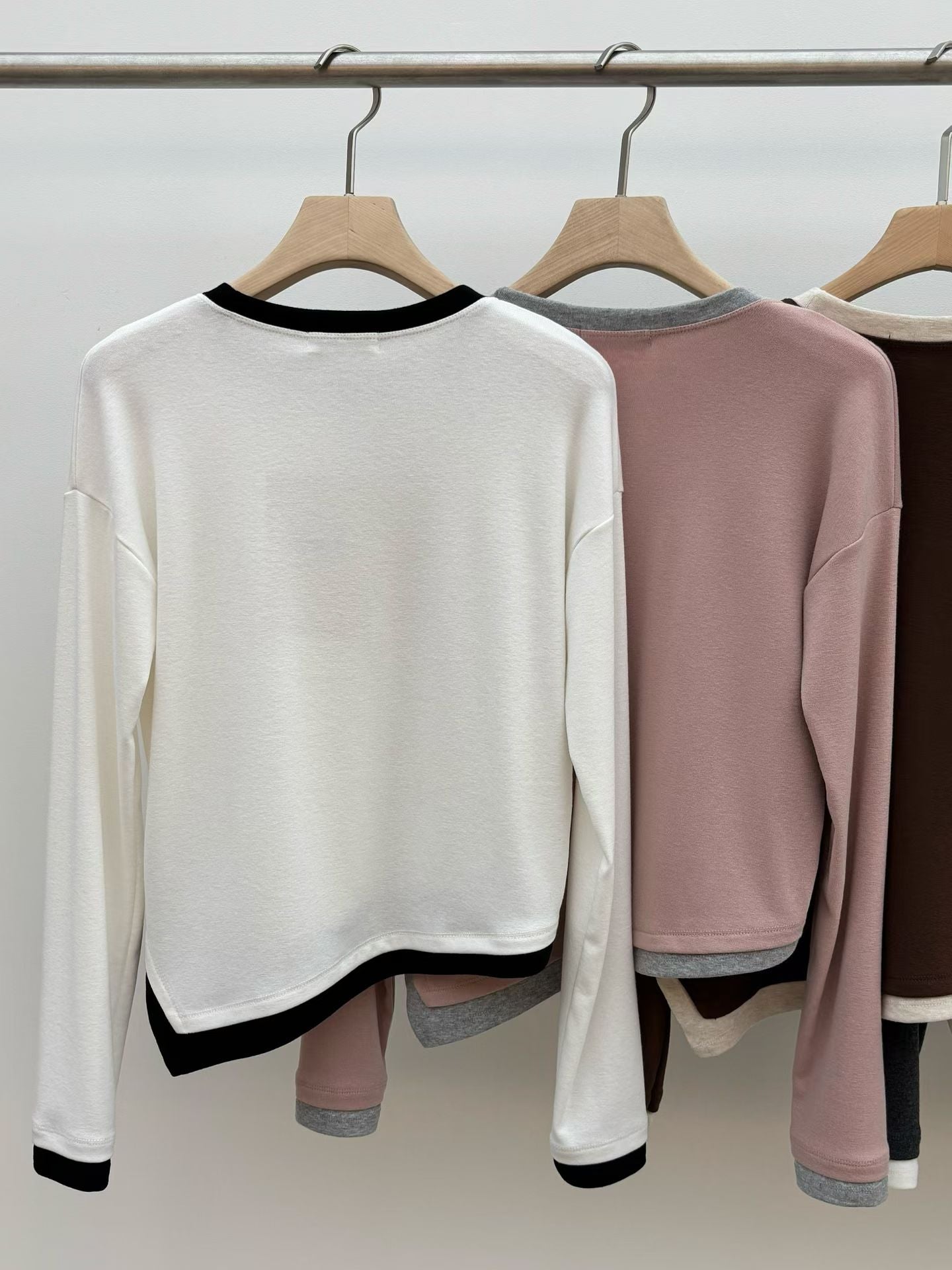 ♡假兩件撞色圓領百搭上衣♡ (C251219)