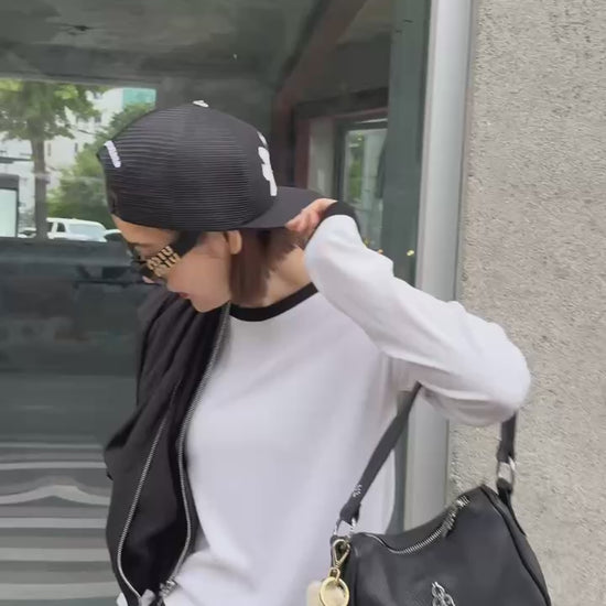 - 下擺採 不規則弧形剪裁,微微露出內裡的撞色邊,穿起來自然顯瘦。