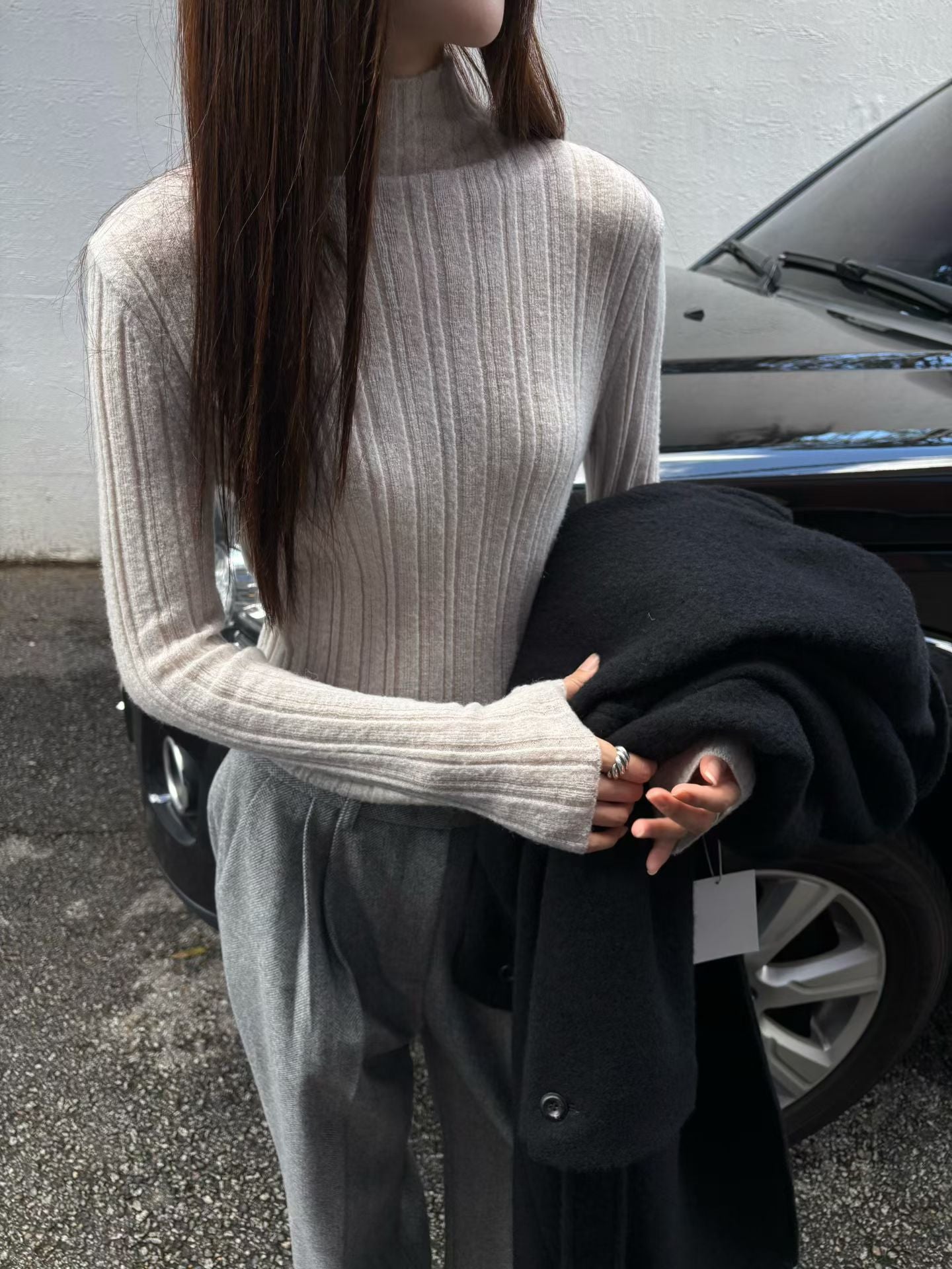 - 微高領設計(不挑脖型):不貼喉、不悶熱,剛剛好的高度,秋冬單穿優雅、內搭不厚重。
