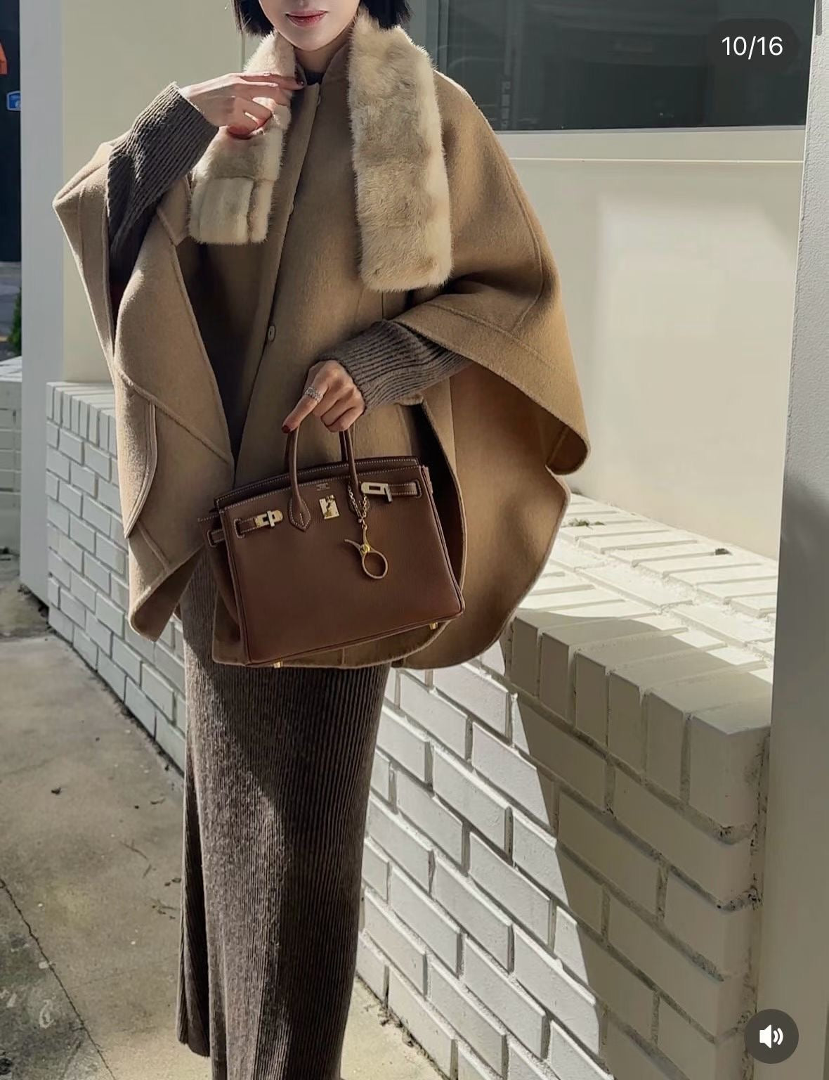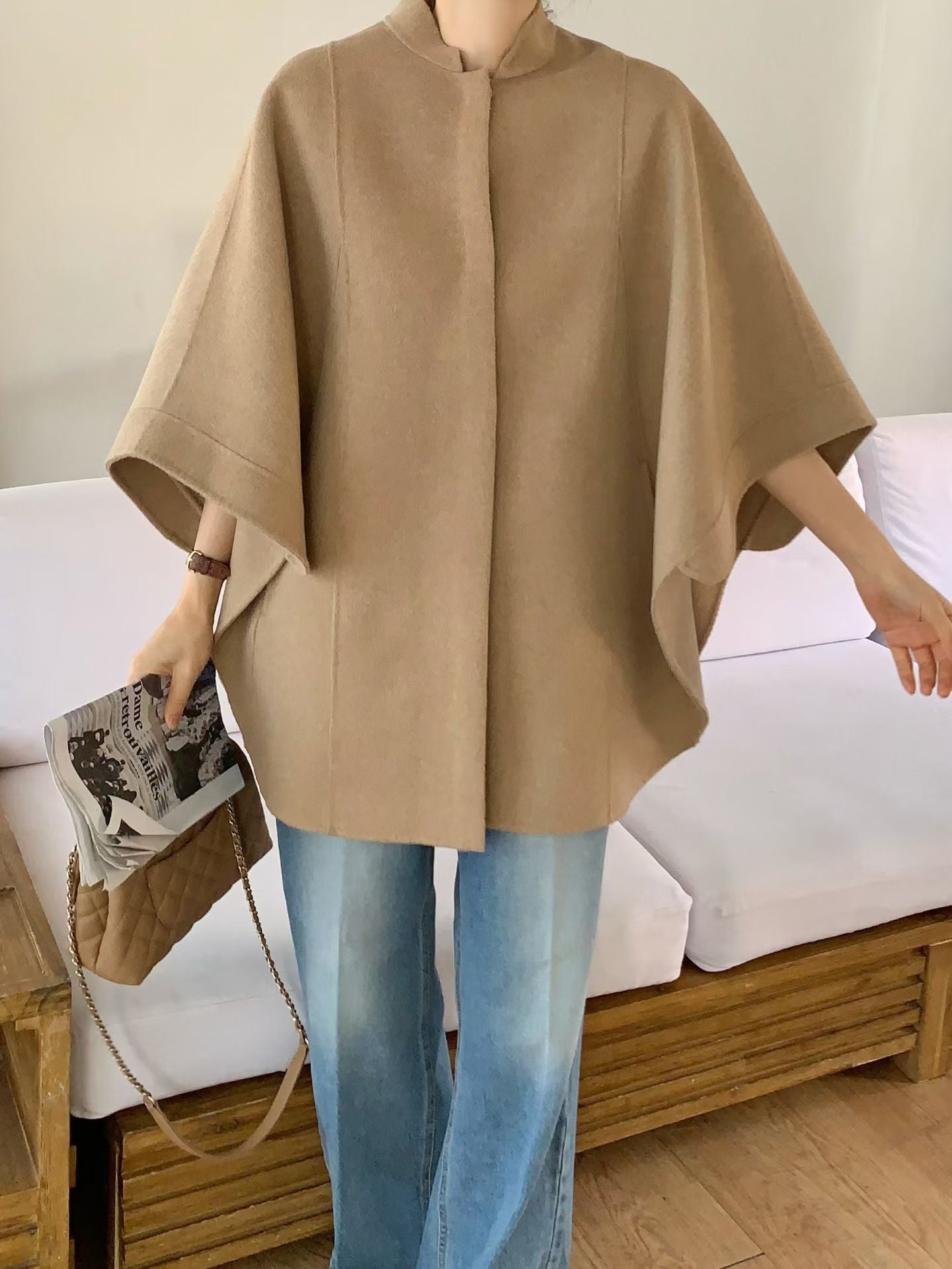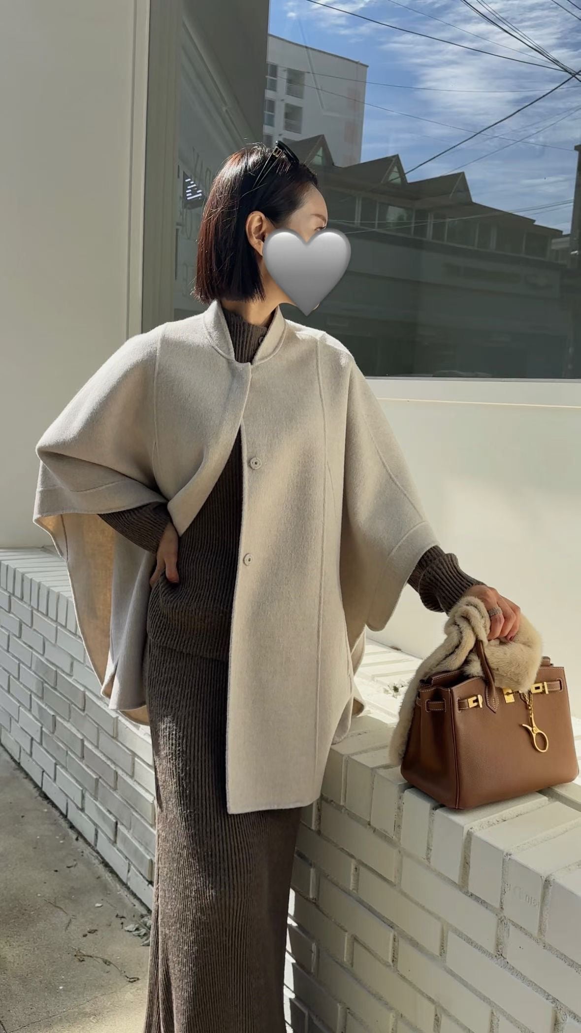 ⫸ 透過高級材質與極簡設計,這款斗篷外罩兼具實穿與氣質,可輕鬆應對各種場合,是秋冬衣櫥中的投資精品。