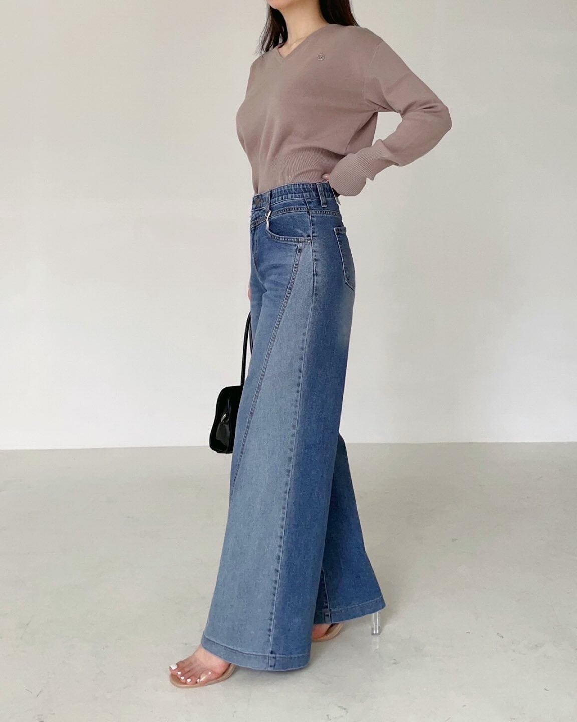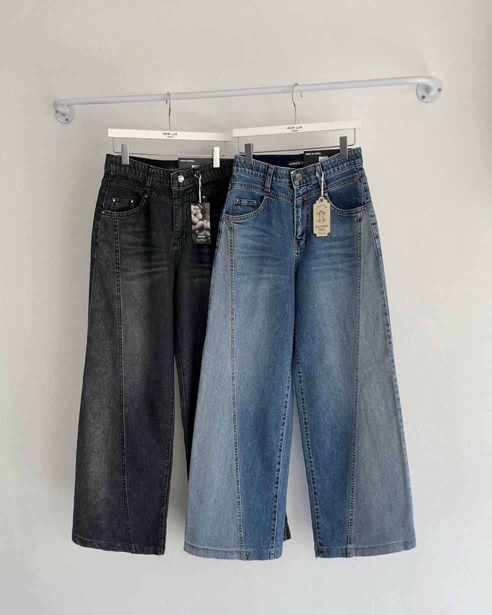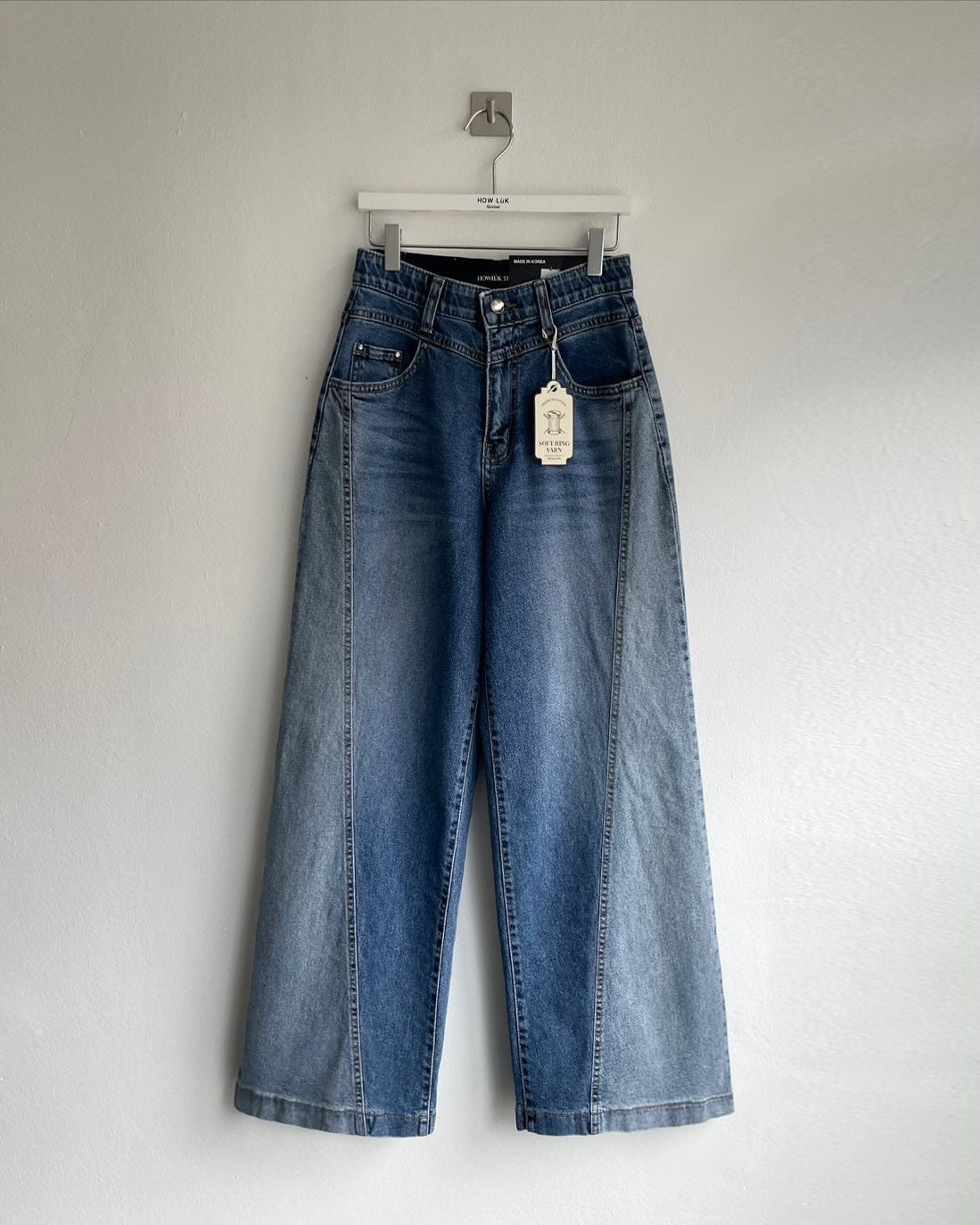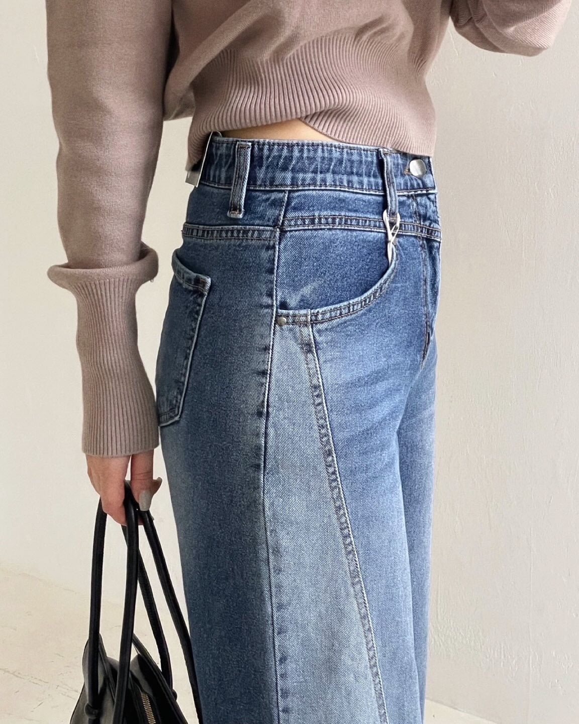 ♡拼接刷色牛仔寬褲♡ (C251154)