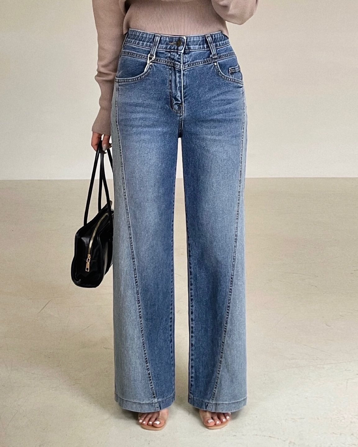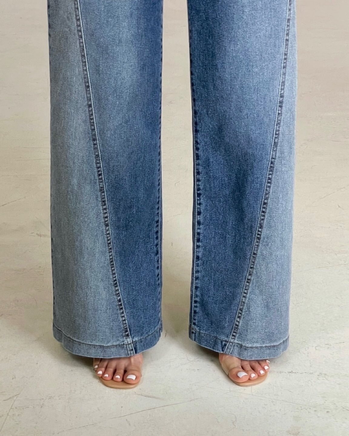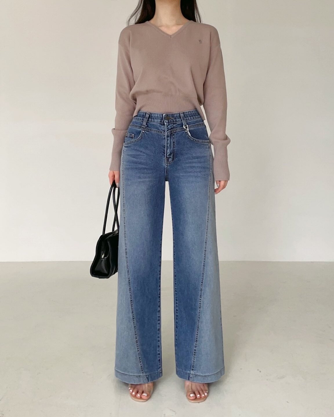 ♡拼接刷色牛仔寬褲♡ (C251154)