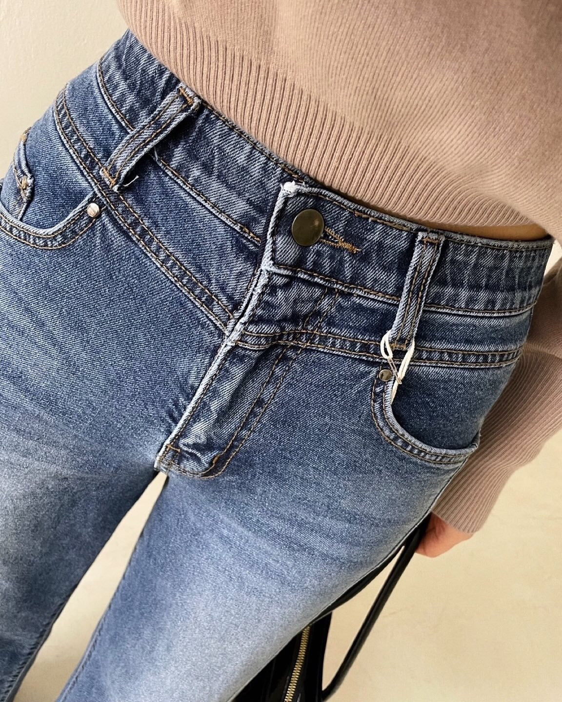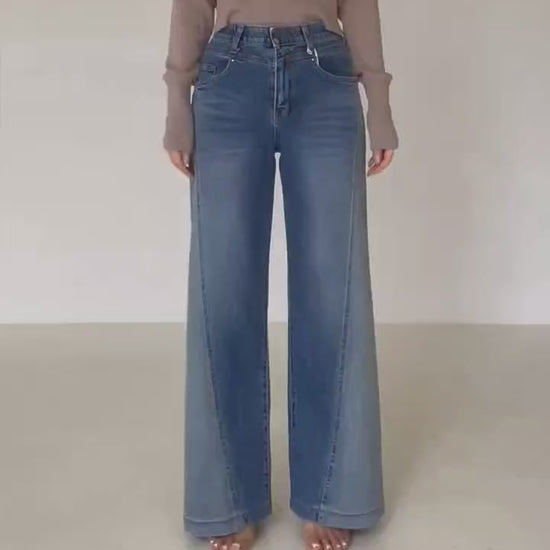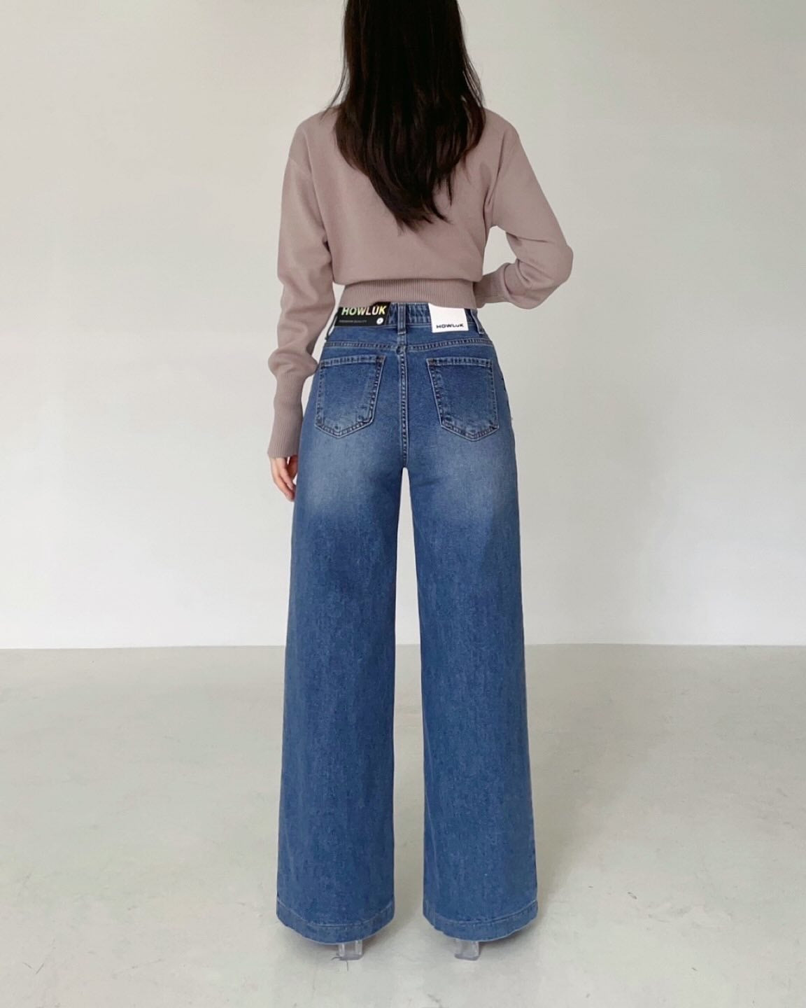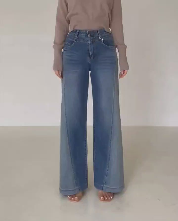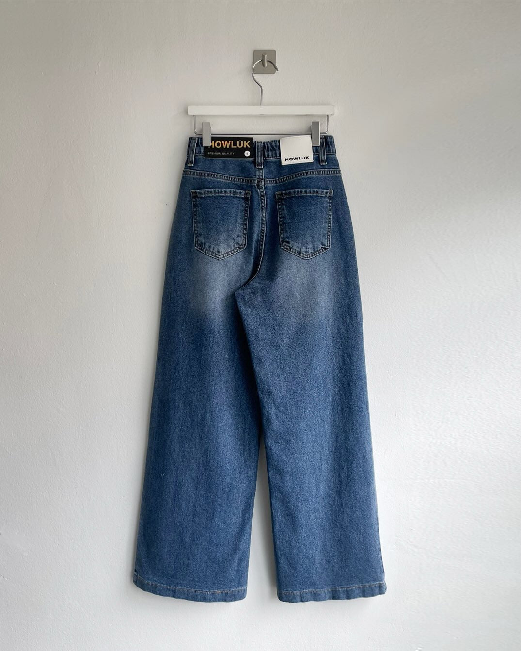 ♡拼接刷色牛仔寬褲♡ (C251154)