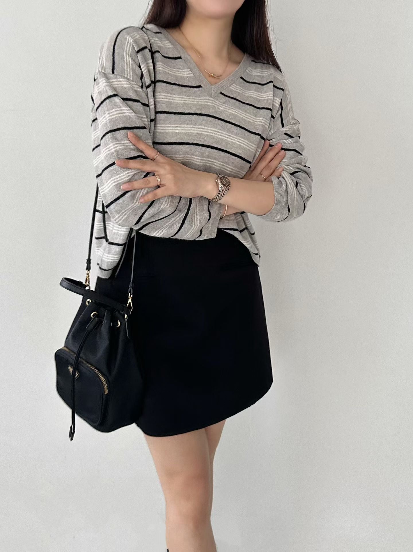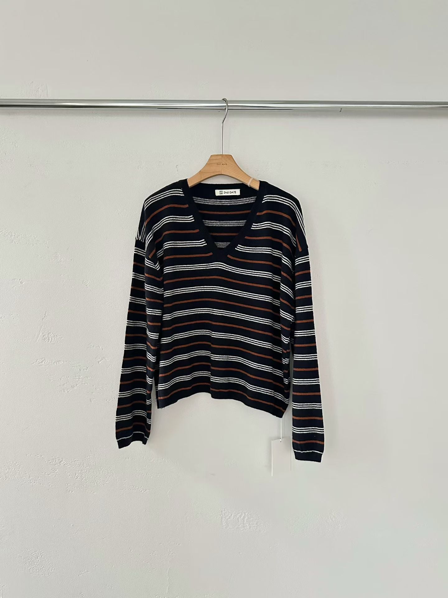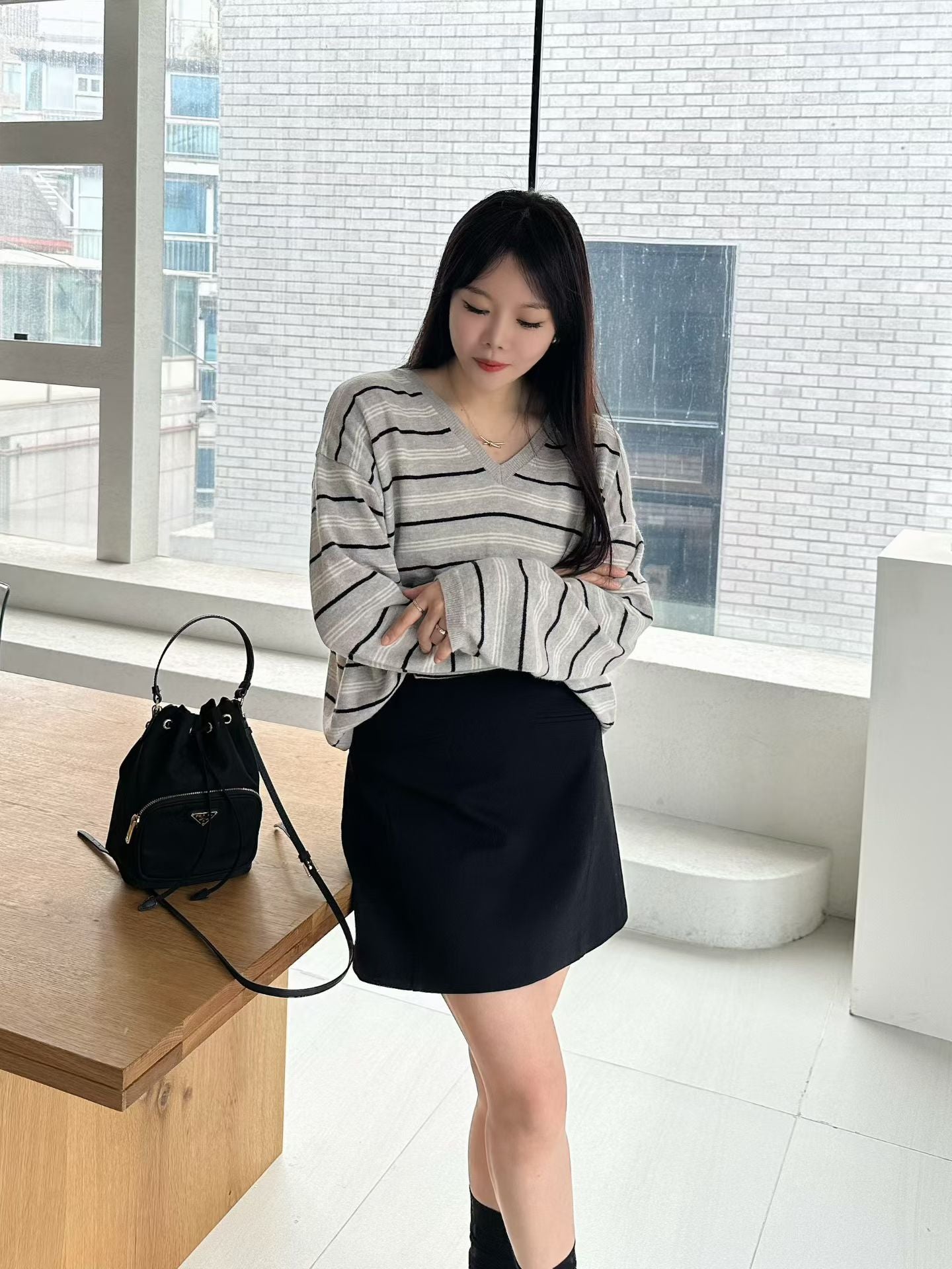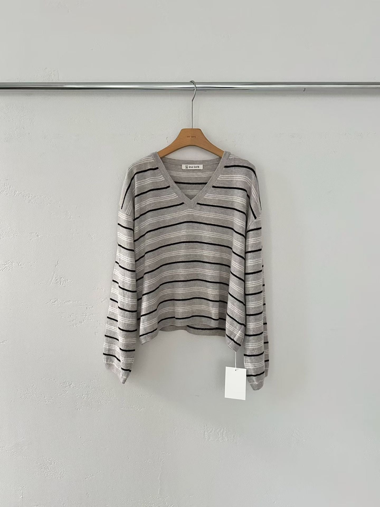 ♡文青感鬆身條紋V領上衣♡ (C251025)