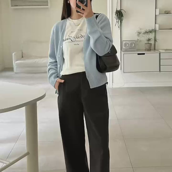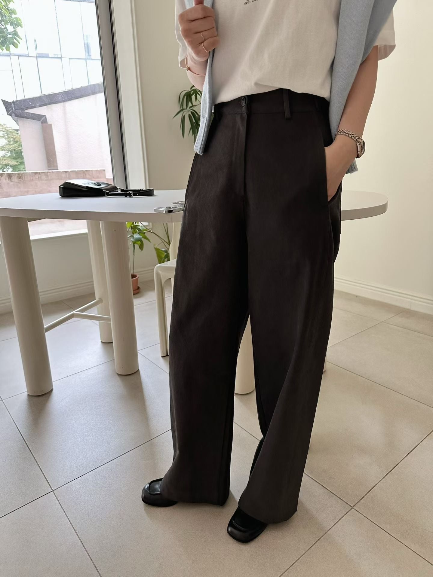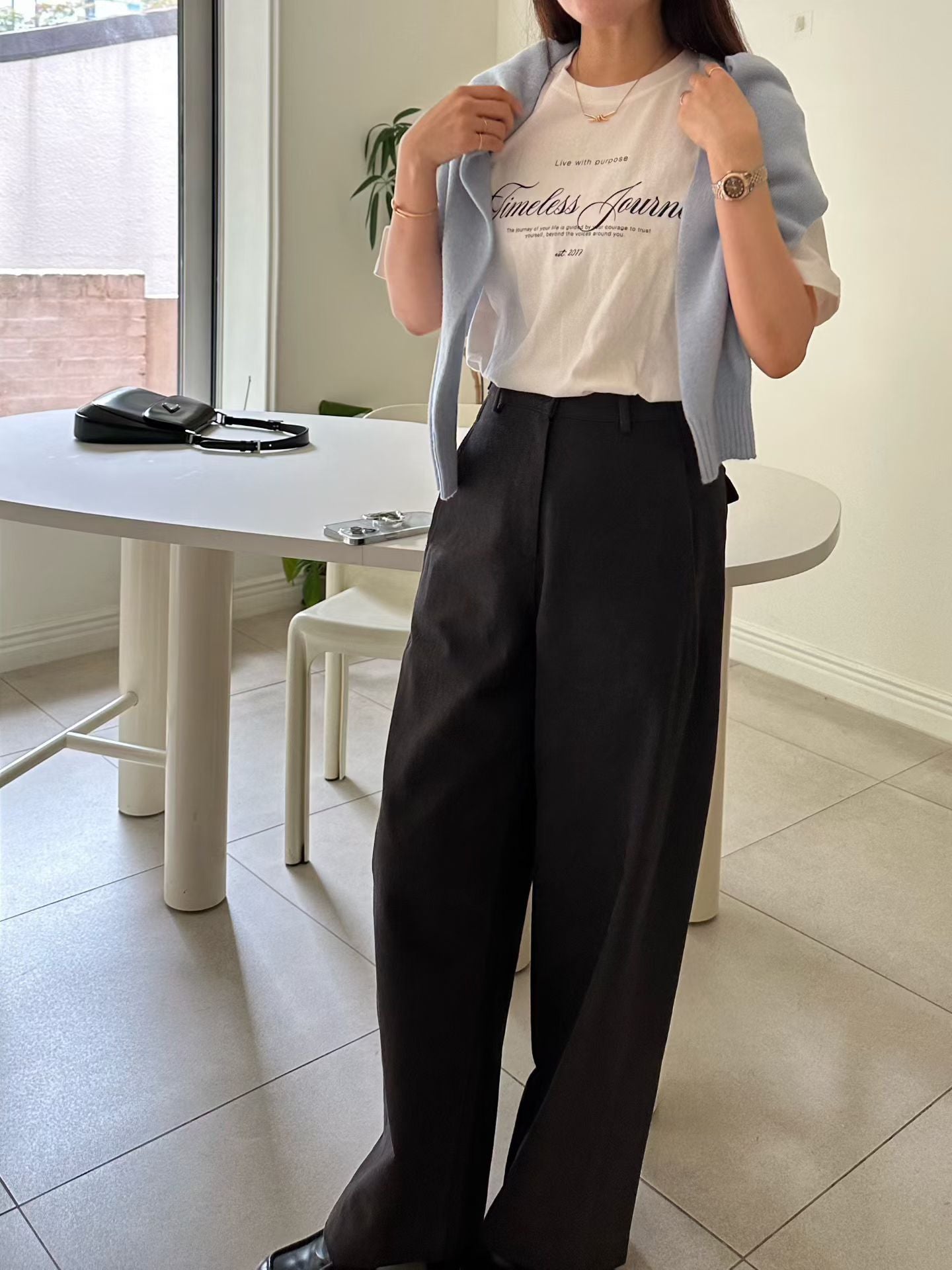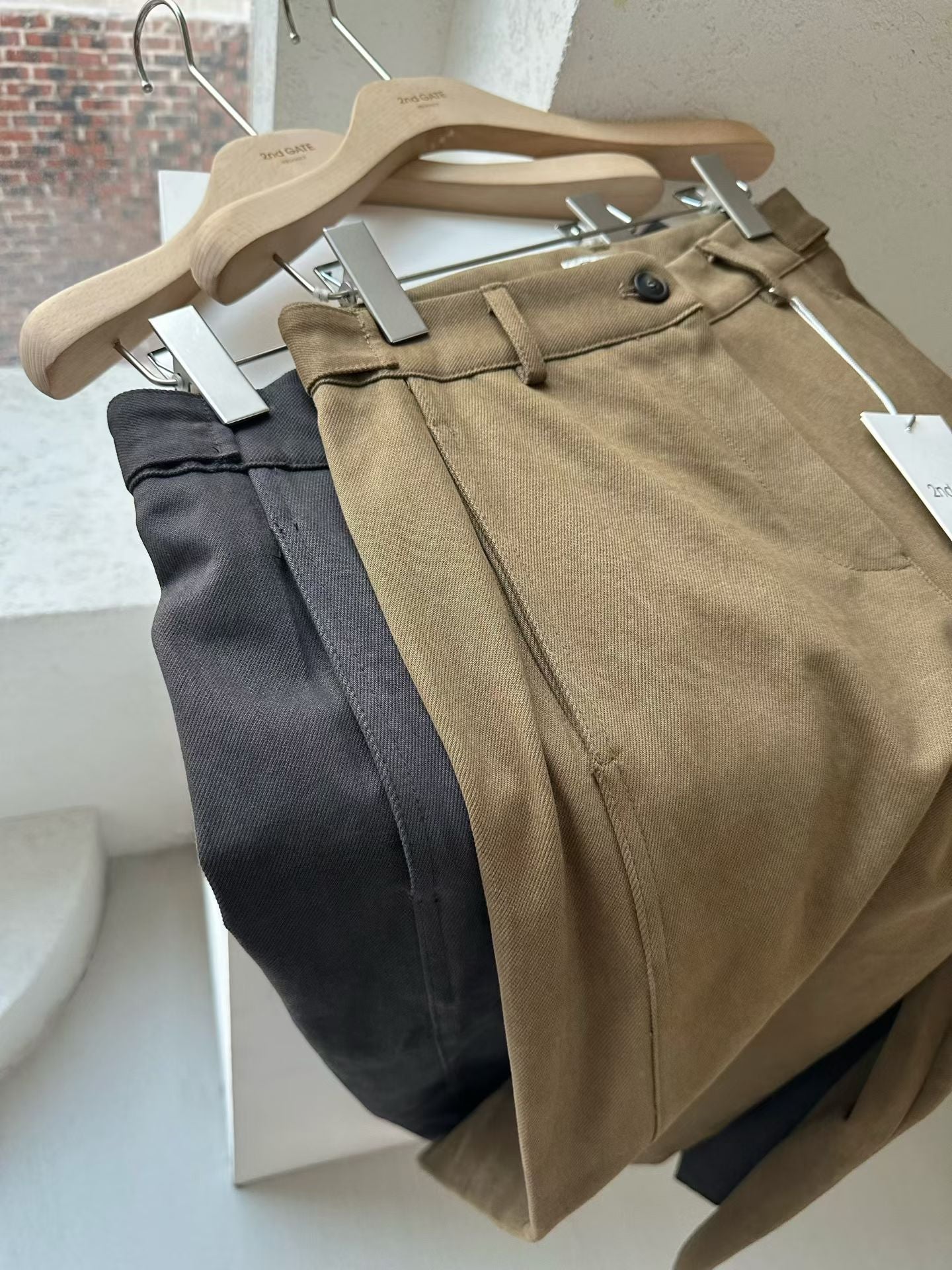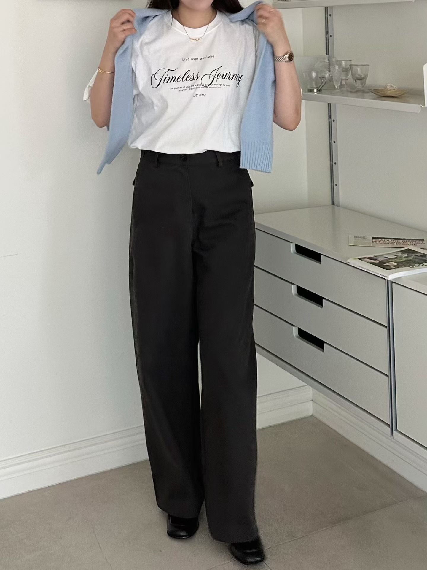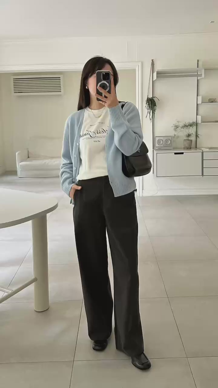 ⫸ 中高腰+長腿比例:腰線上提,直接拉長下半身;103cm 褲長做出「落地線條」,顯高顯瘦。