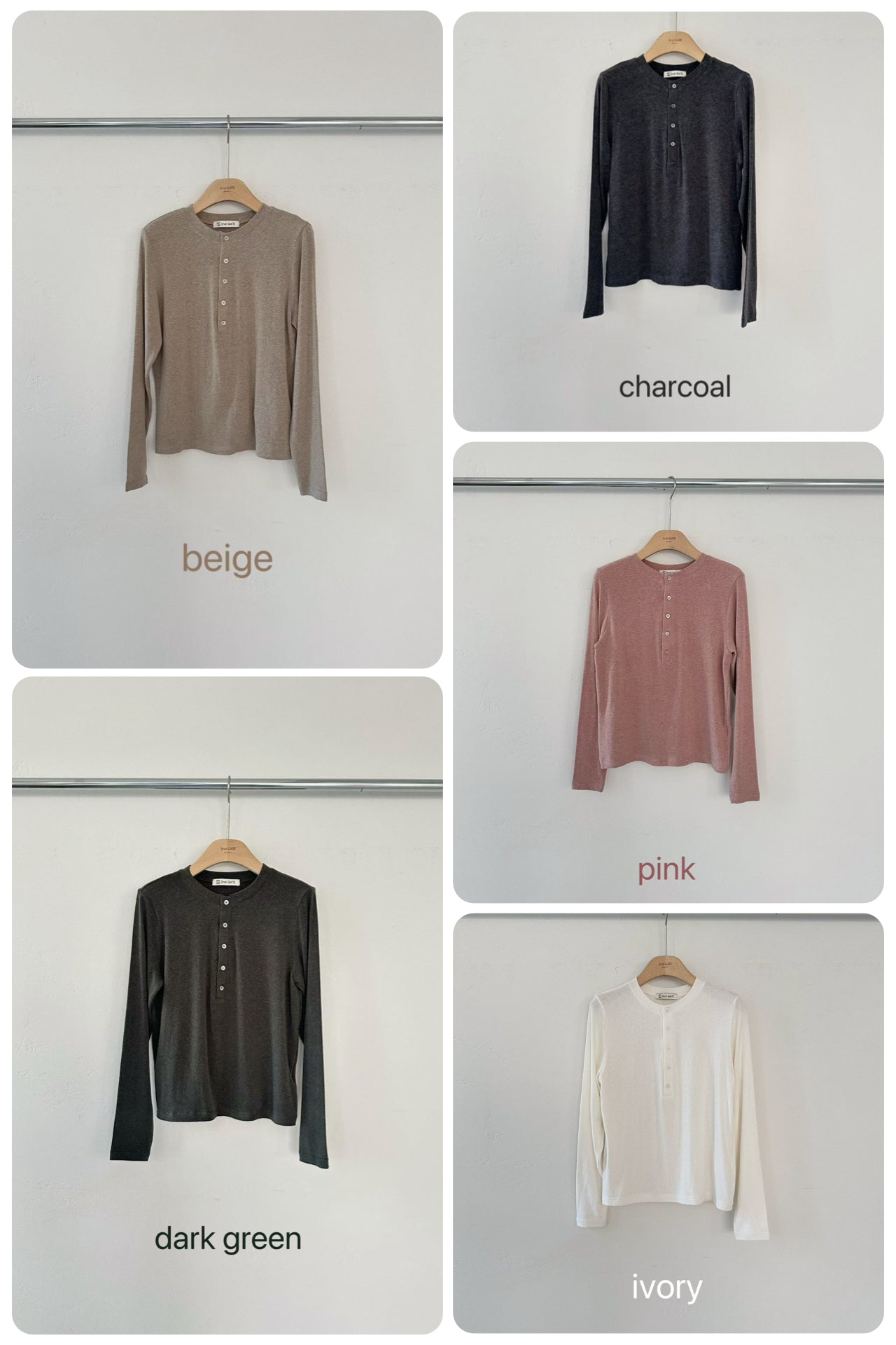 ♡柔彈親膚亨利領長袖上衣♡ (C251113)