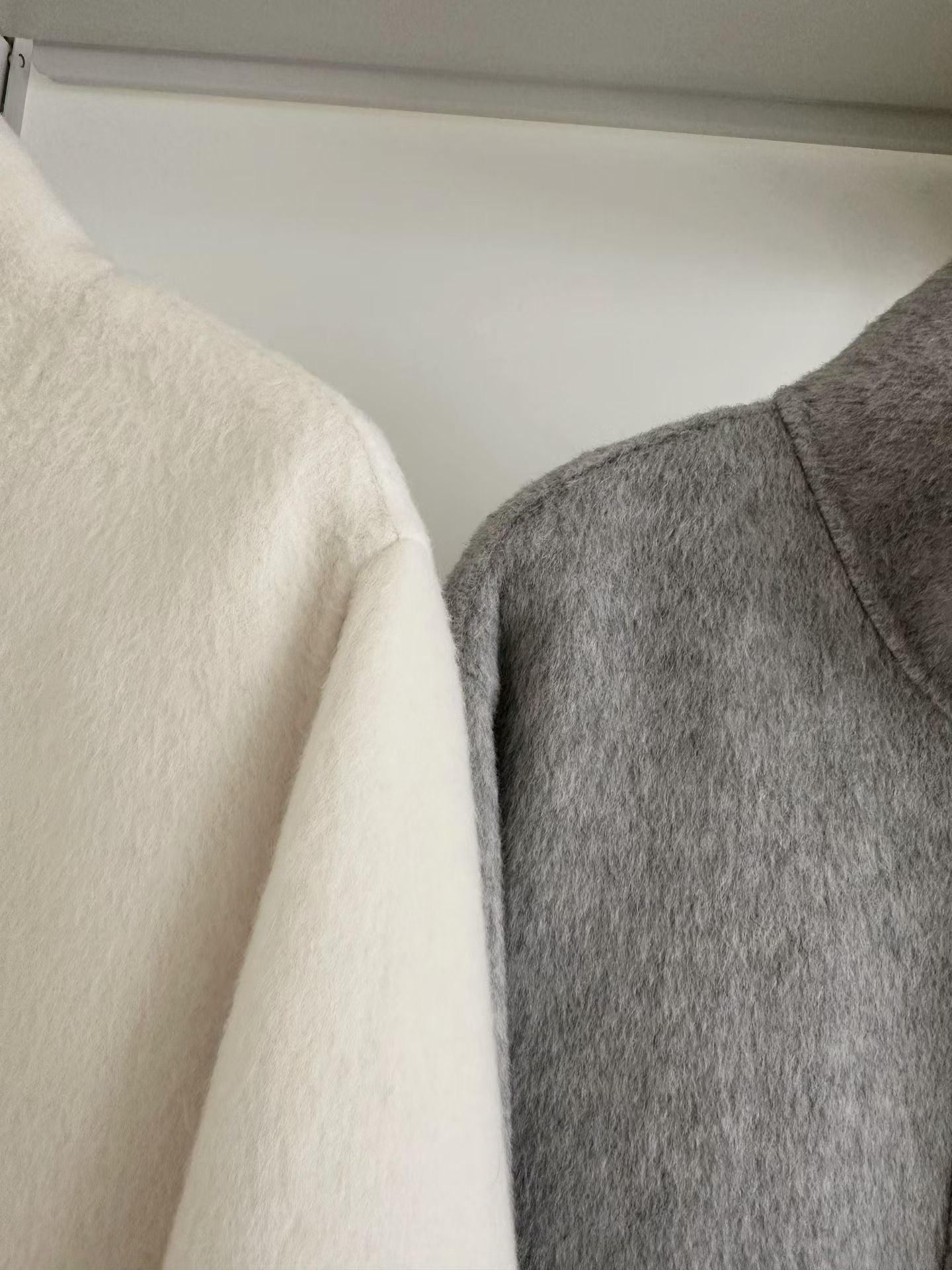 ⫸ 羊毛提供保暖與支撐;蘇麗羊駝纖維細長、毛感柔糯、有輕霧光澤,上身顯高級。