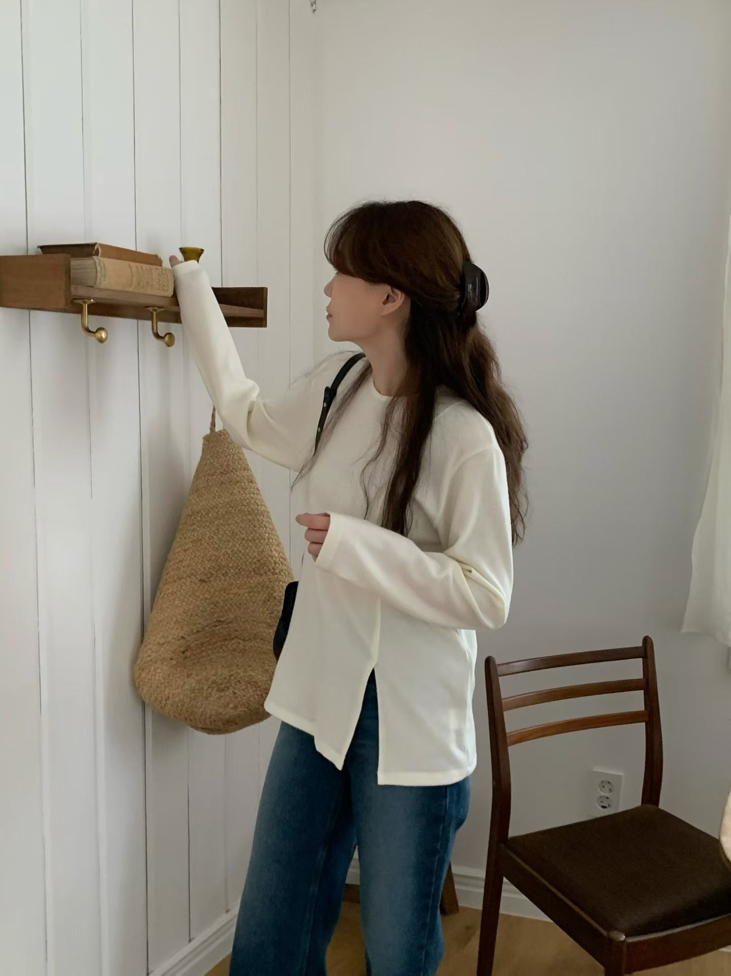 - 這款是冬春最實穿的「高質感必備長袖 Tee」,柔彈舒適、斜裁開衩讓普通長袖立刻變得有設計感!簡單搭一件瑜伽褲就有活力,休閒Look~