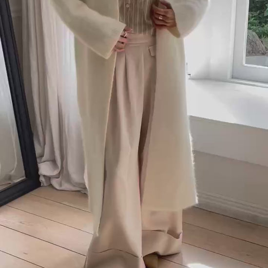 ⫸ 這款長版罩衫是一件能「完美結合溫度與風度」的必備單品,無論在家或外出都能輕鬆穿出氣質層次感,是秋冬「低調奢華系」代表款。