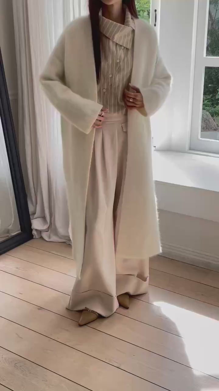⫸ 柔軟細膩,手感輕盈但保暖度極佳。整體觸感如羽毛般輕盈,穿上身後有自然「毛絨霧光感」,非常適合秋冬季節。