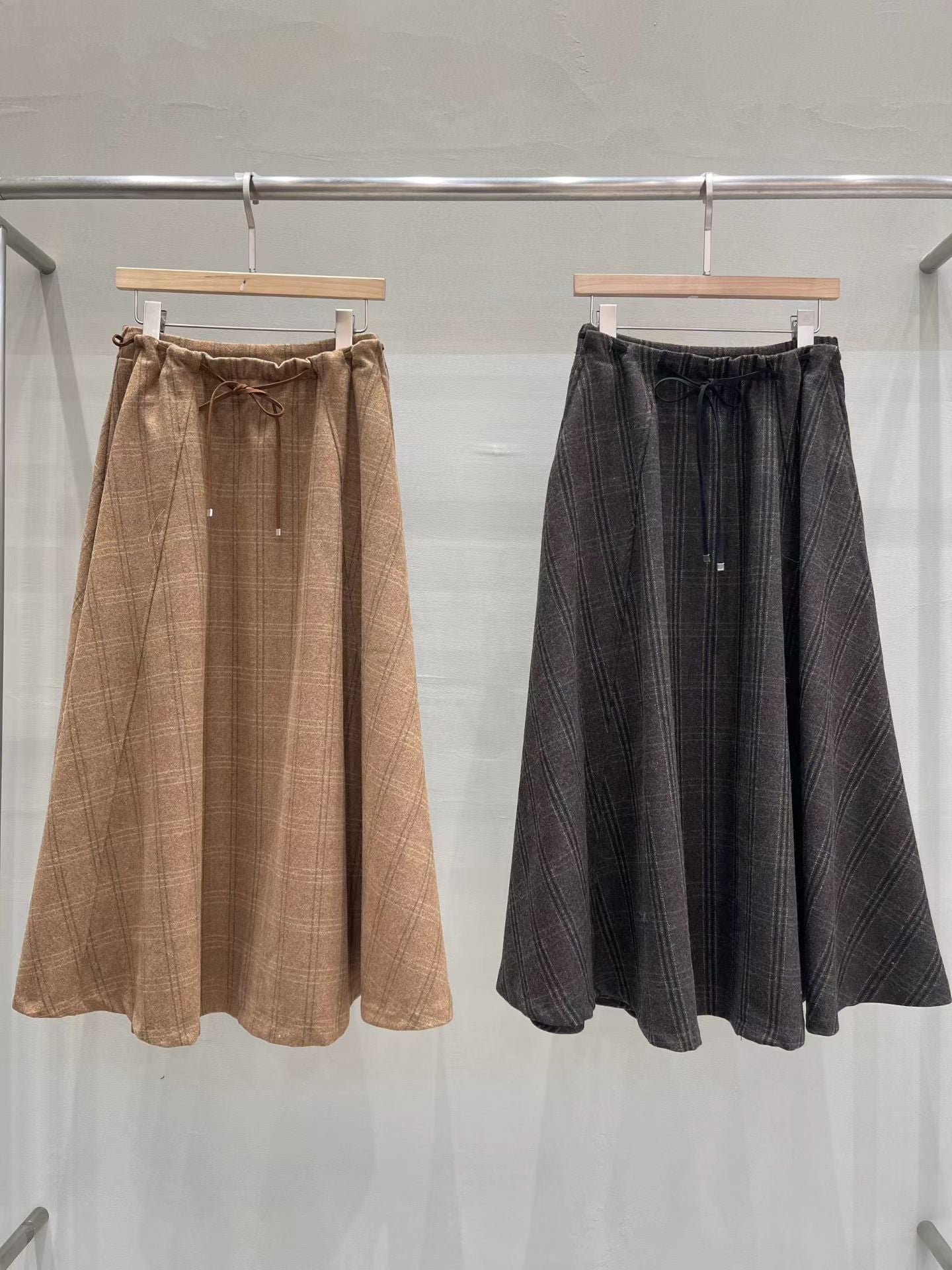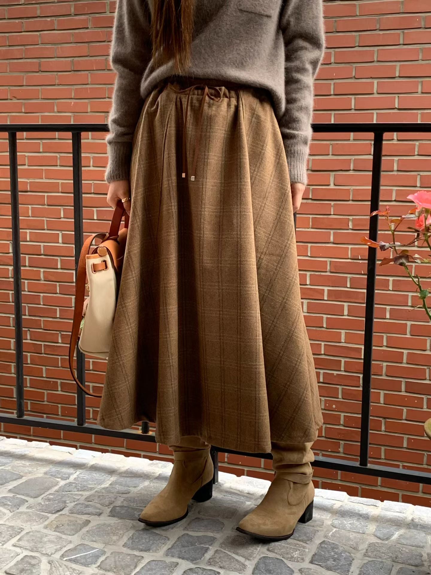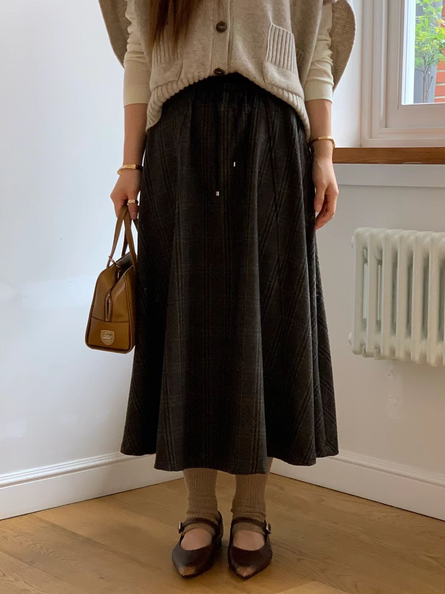 ♡氣質Oni家♡英倫格紋抽繩羊毛裙 (C251137)
