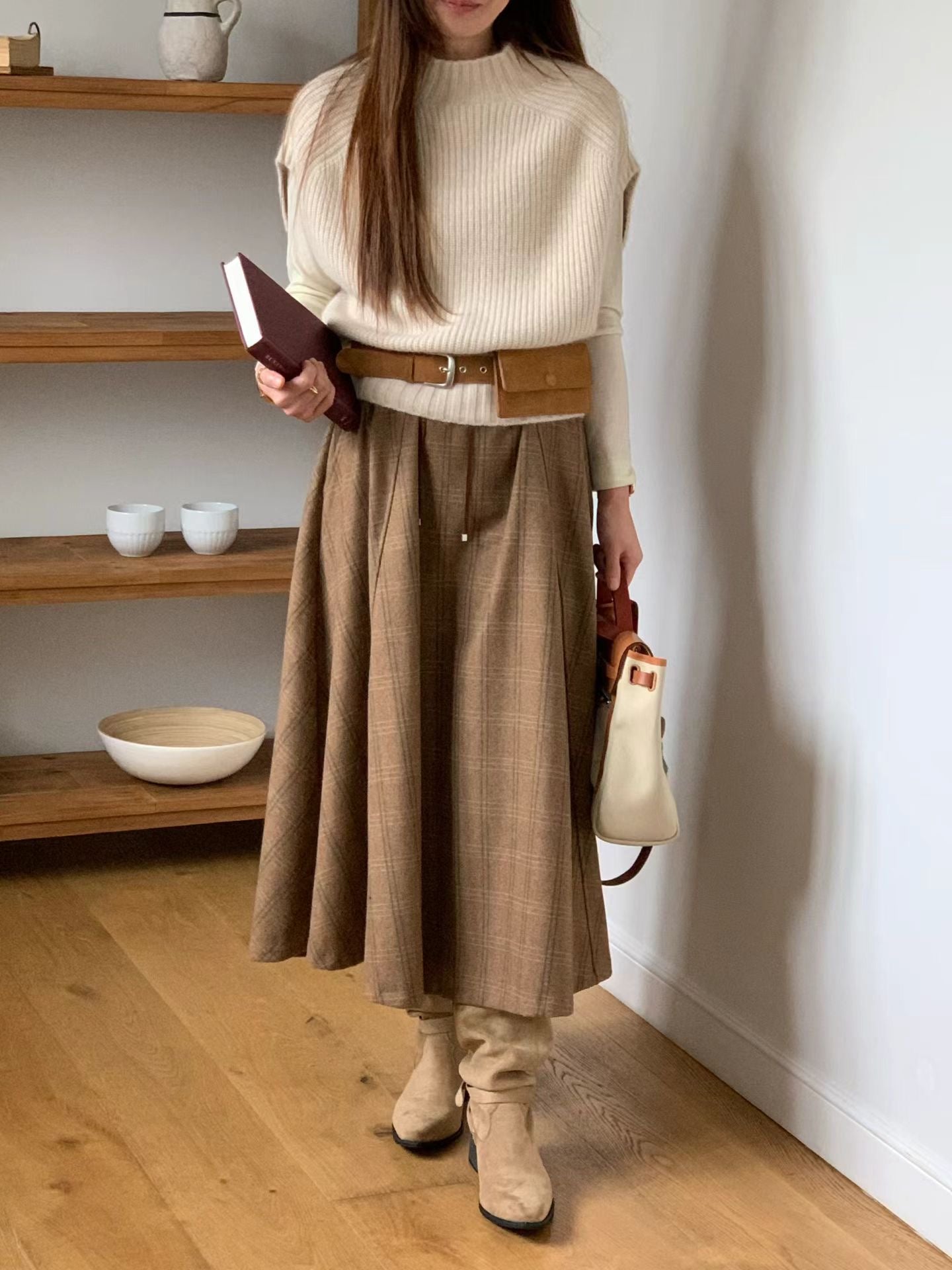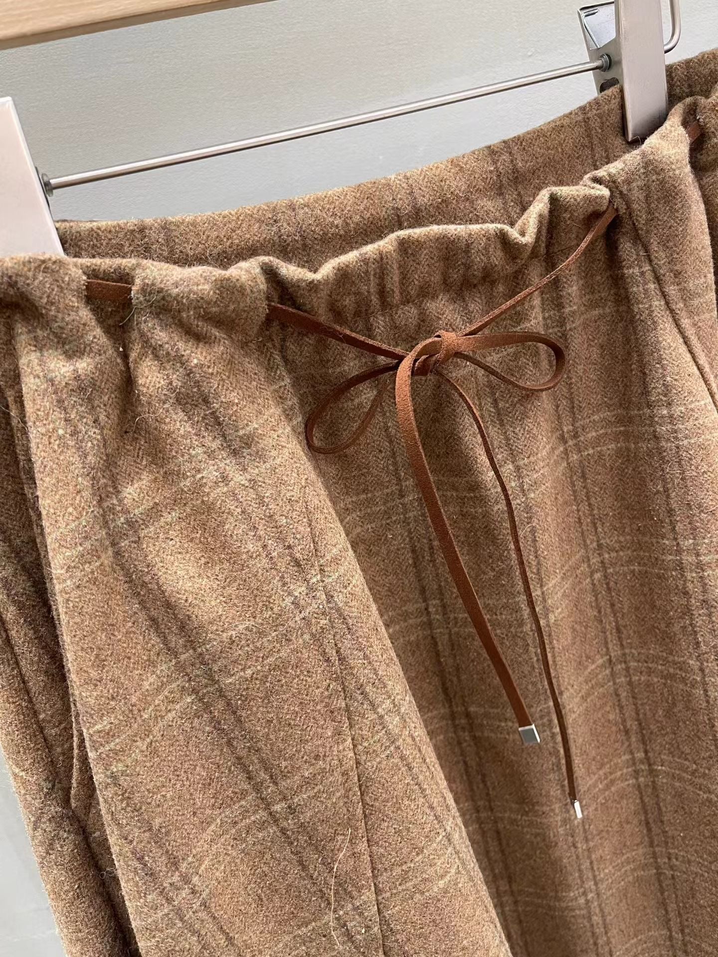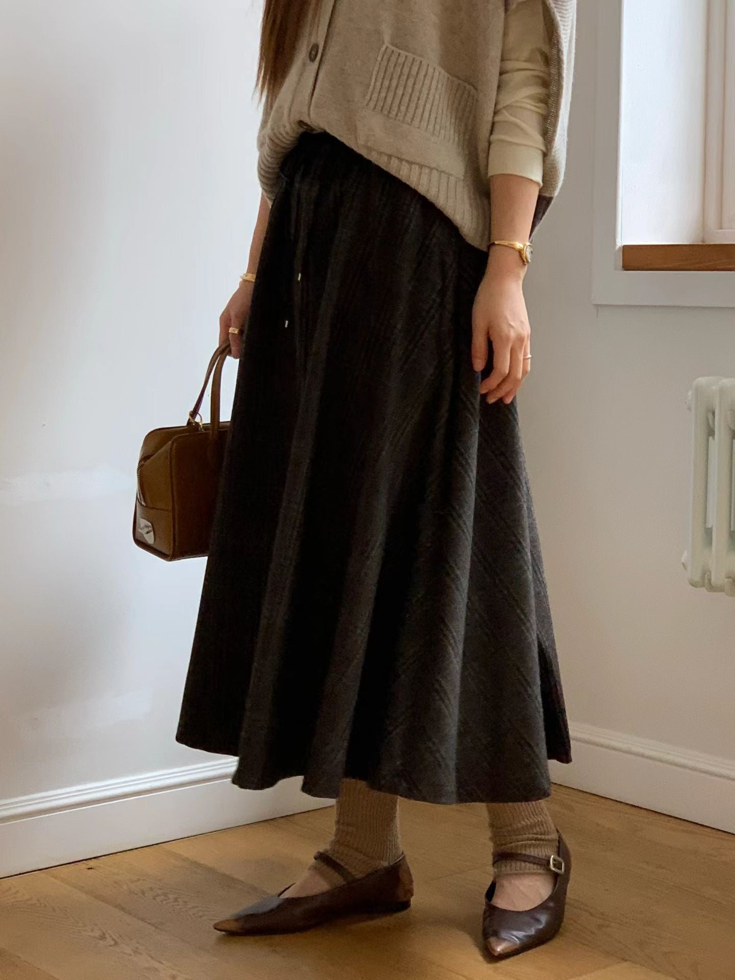 ♡氣質Oni家♡英倫格紋抽繩羊毛裙 (C251137)