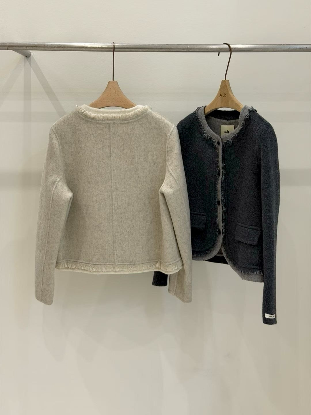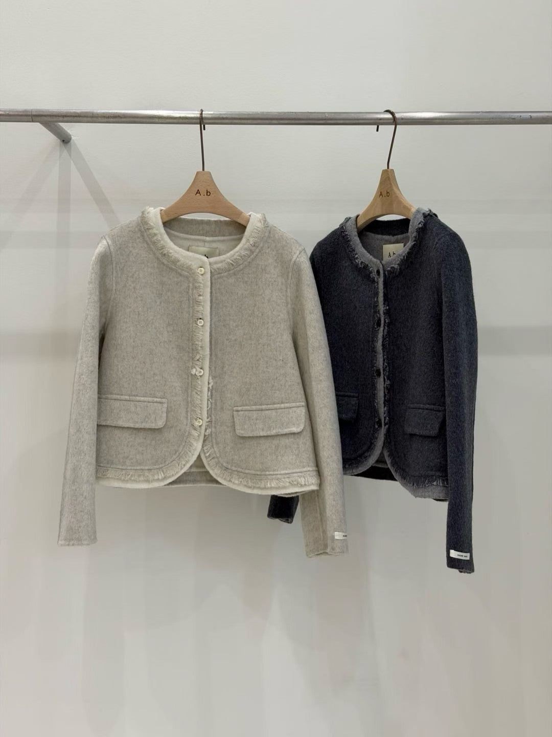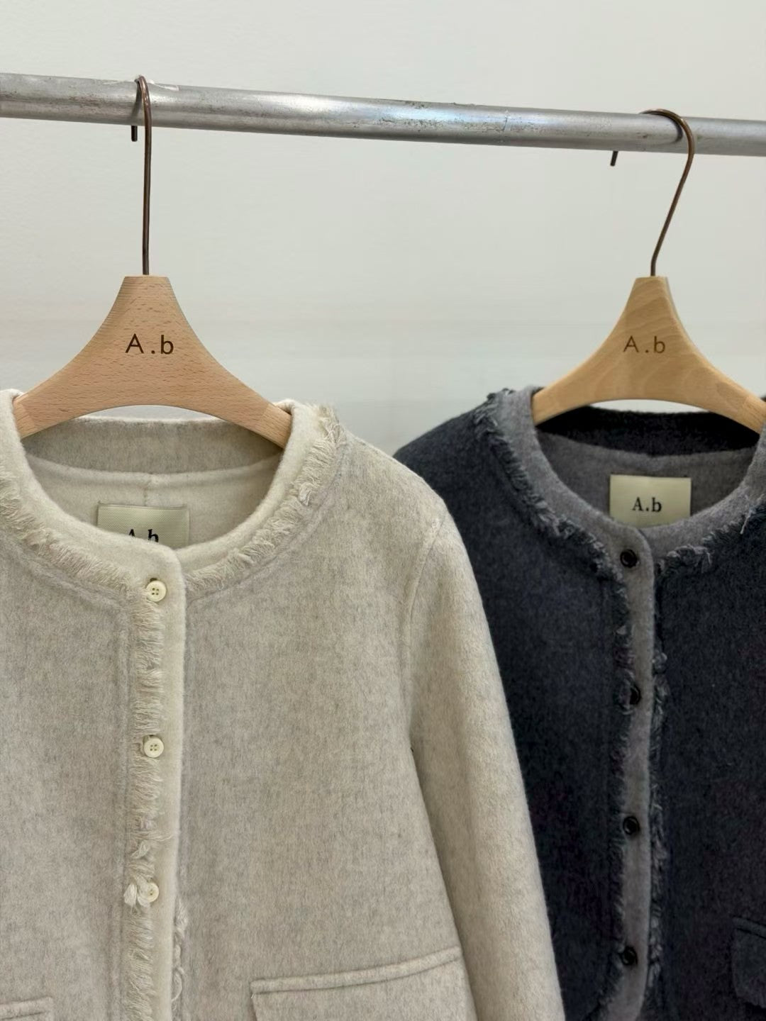 ⫸ 全框流蘇收邊:領口、門襟、下擺與口袋皆做細緻毛邊,低調卻高級,一眼就有小香氛圍。