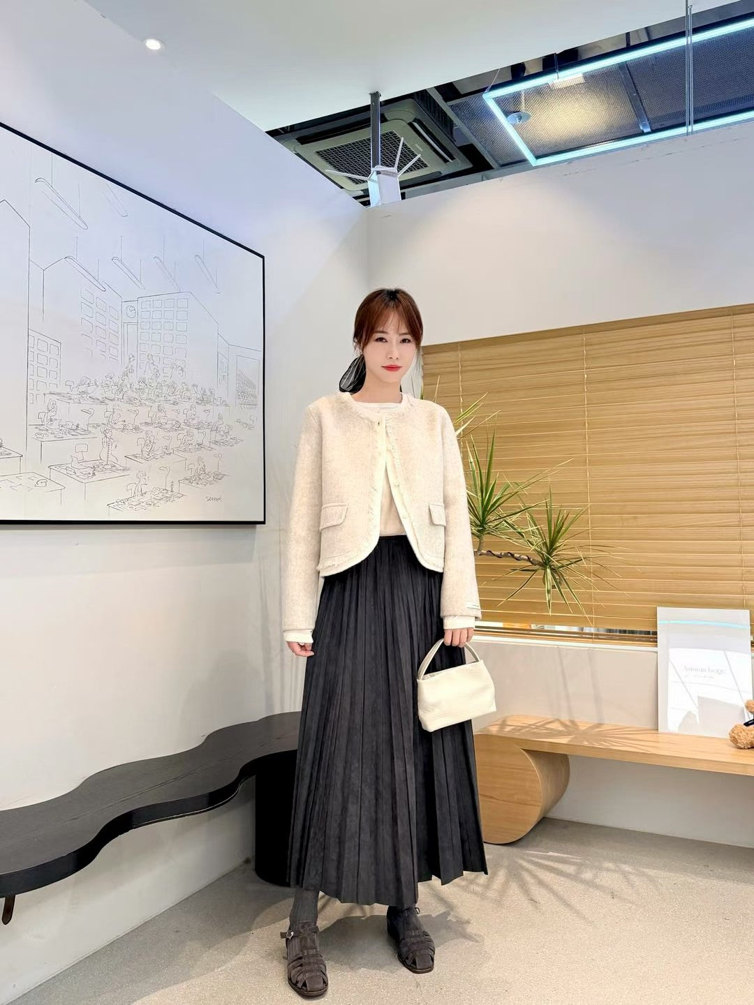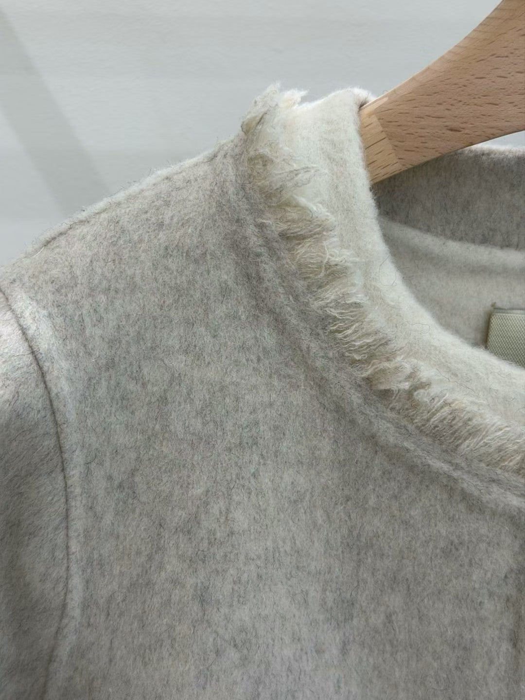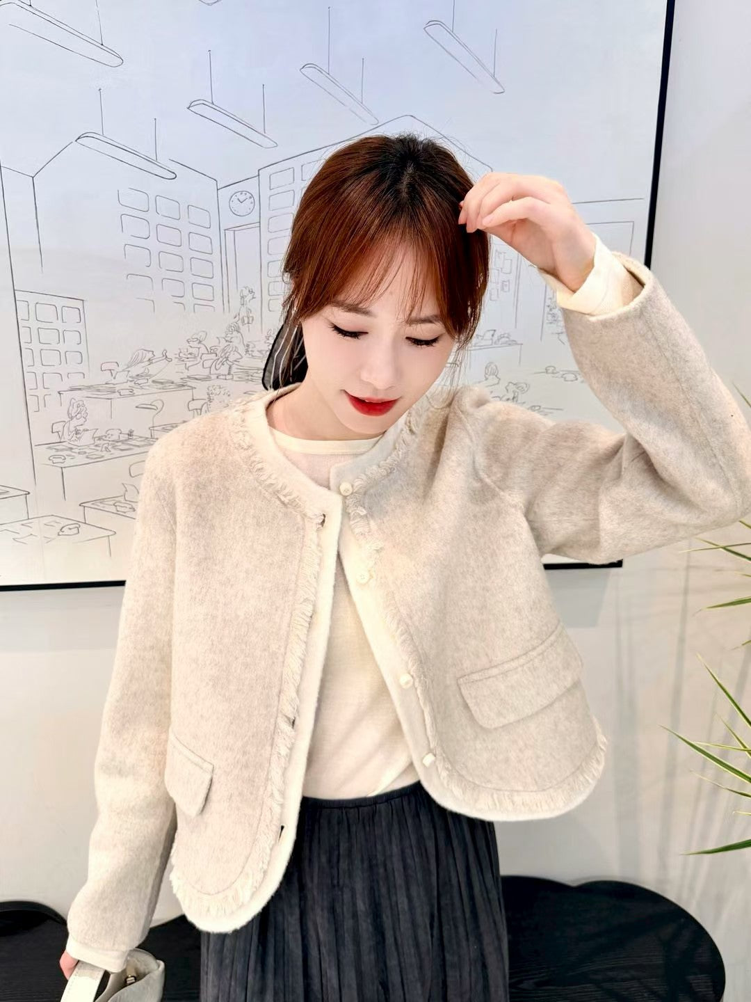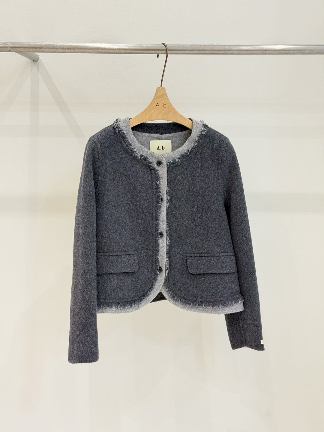 ⫸ 全框流蘇收邊:領口、門襟、下擺與口袋皆做細緻毛邊,低調卻高級,一眼就有小香氛圍。