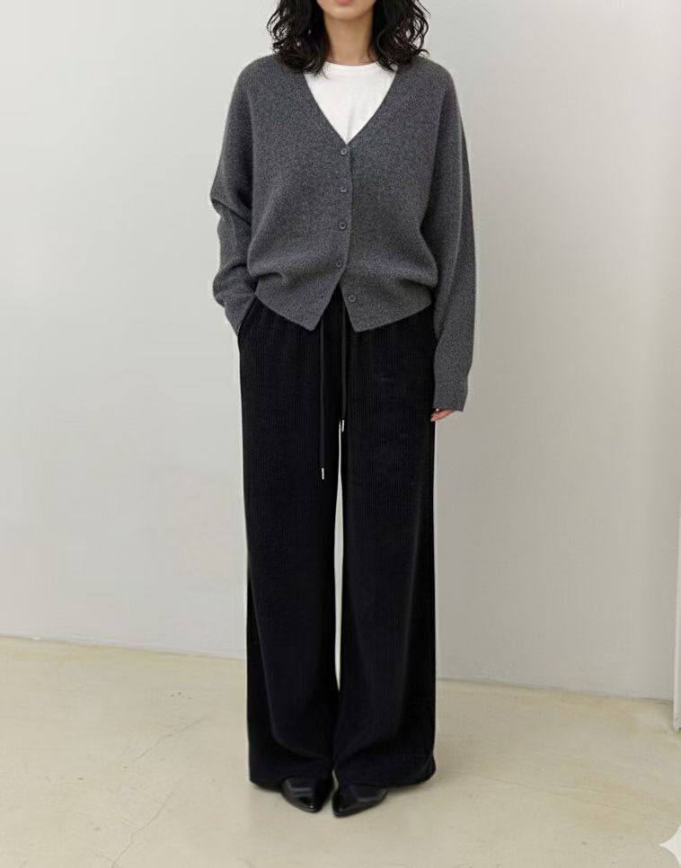 - 這款褲子採用泰迪般軟糯的細條燈芯絨面料,柔軟度與保暖度兼具,穿起來像包裹在毛毯裡一樣舒服。