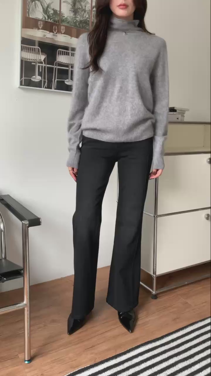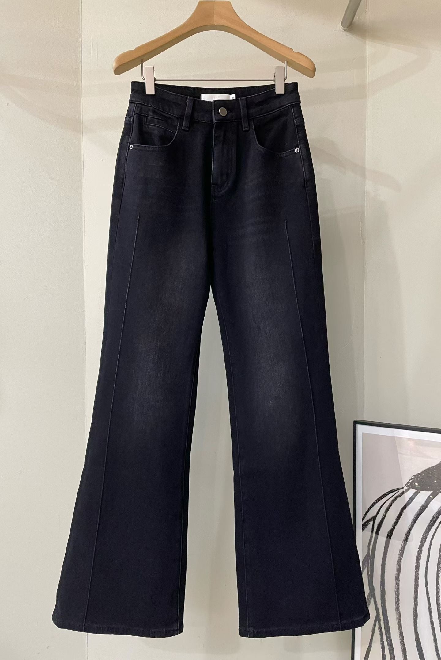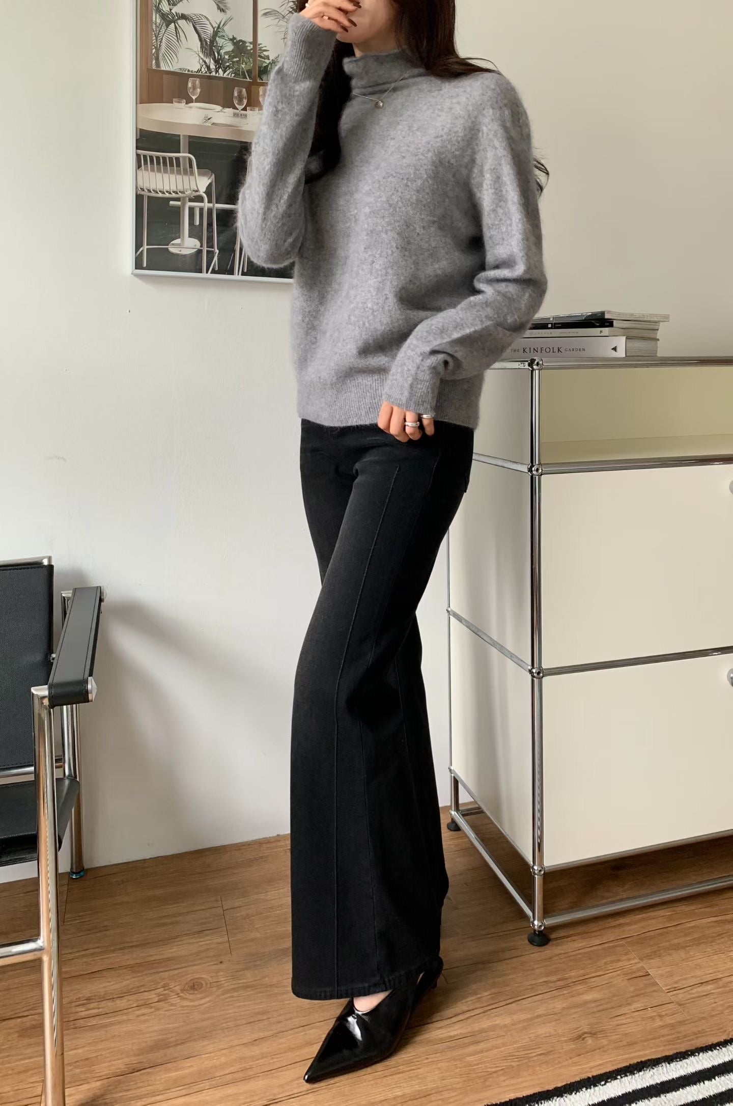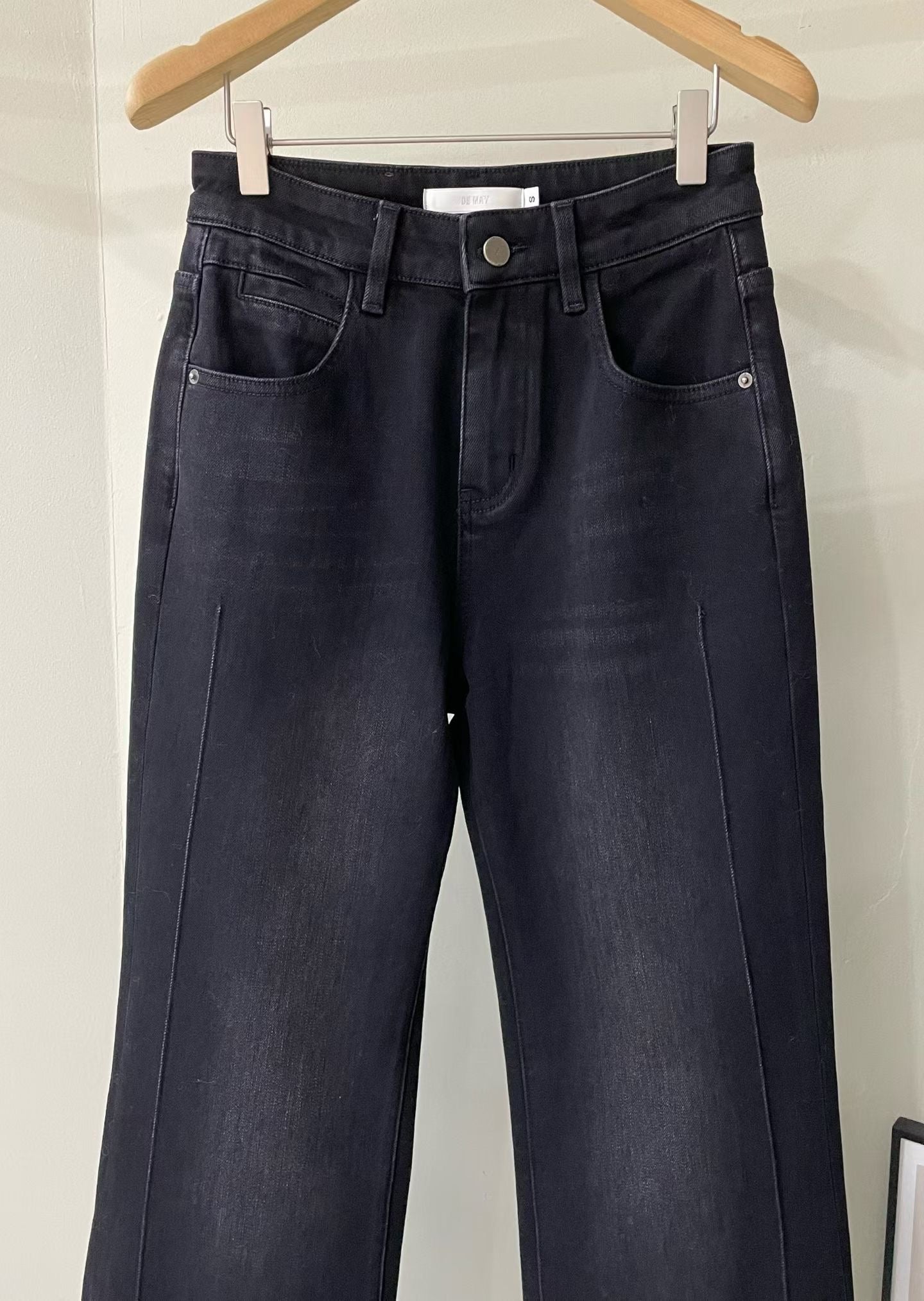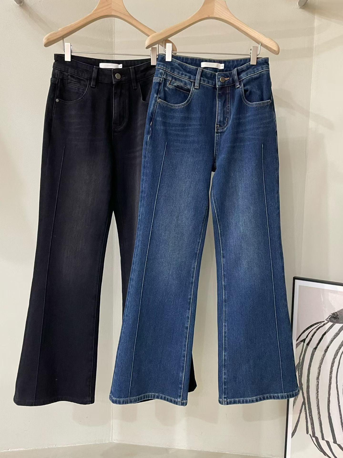 ⫸ 中高腰+中線+微喇的「黃金三要素」一次到位:顯瘦、拉長、提臀,深色百搭、一年四季出勤率超高。