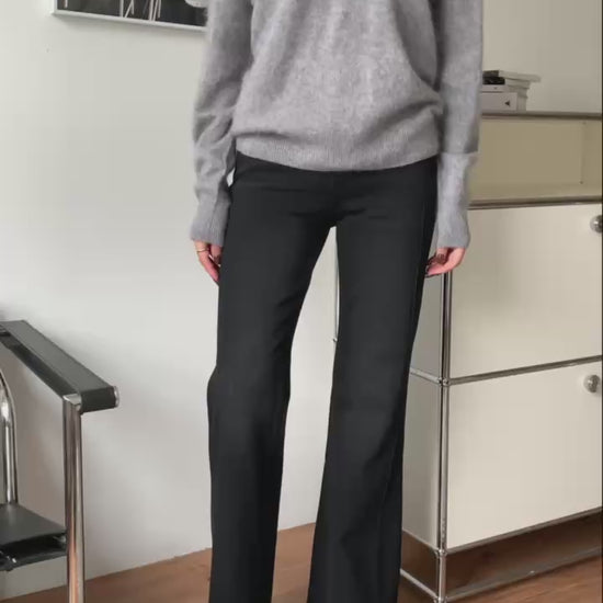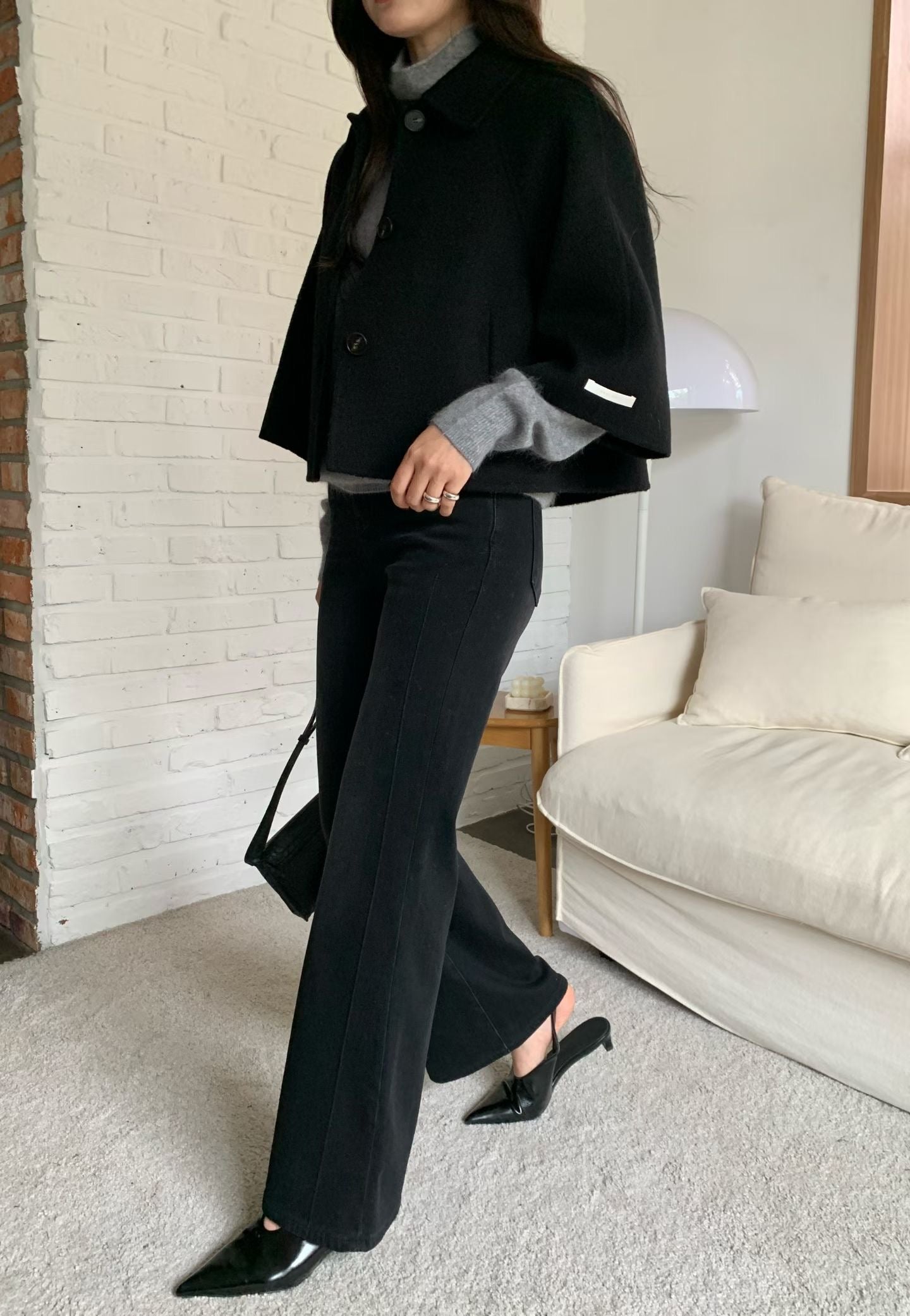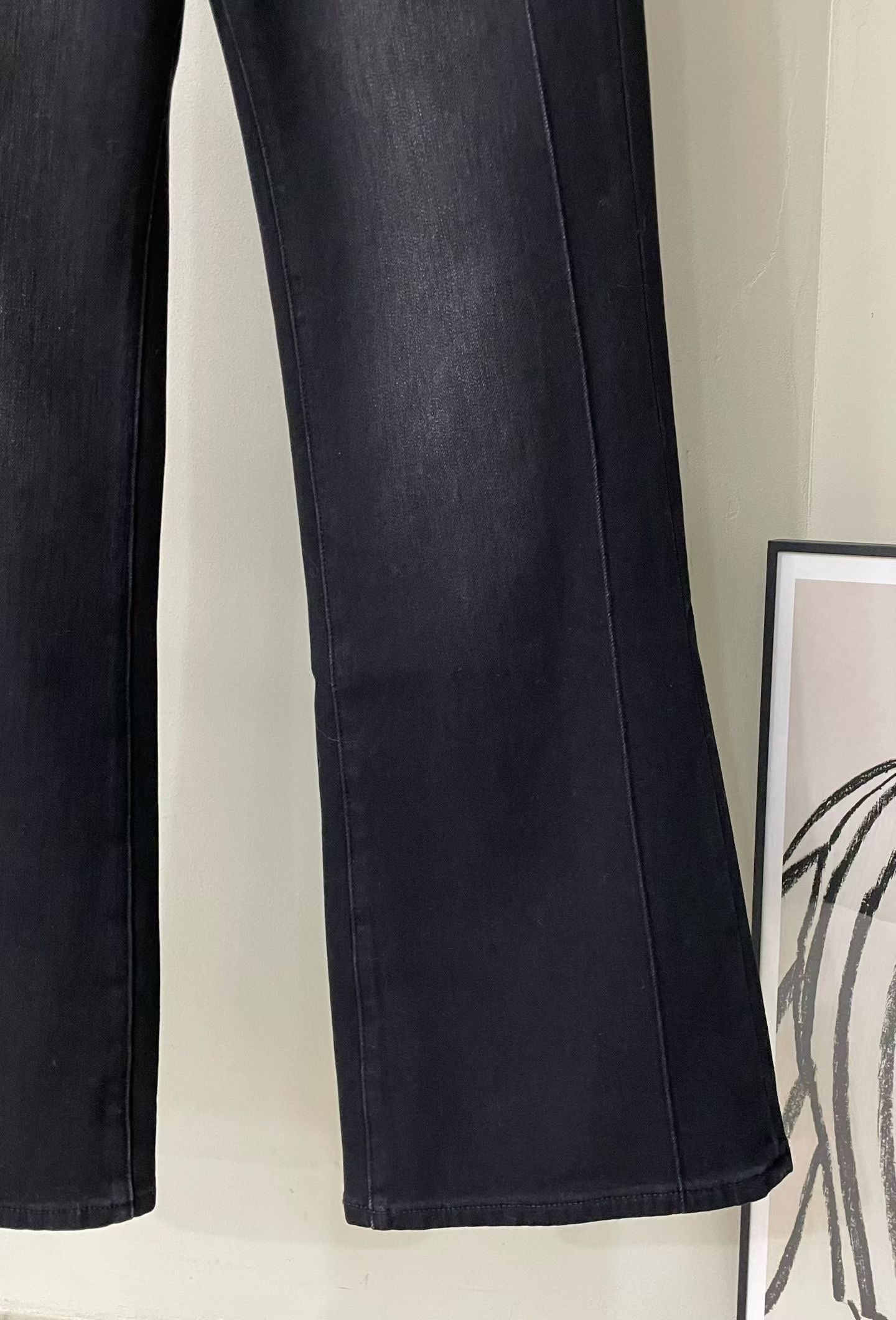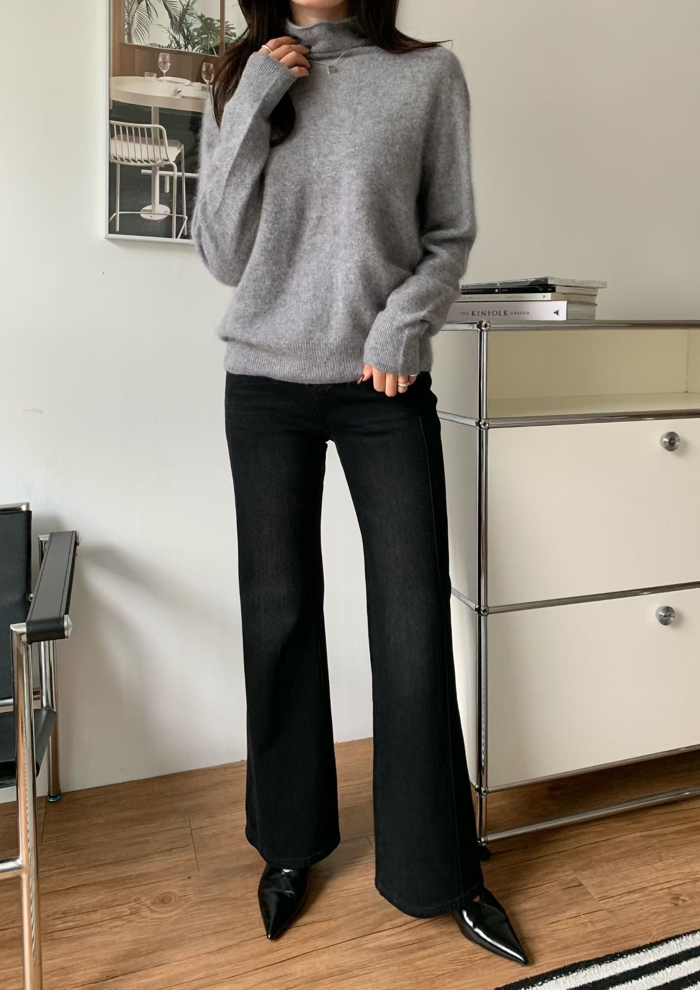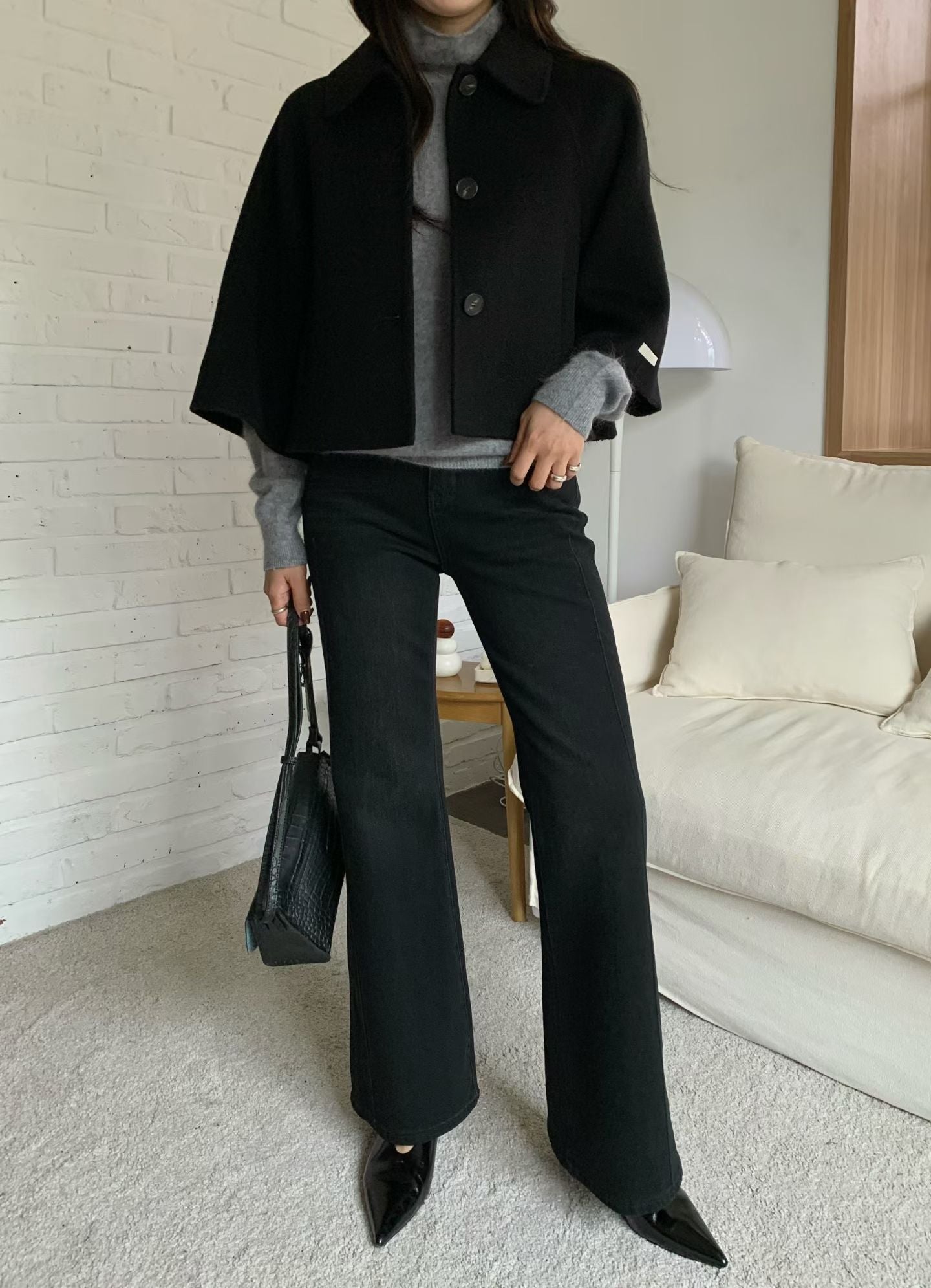 ⫸ 中高腰+中線+微喇的「黃金三要素」一次到位:顯瘦、拉長、提臀,深色百搭、一年四季出勤率超高。