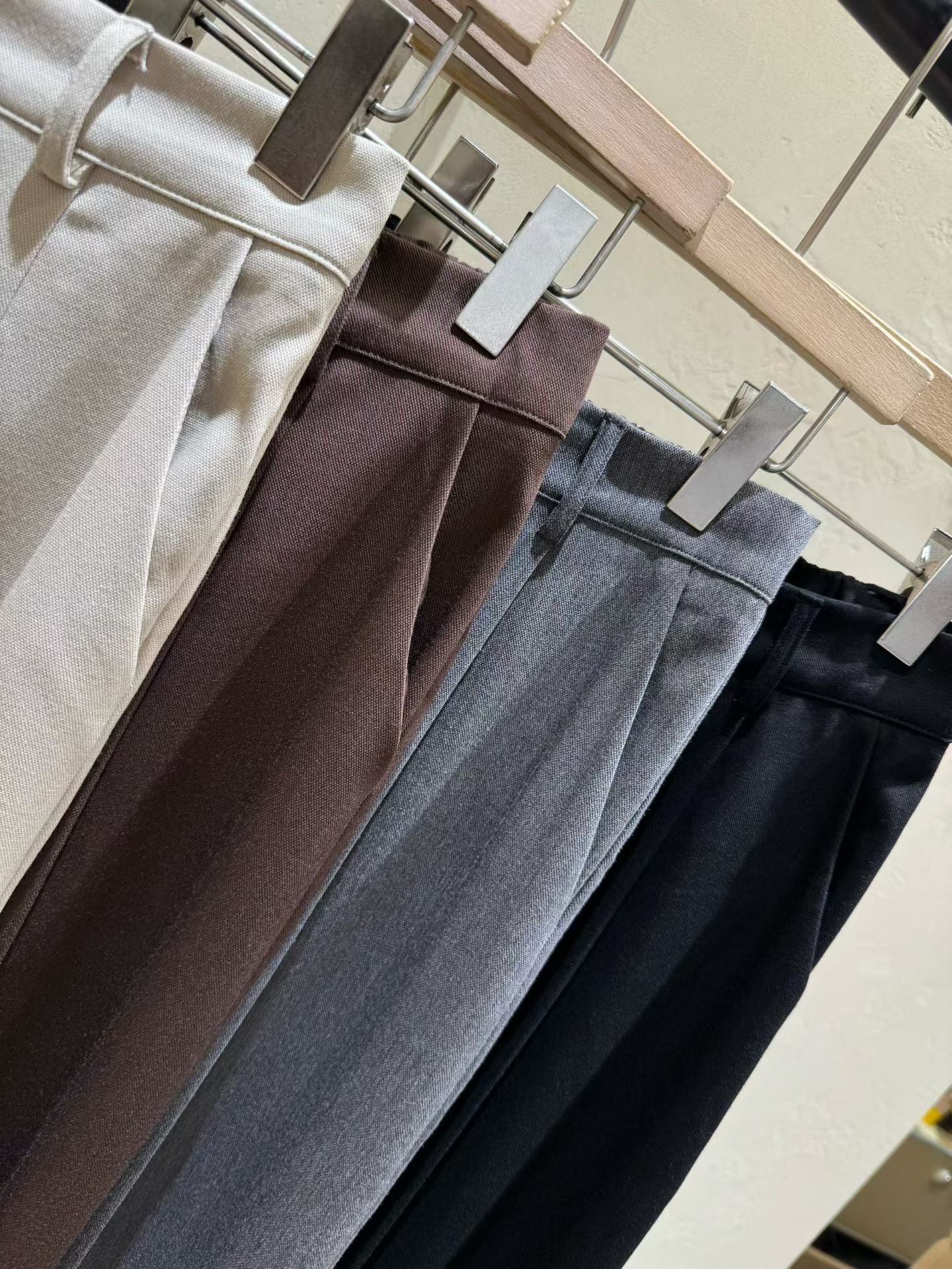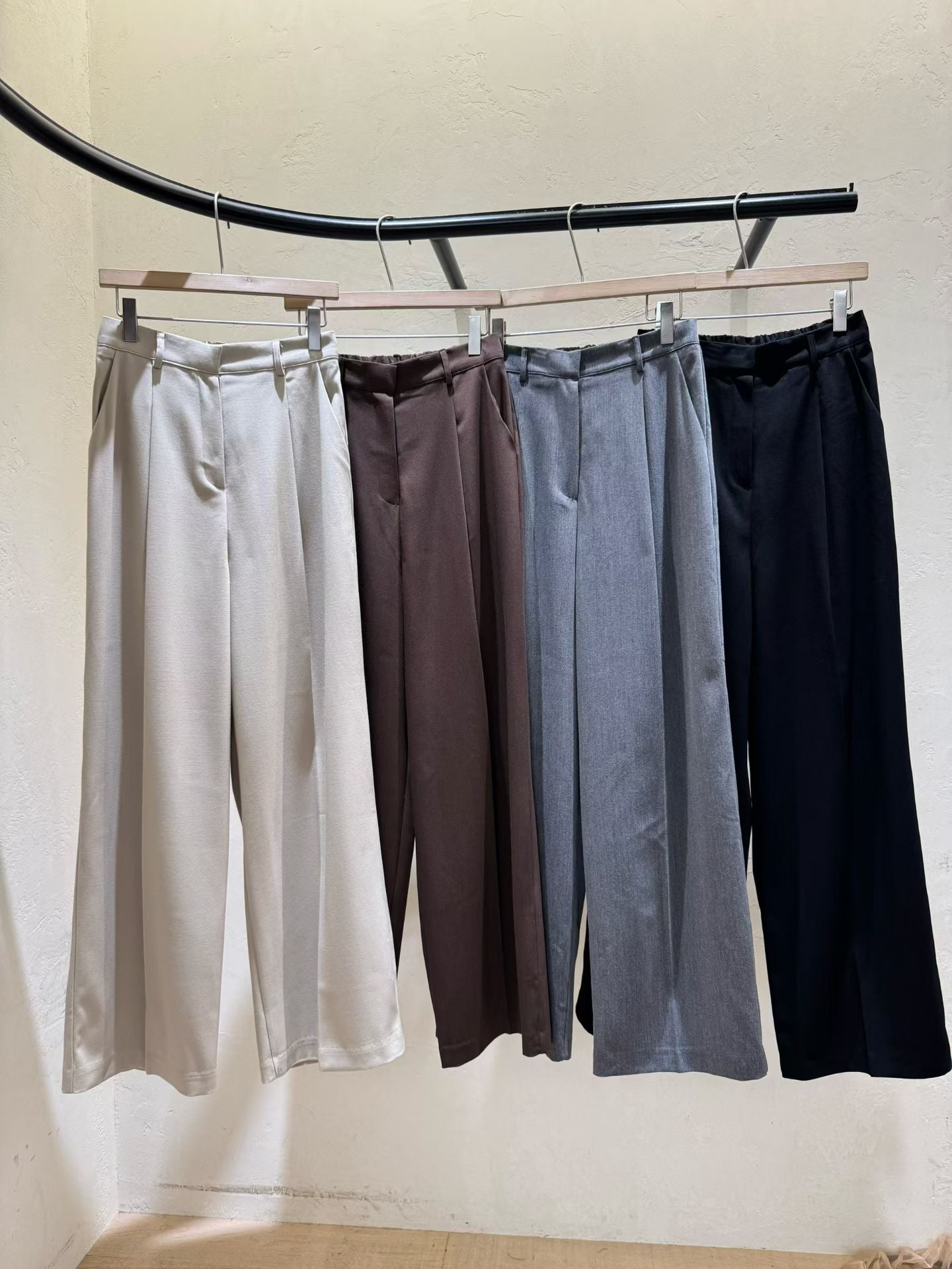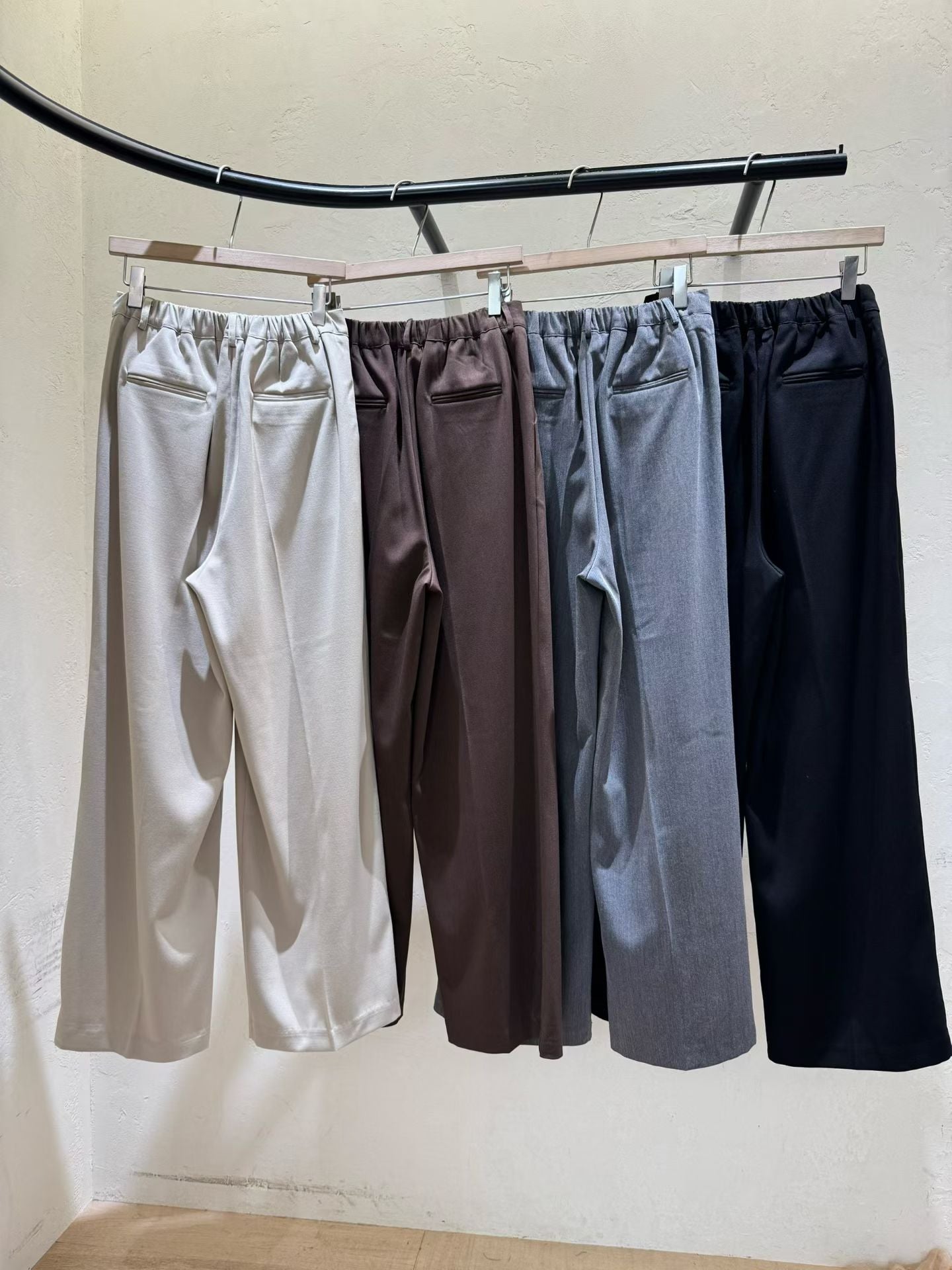 ⫸ 修長比例:垂墜感褲管營造出修長筆直的腿型,適合需要正式或氣質穿搭的場合。