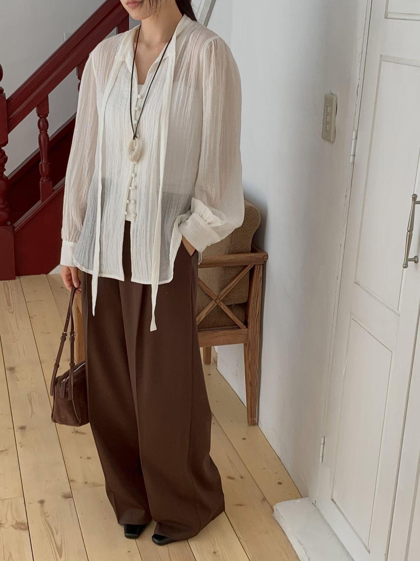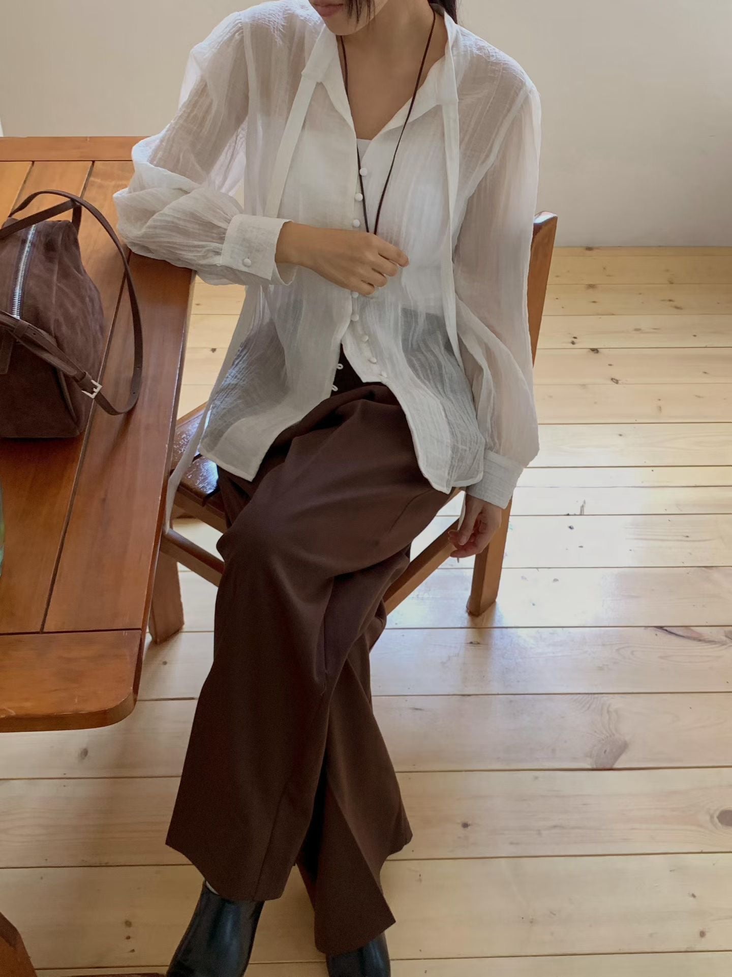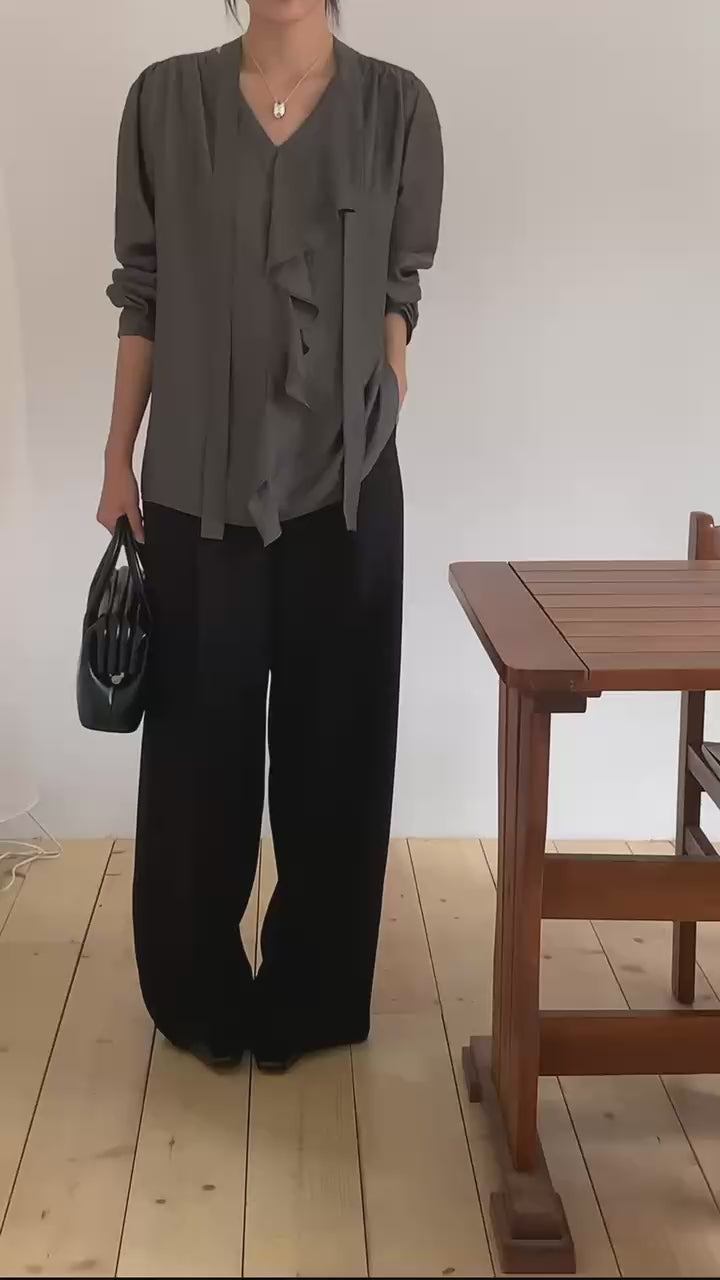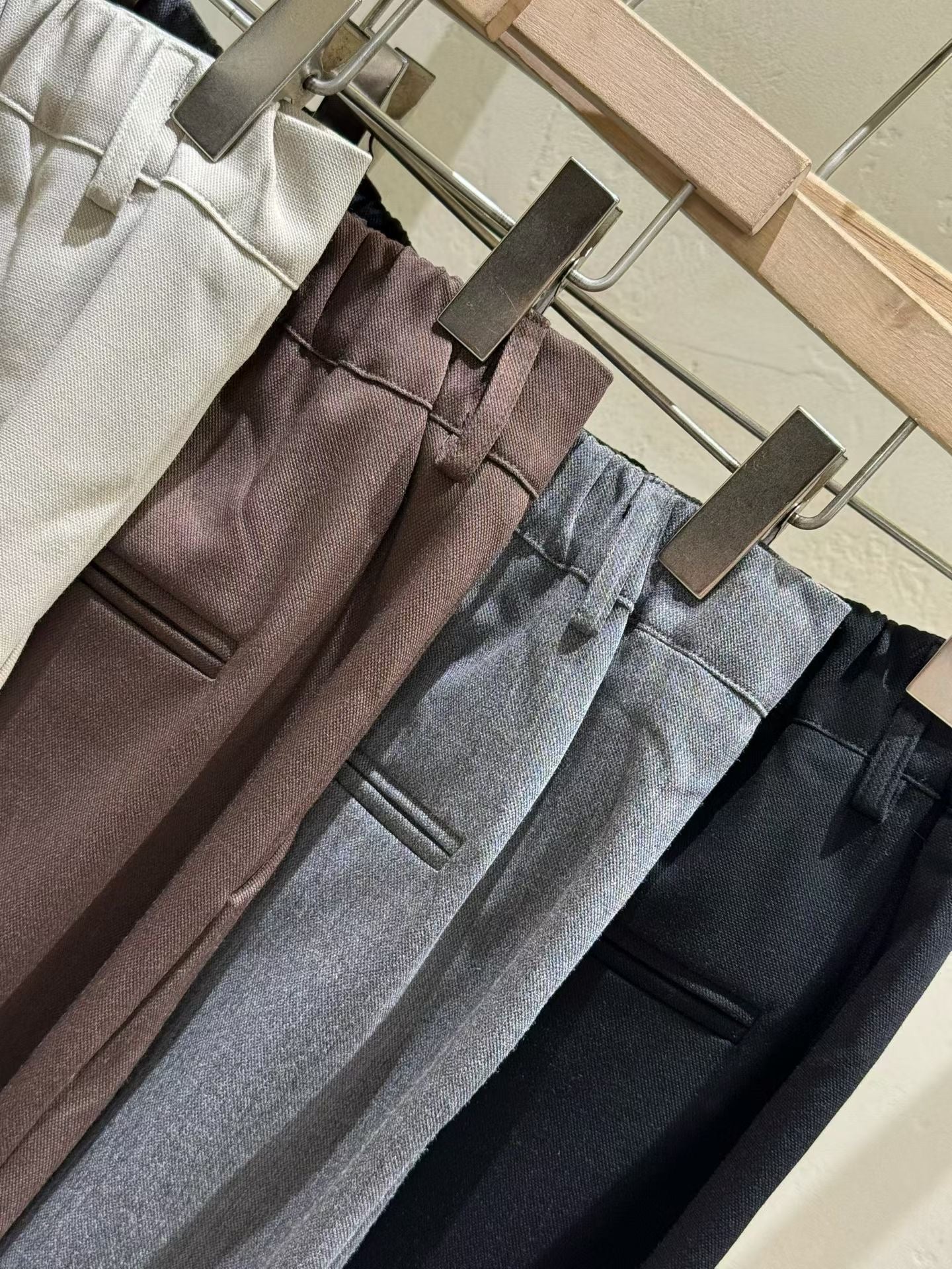 ⫸ 修長比例:垂墜感褲管營造出修長筆直的腿型,適合需要正式或氣質穿搭的場合。