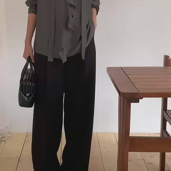 ⫸ 整體材質 挺闊+柔軟兼具,既能維持俐落褲型,又能有自然流暢的下墜感。