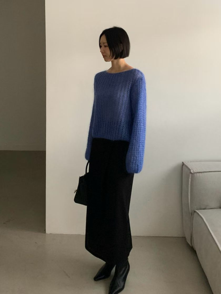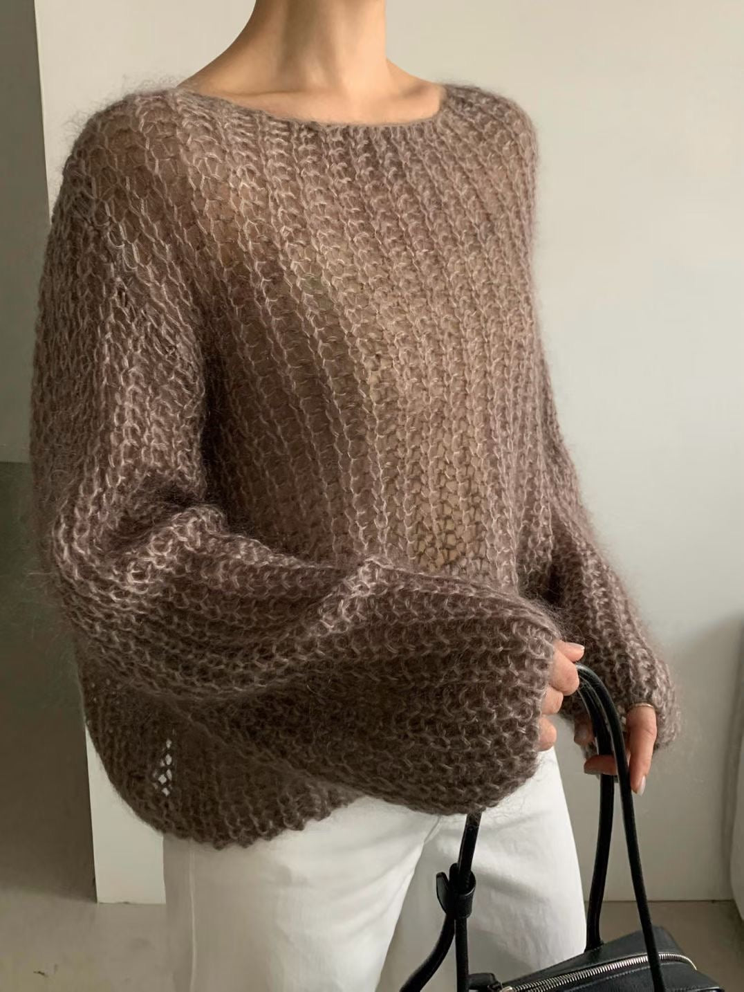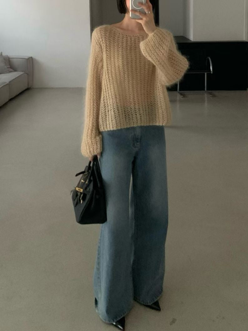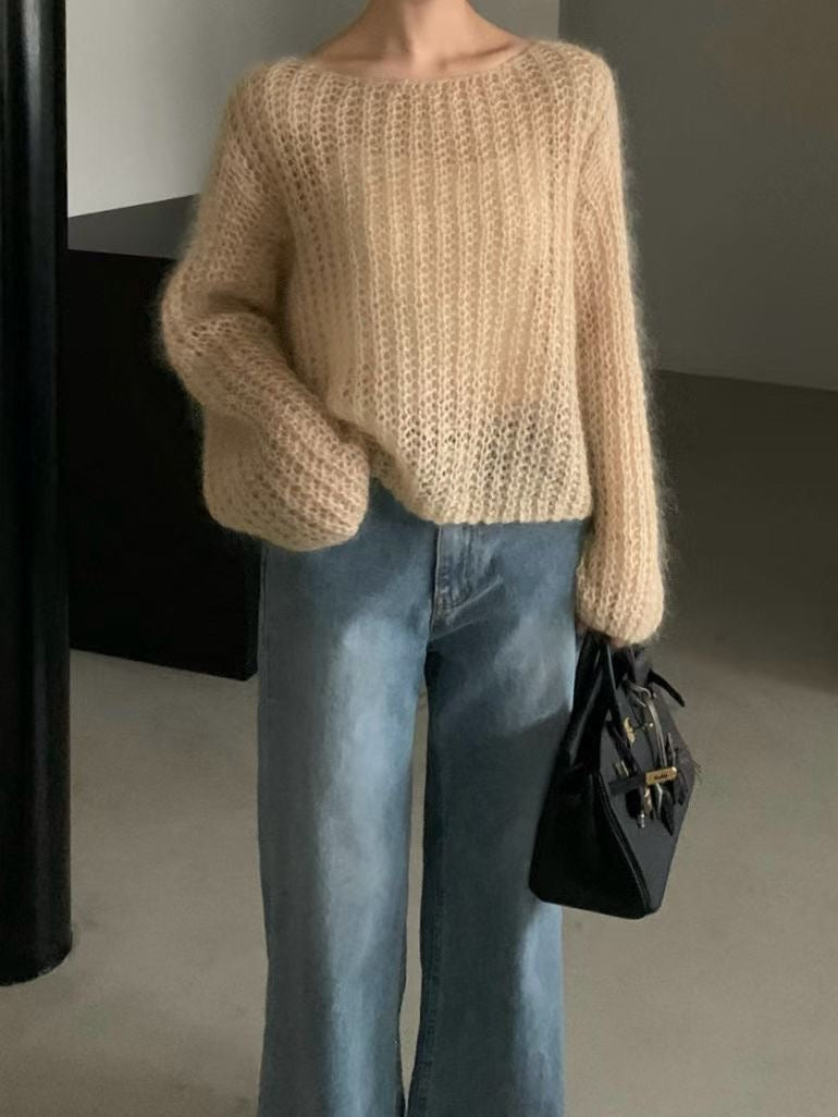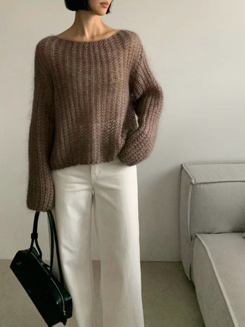 - 大面積空氣針織:採用略透的鬆織結構,讓毛海纖維自然蓬起,穿上就像一層輕柔雲霧覆在身上。