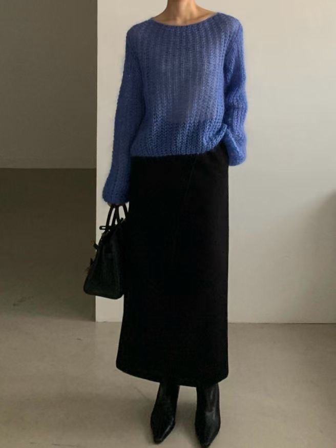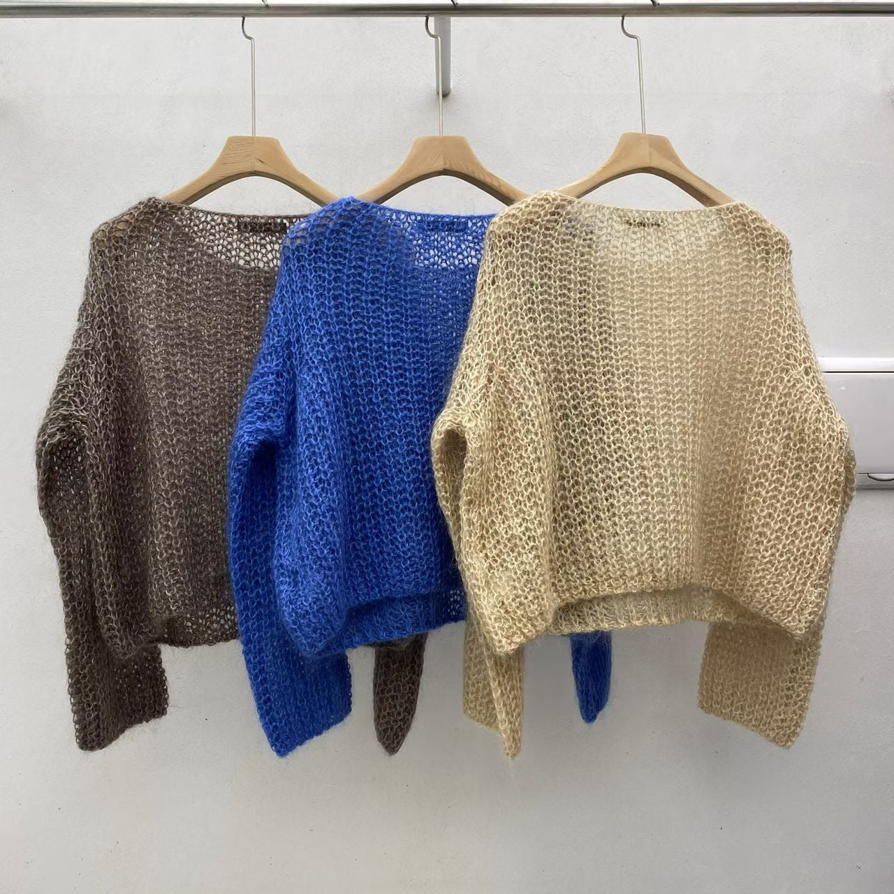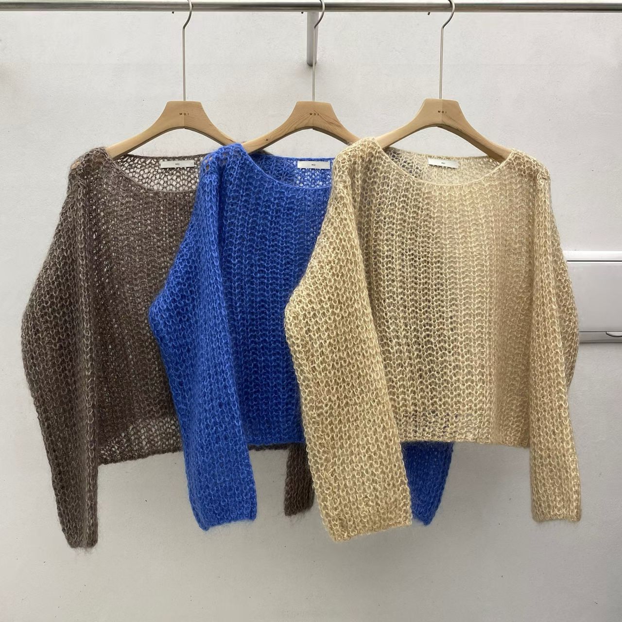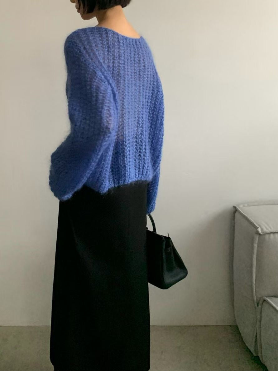 - 大面積空氣針織:採用略透的鬆織結構,讓毛海纖維自然蓬起,穿上就像一層輕柔雲霧覆在身上。