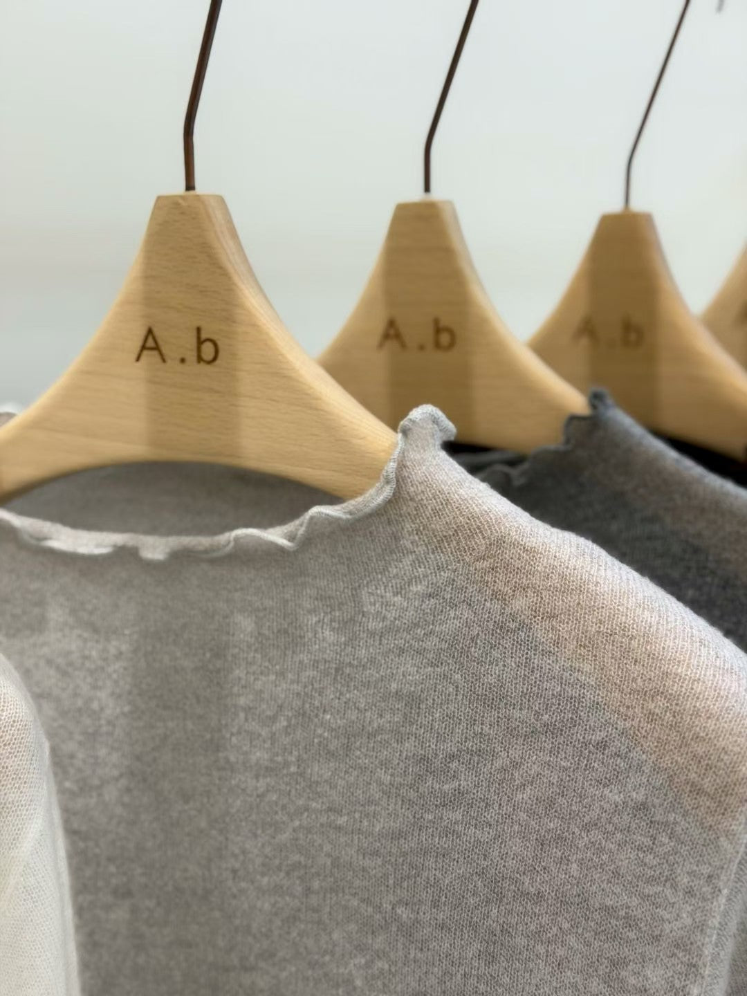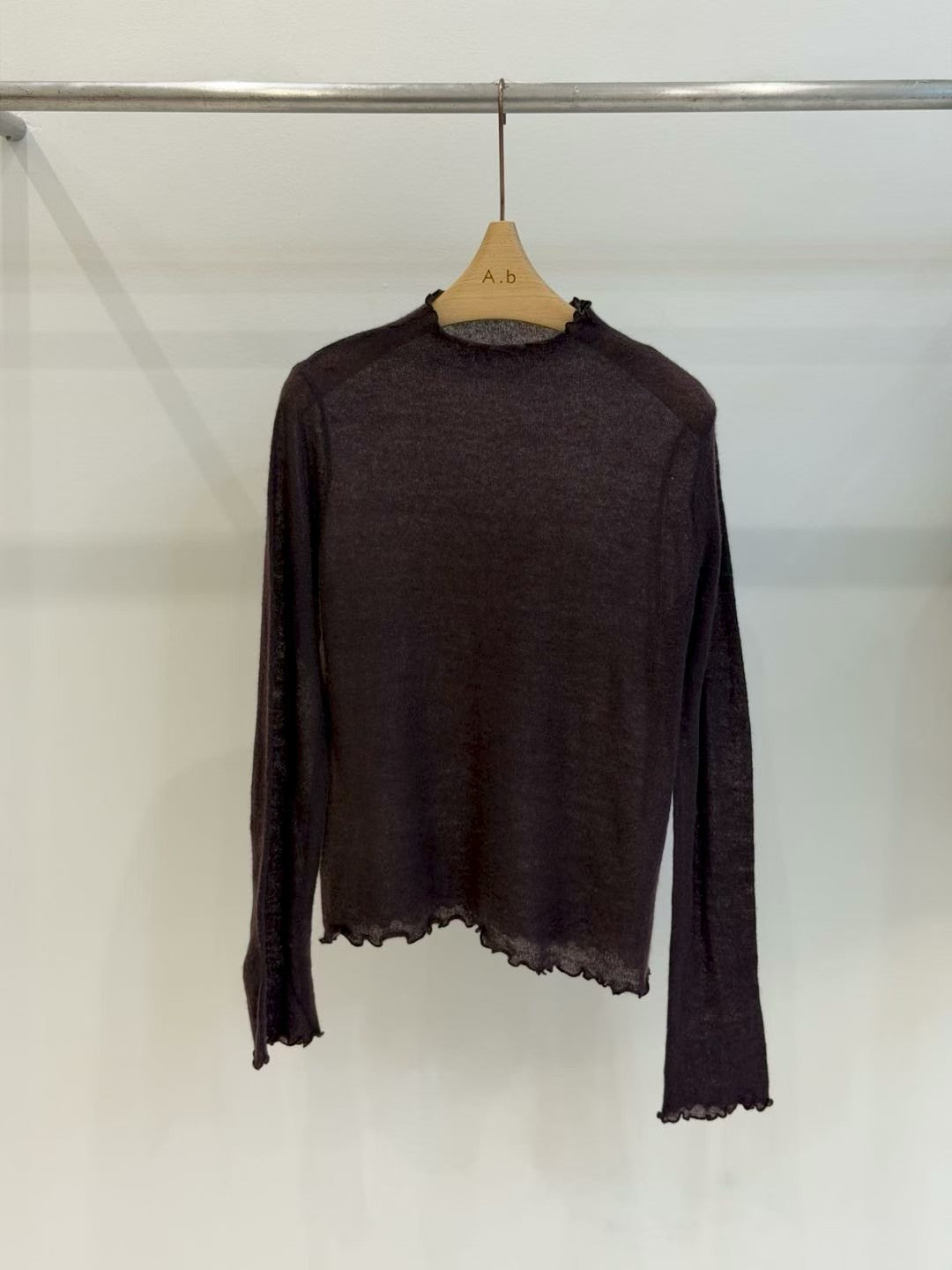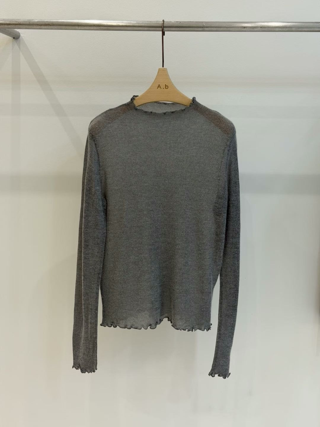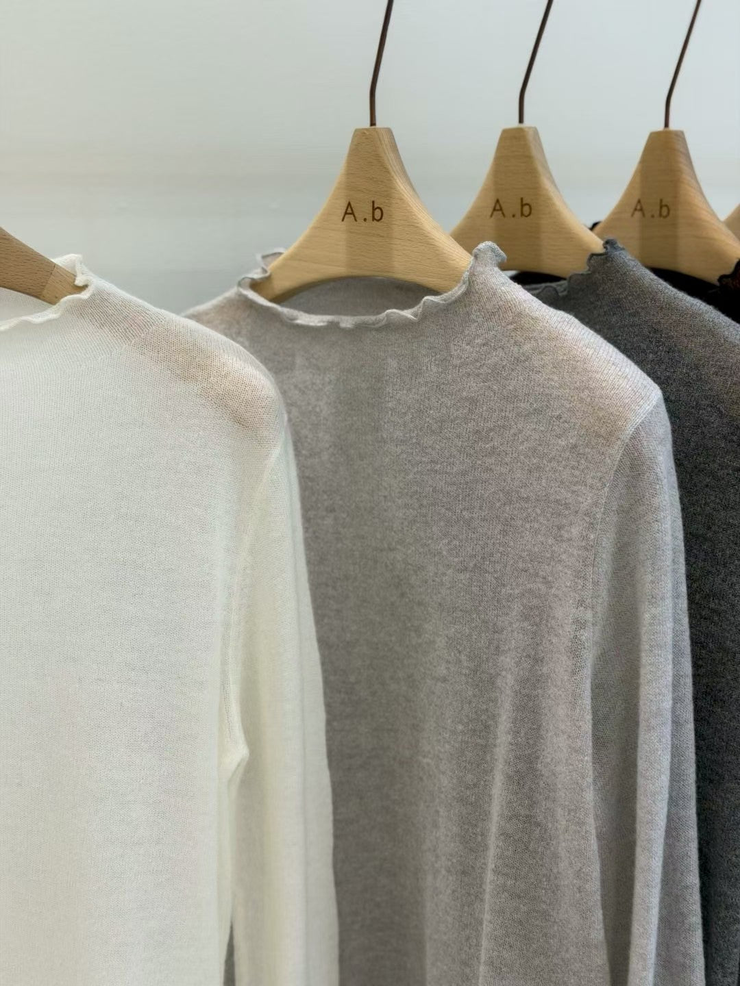 ⫸ 木耳邊細節:領口/袖口/下擺全採木耳捲邊,柔美不做作,露邊疊穿更有層次。