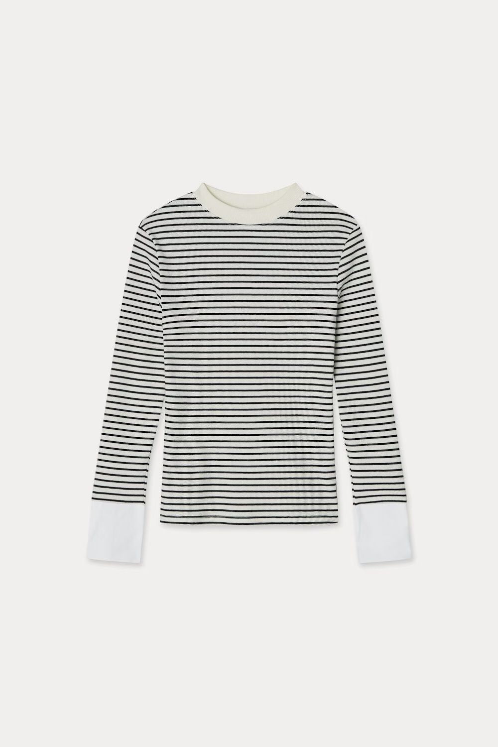 ⫸ 細條紋/素色版本:黑白條、粉白條帶學院感;深海軍素色更內斂好疊。