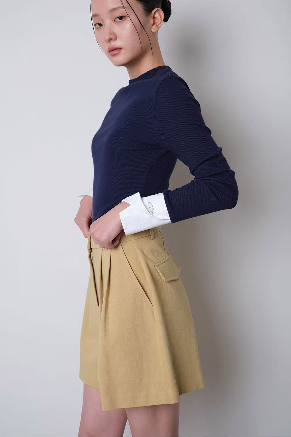 ♡襯衫袖口拼接的羅紋打底上衣♡ (C251141)