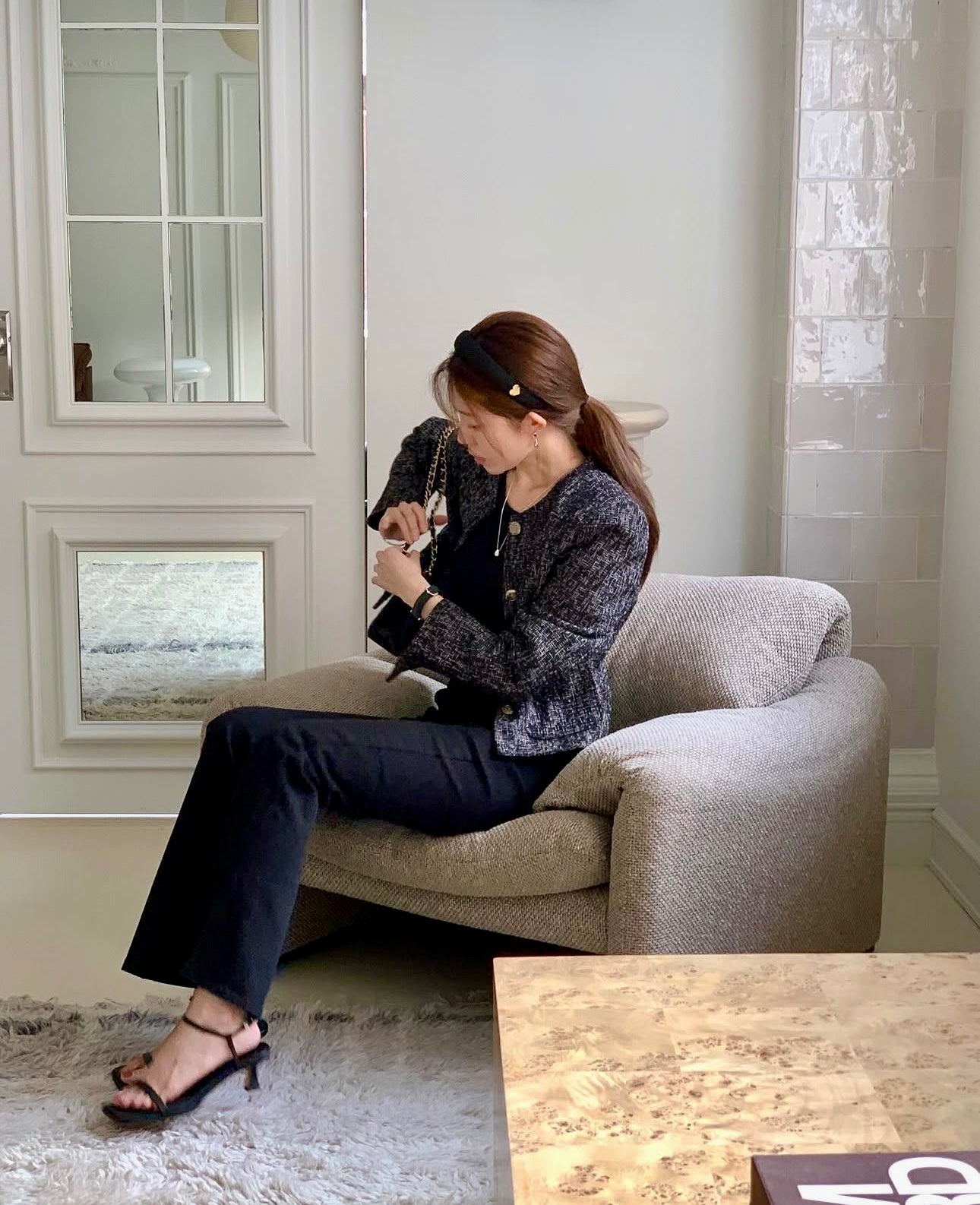 - 小香毛呢格紋編織布面包覆:黑、白與黑白格紋三款,各有不同風格;表面觸感細緻、視覺層次豐富。