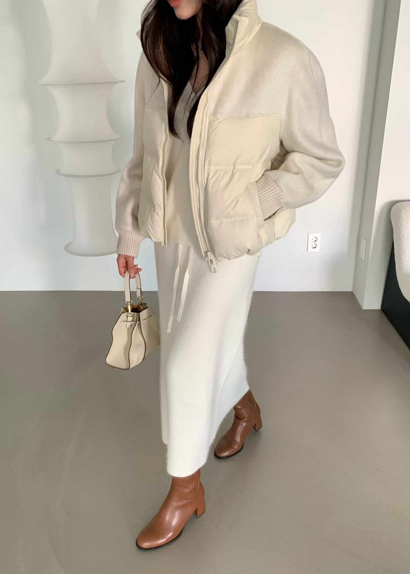 - 整件穿起來是輕量卻有支撐度的蓬感,像小雲朵包住身體,保暖但不會有笨重感。
