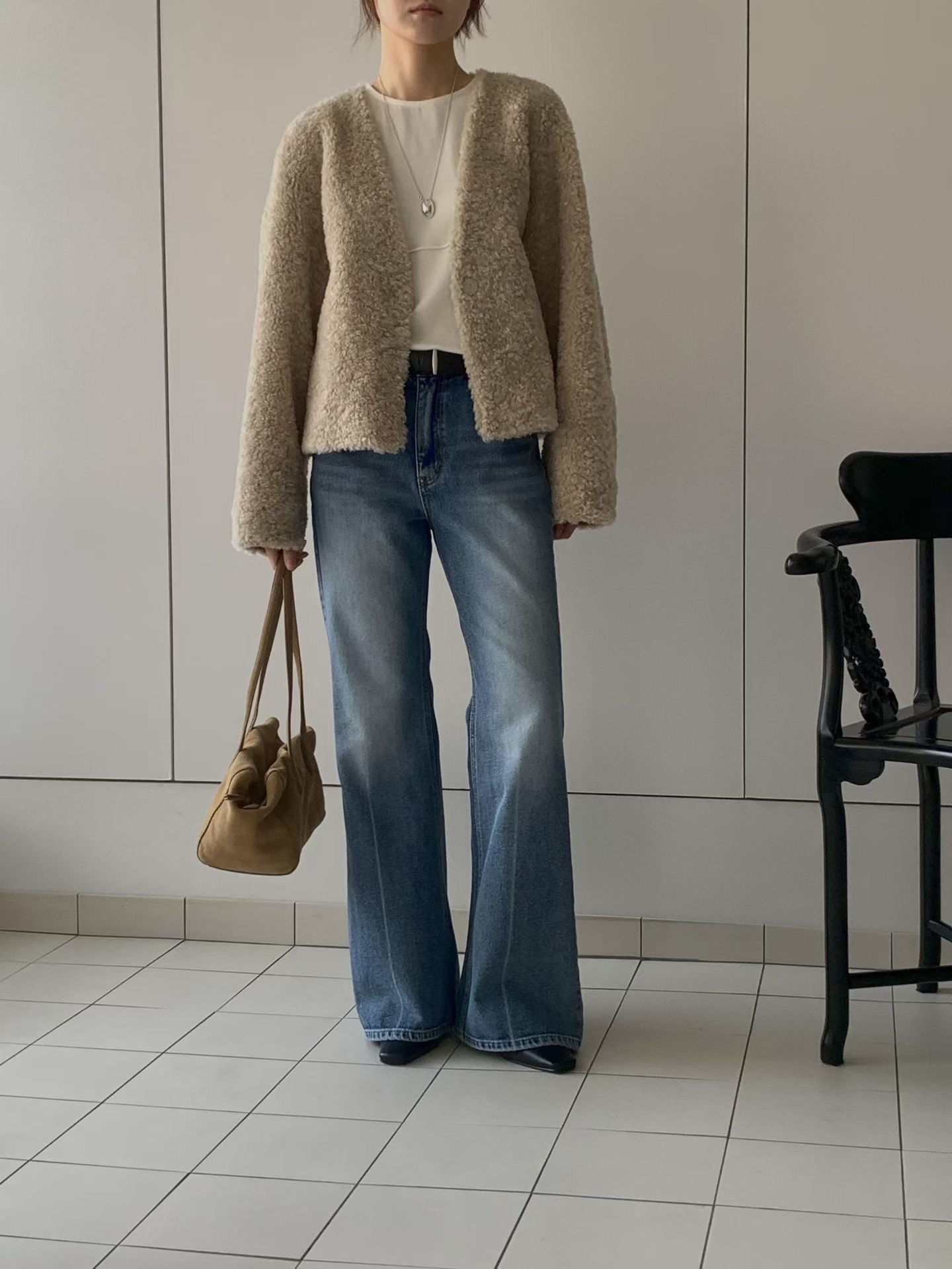 - 版型:中高腰|臀圍合身但不貼|大腿微寬鬆|膝下漸擴喇叭。