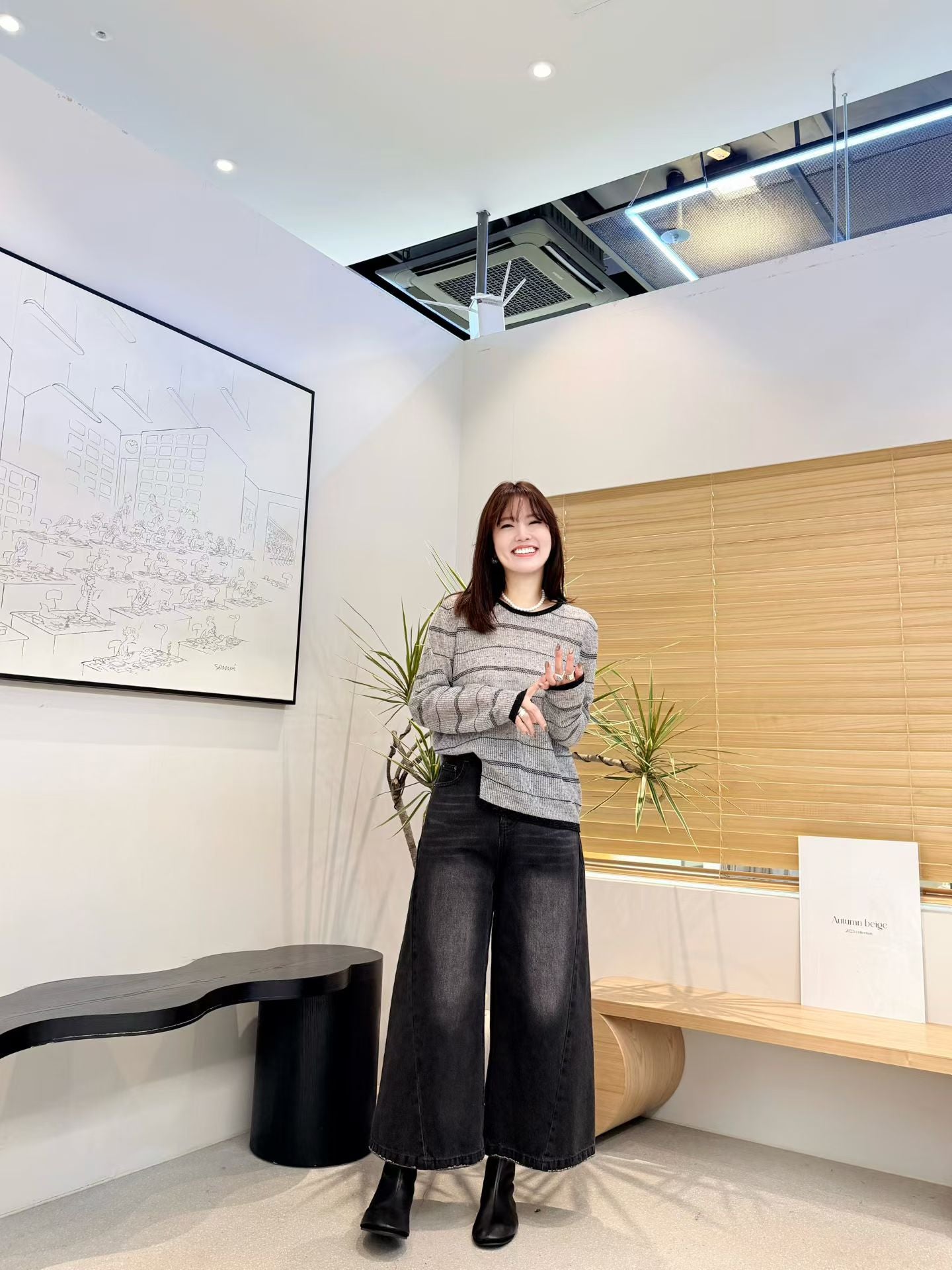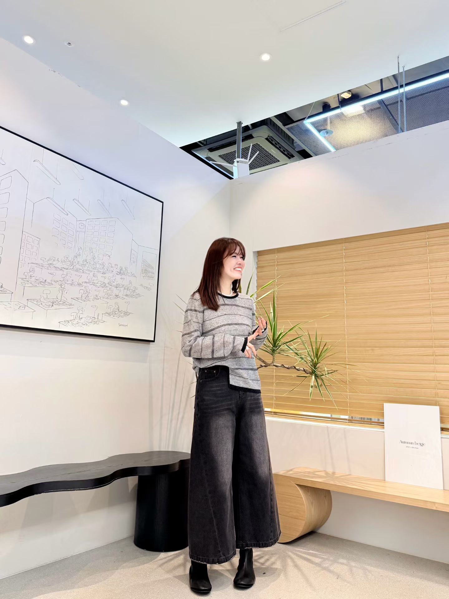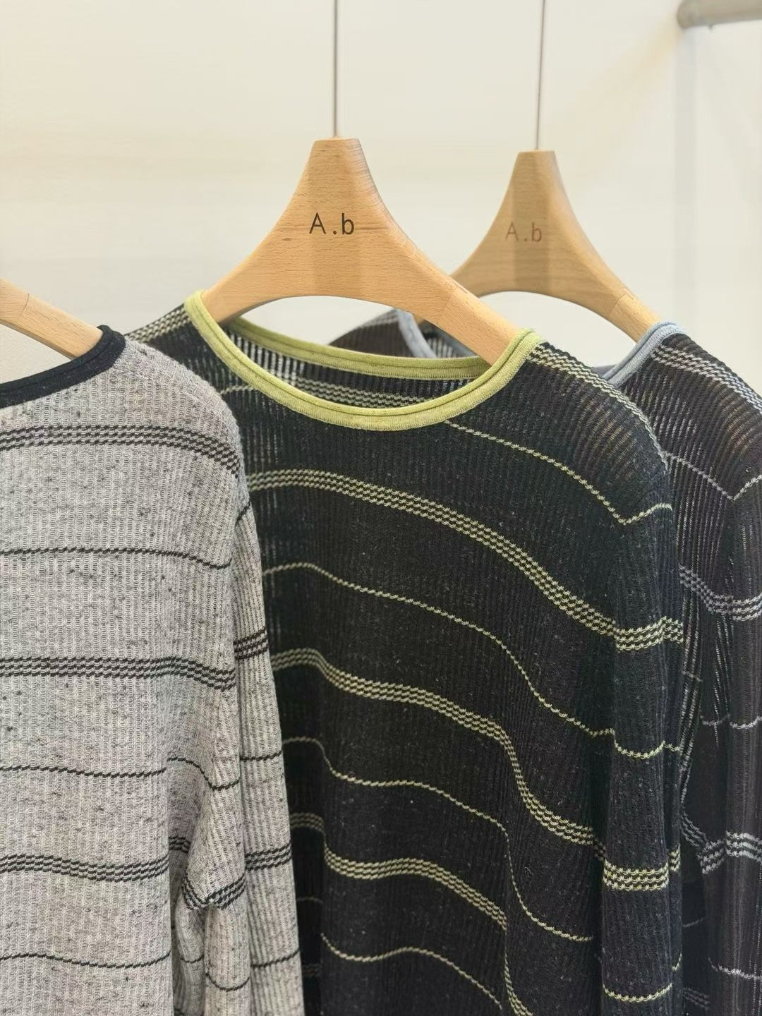 ⫸ 柔和水平條紋 × 直條羅紋:視覺同時「拉長+修身」,條紋間距有節奏,不挑人、不顯壯。