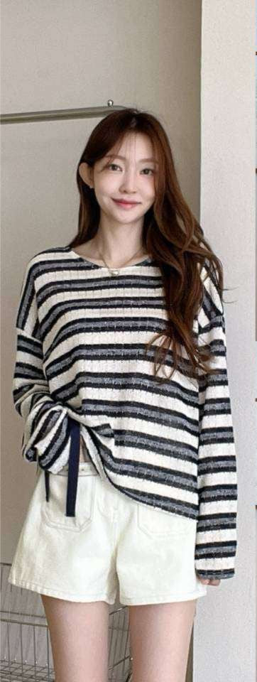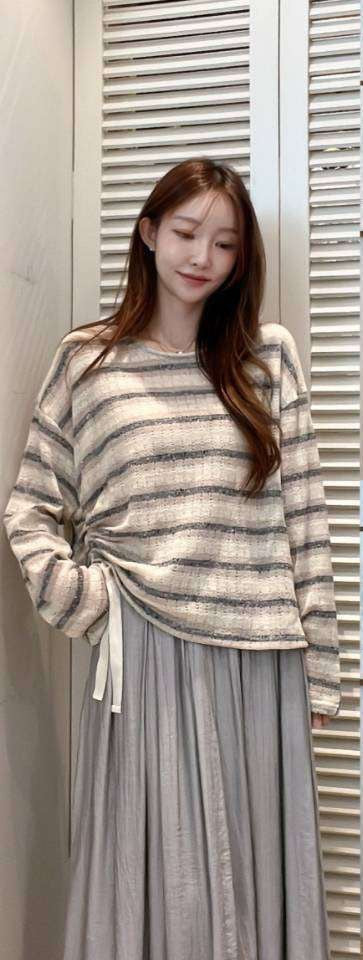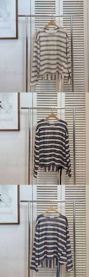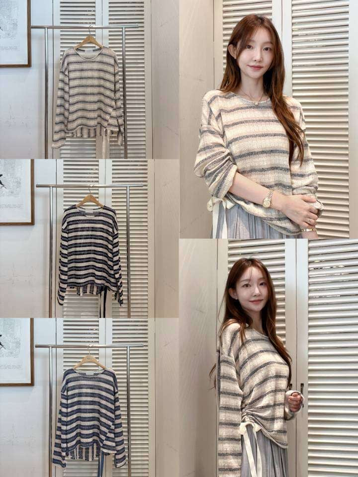 ♡ 輕鬆自在側抽繩造型條紋上衣♡ (C251041)