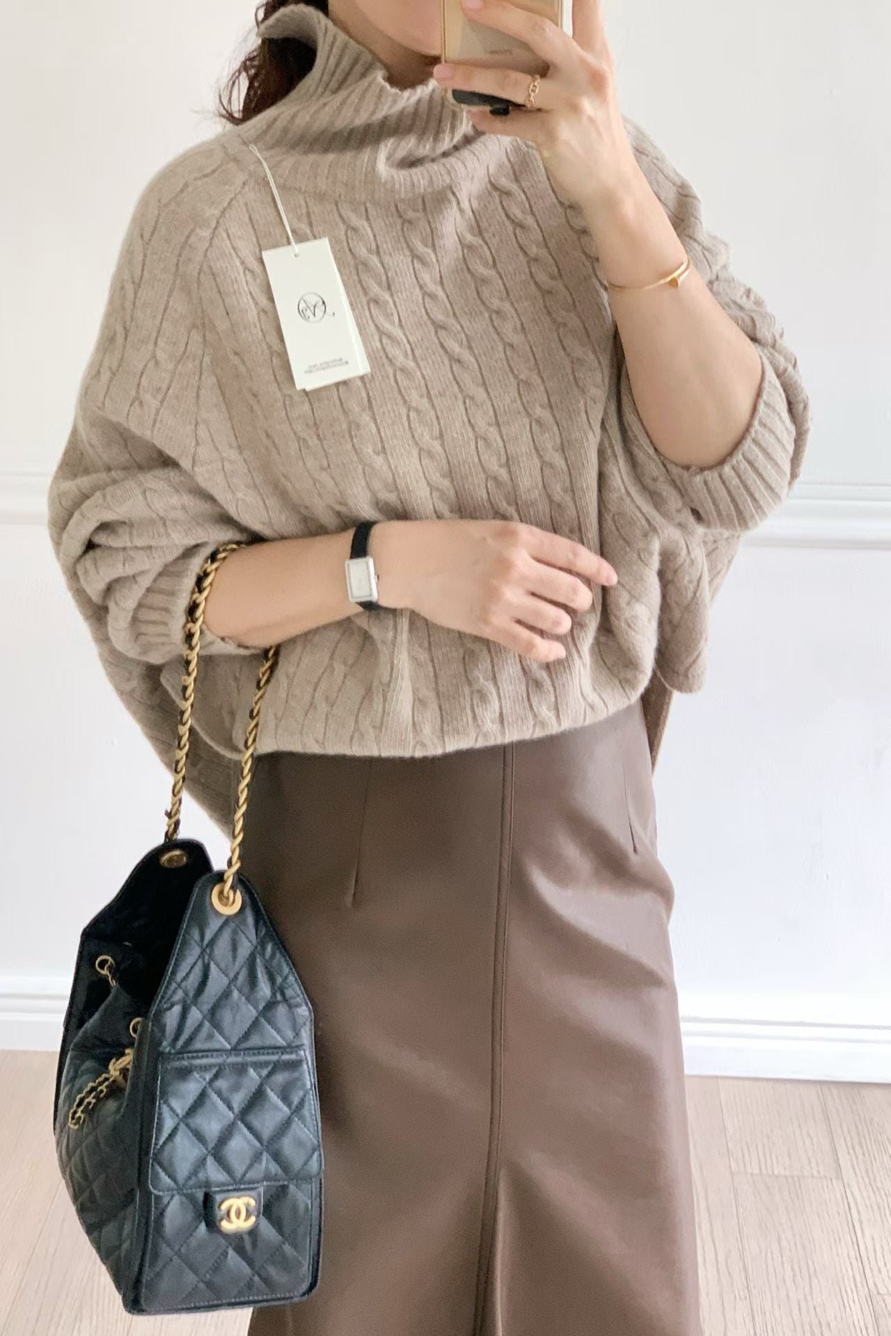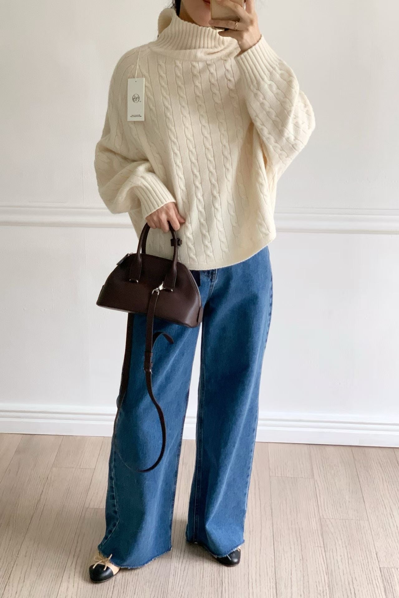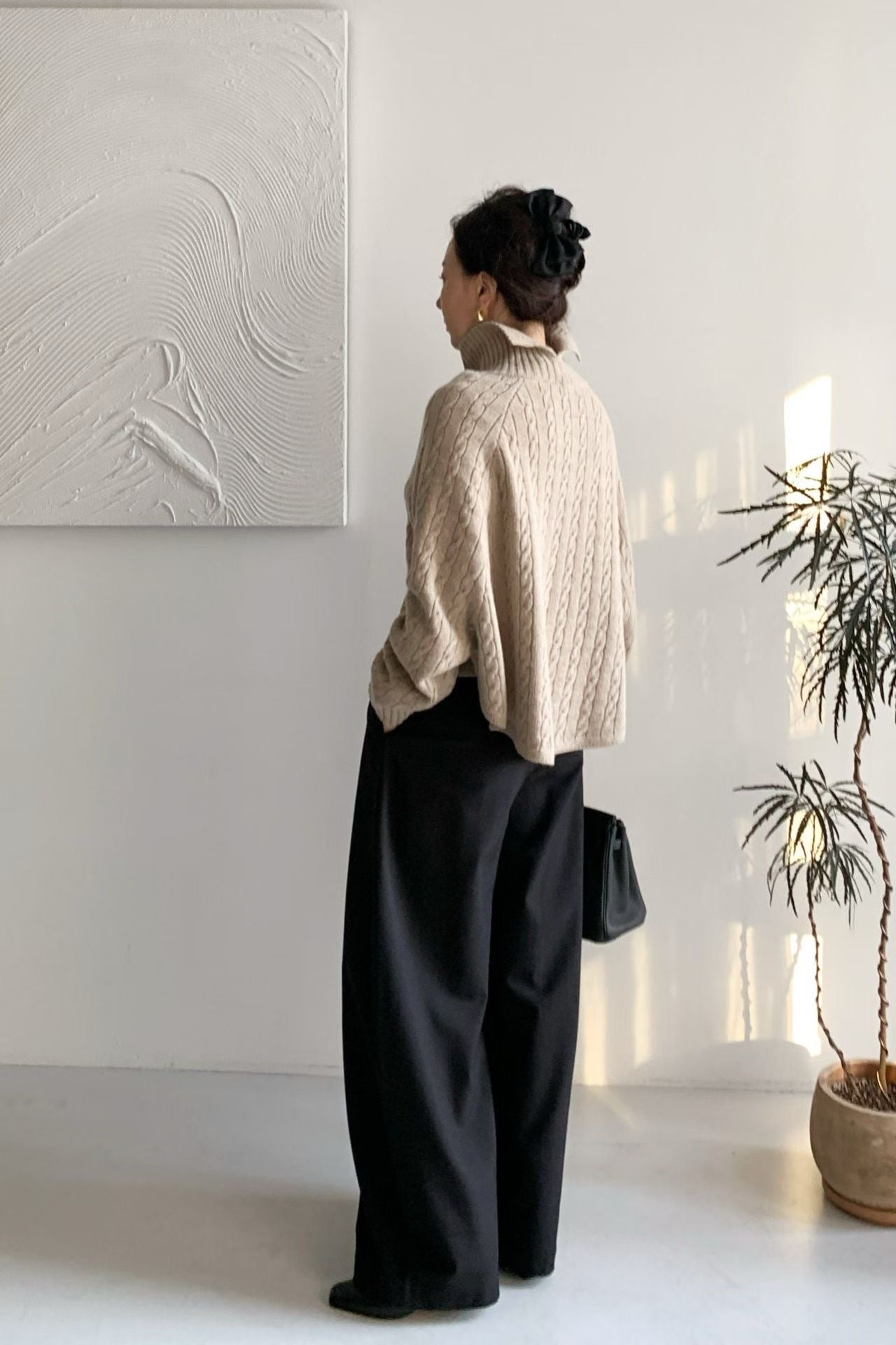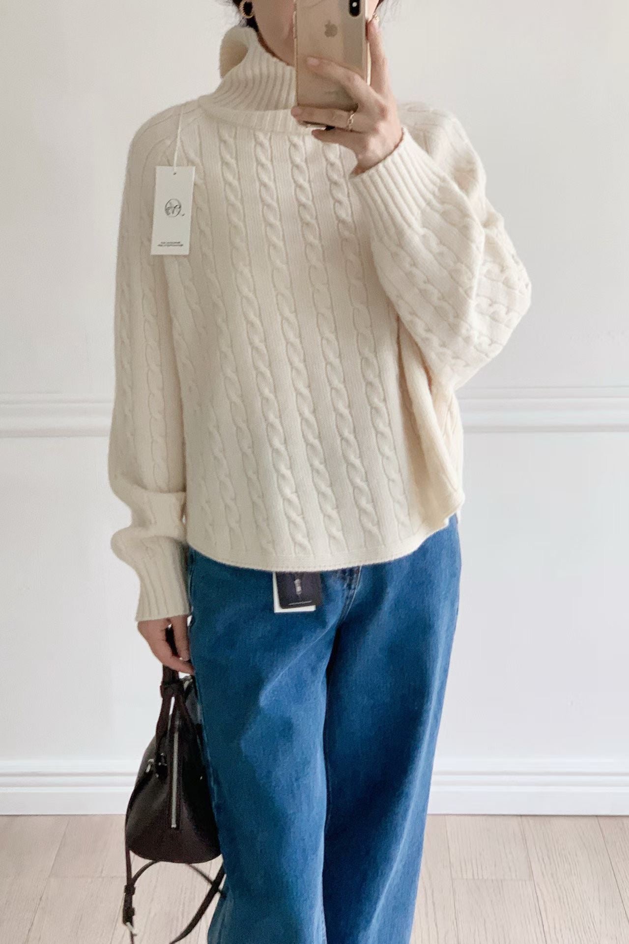 - 這款高領毛衣以經典麻花編織結合繭型 Oversize 版型,穿上即呈現慵懶、高級的韓系風格。