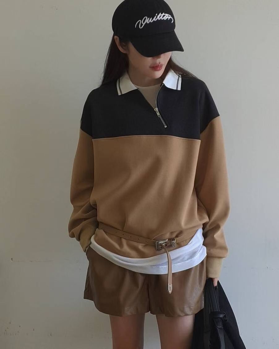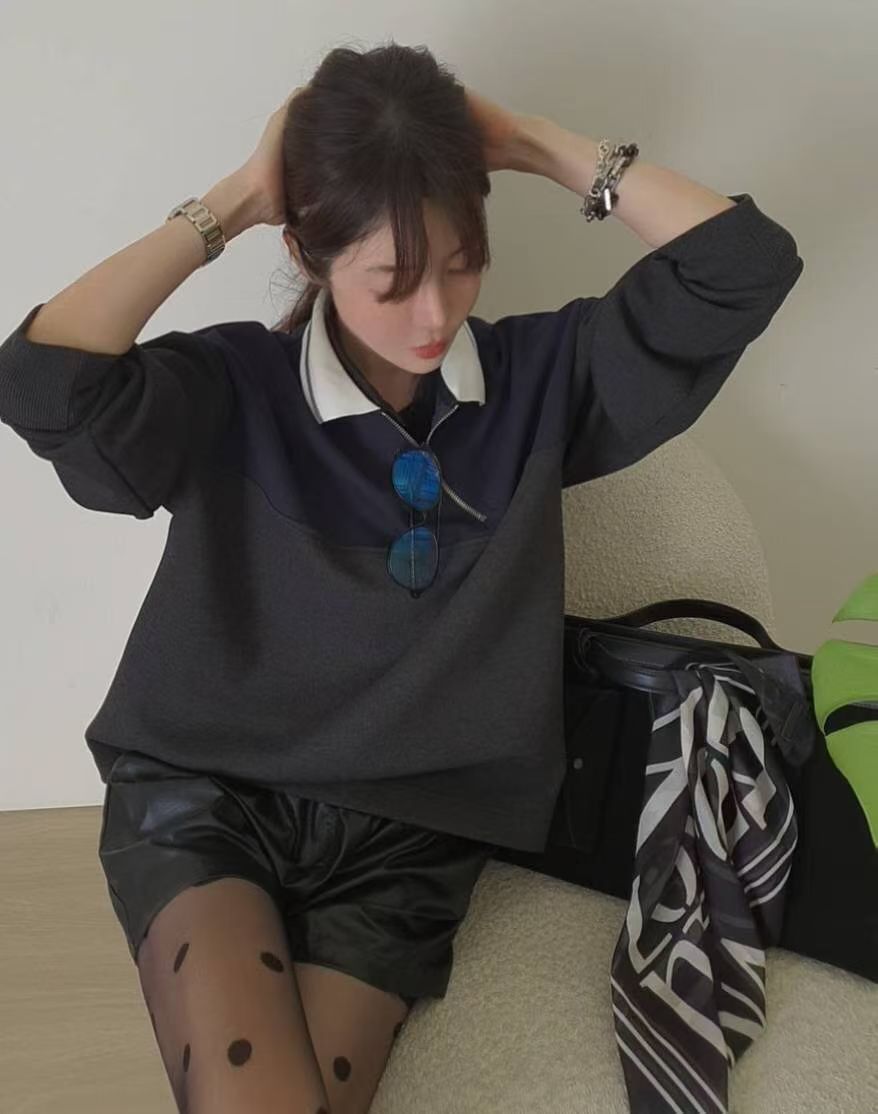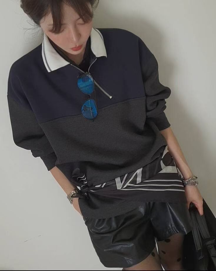⫸ 上深下淺的雙色拼接:視覺自帶「縮腰線」,比例更順更顯瘦。