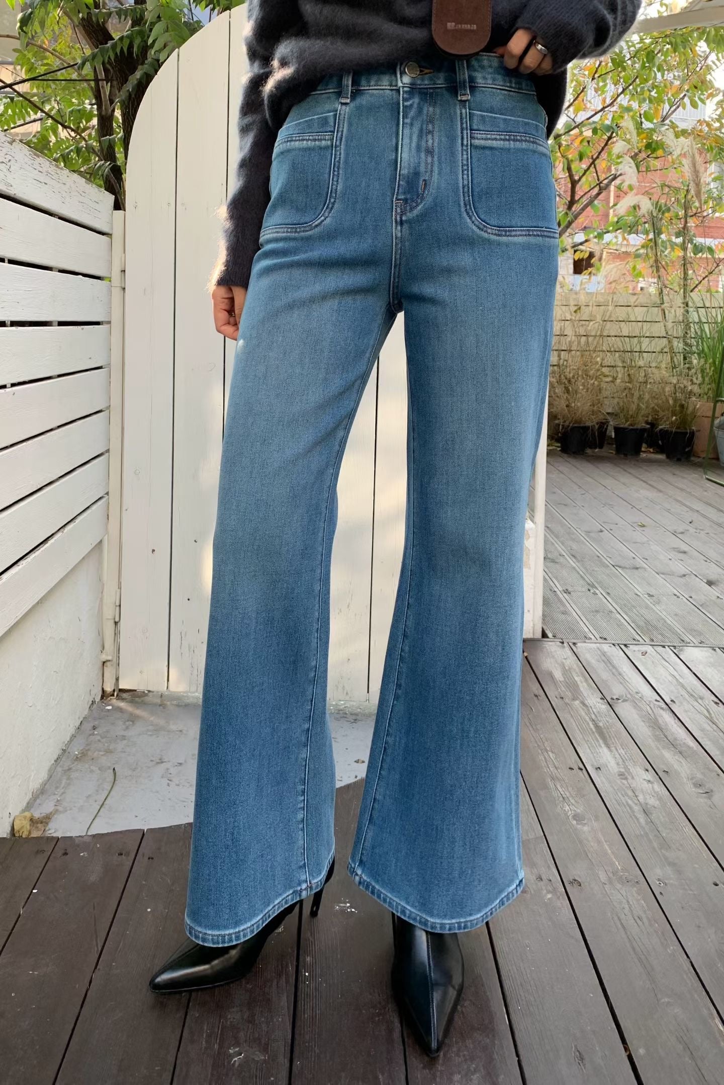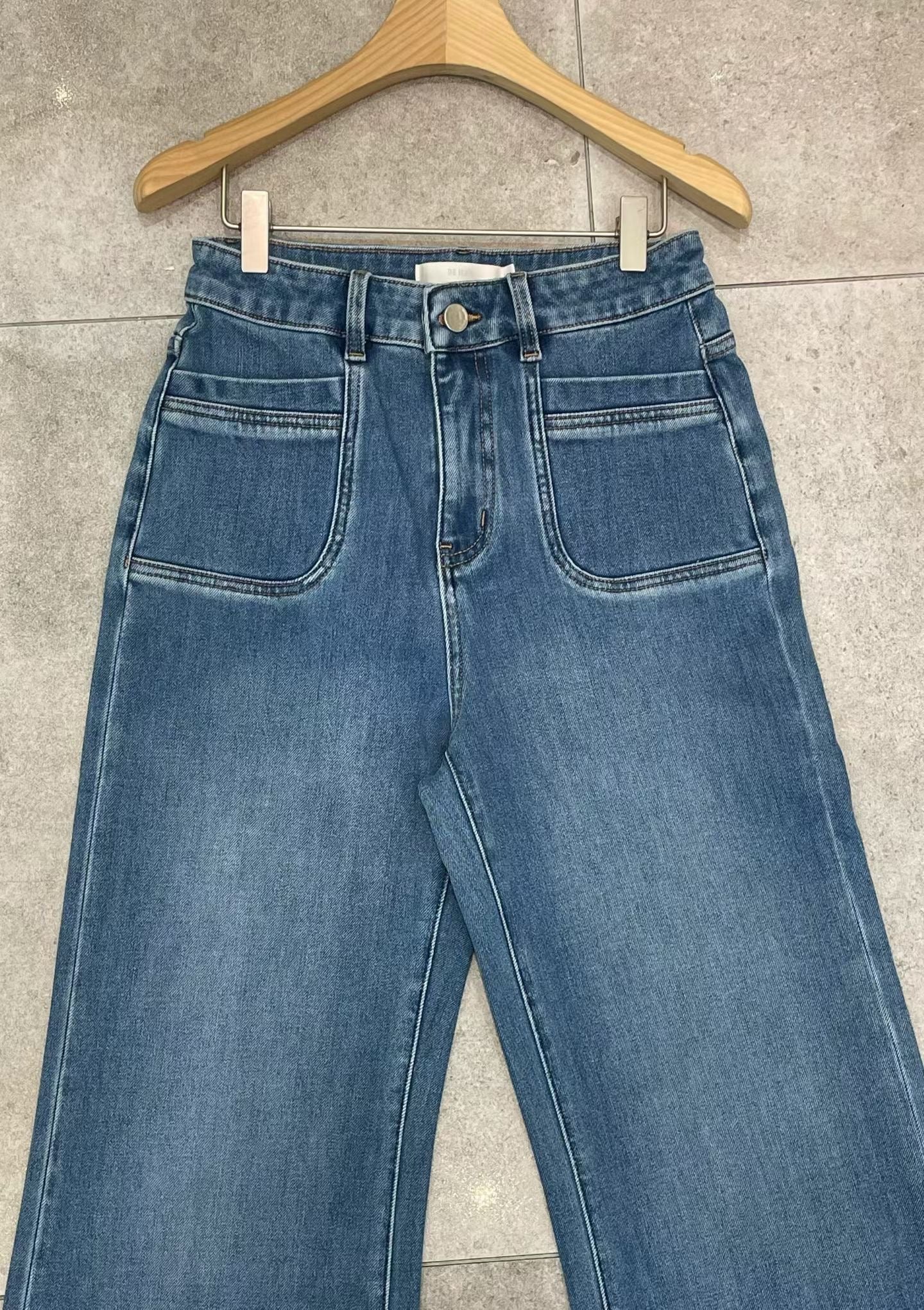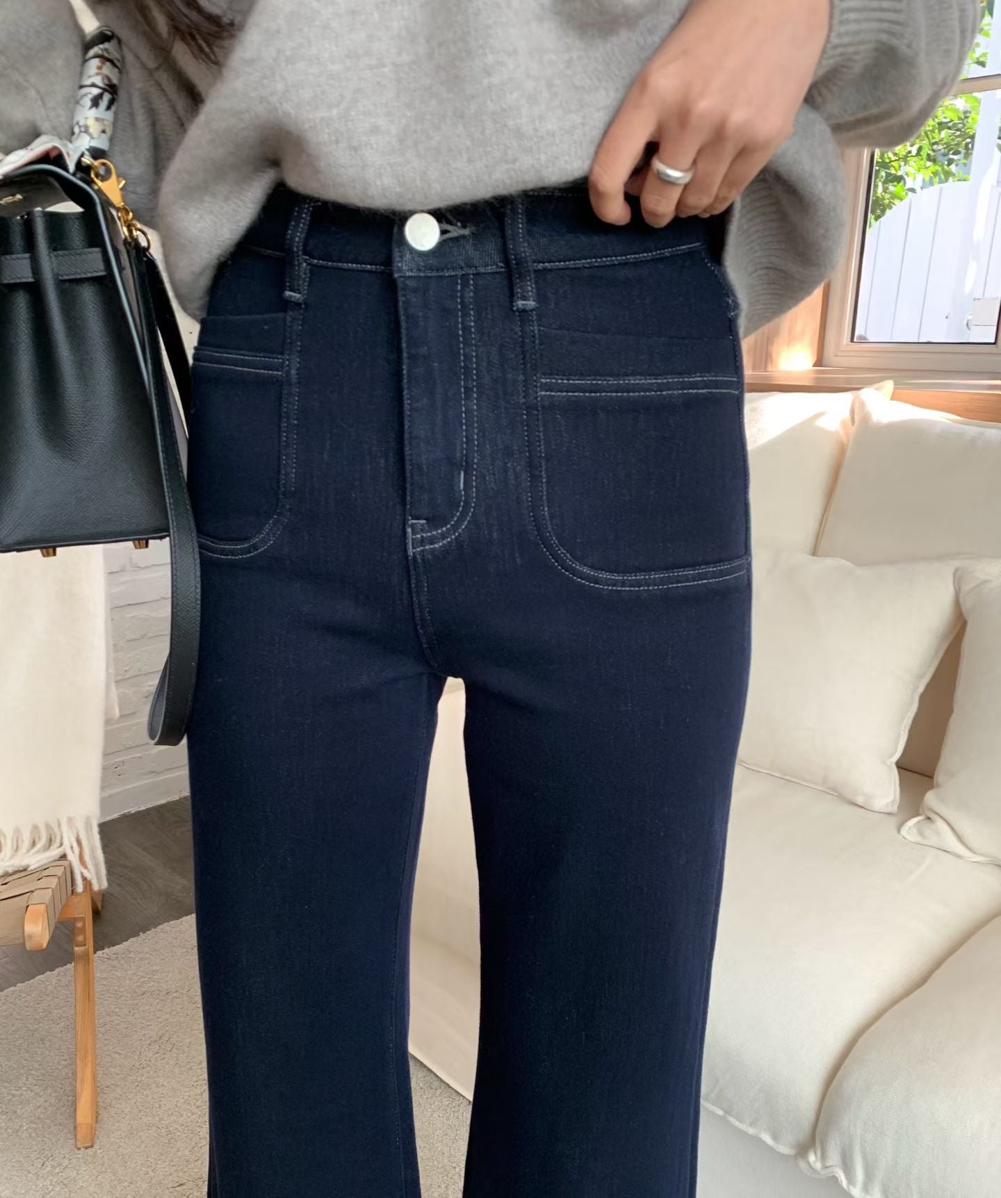 ♡雙口袋修身刷絨微喇叭牛仔褲♡ (C251216)