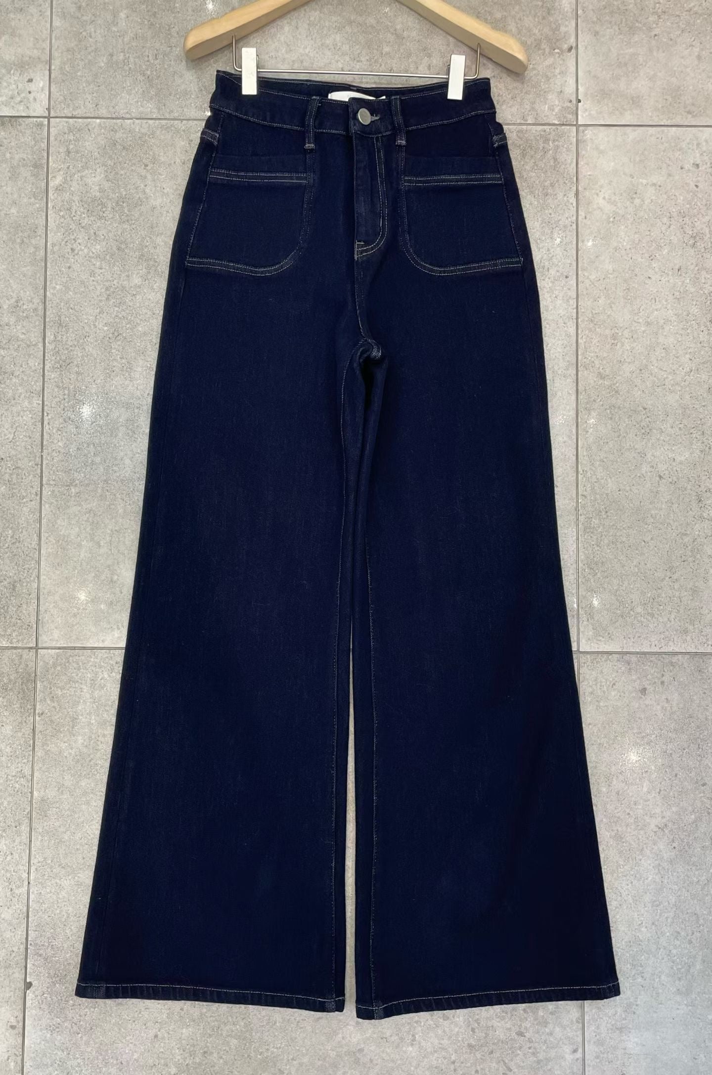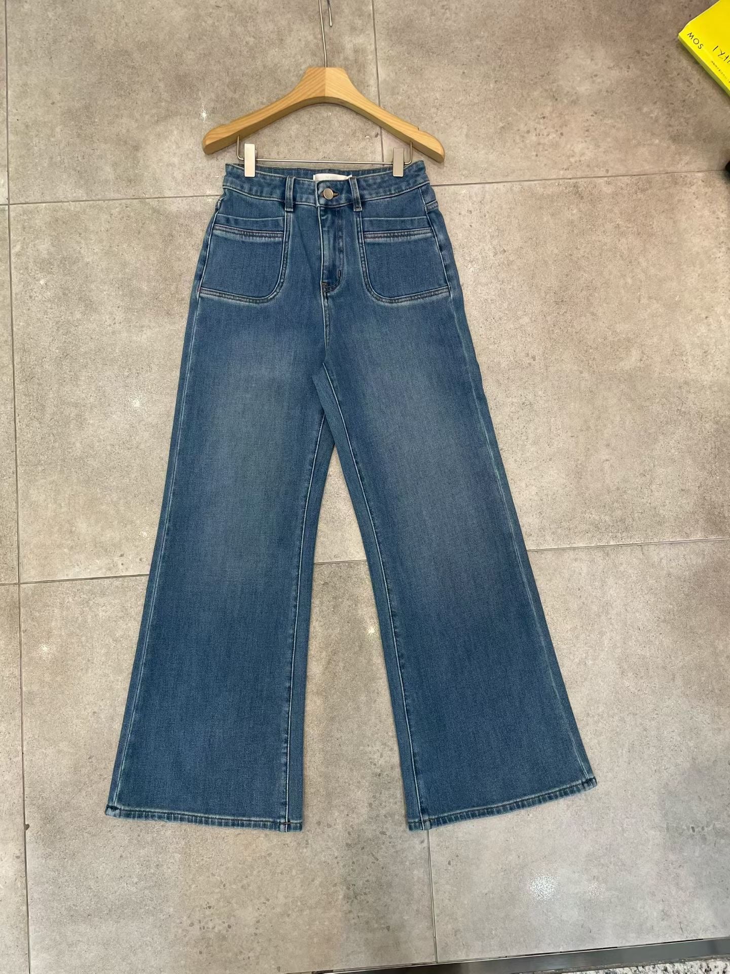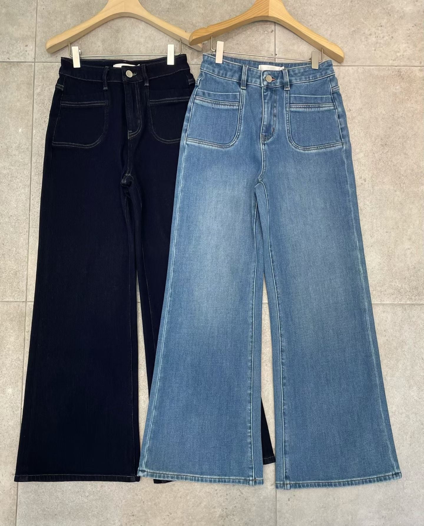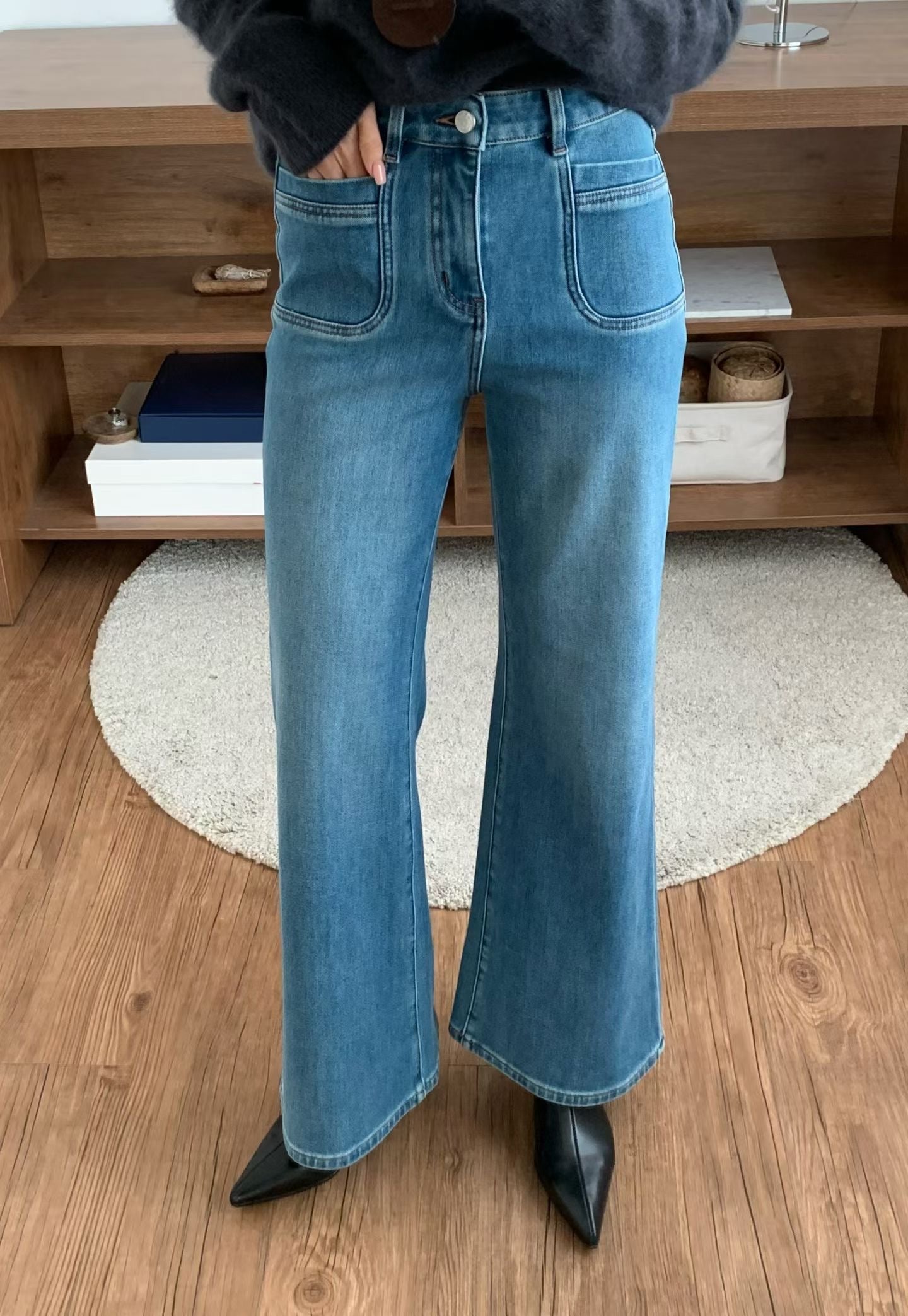♡雙口袋修身刷絨微喇叭牛仔褲♡ (C251216)