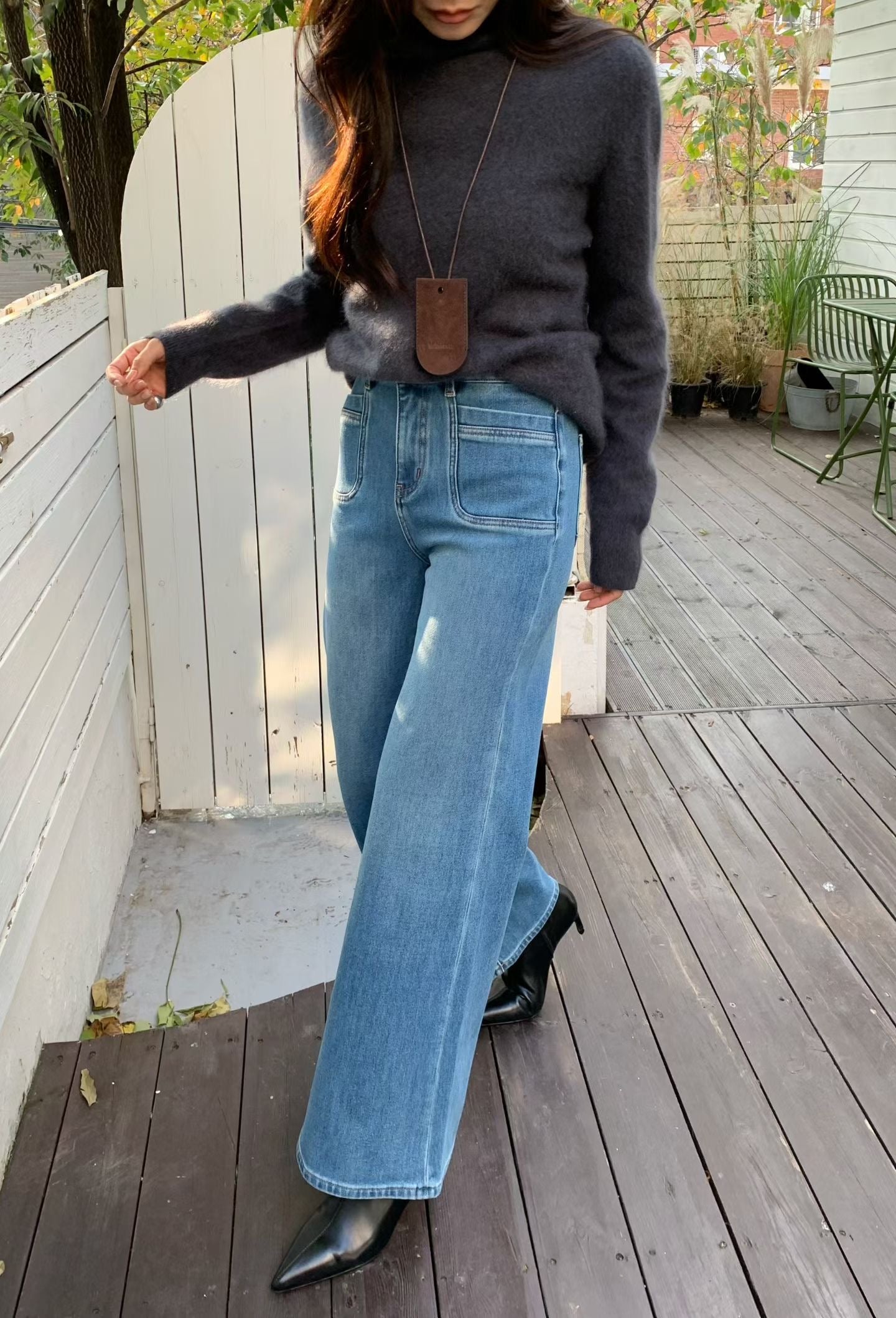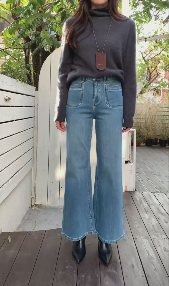 • 這款褲子是 「冬季保暖 × 昭瘦線條 × 修長比例」一次到位的 必買微喇牛仔褲。