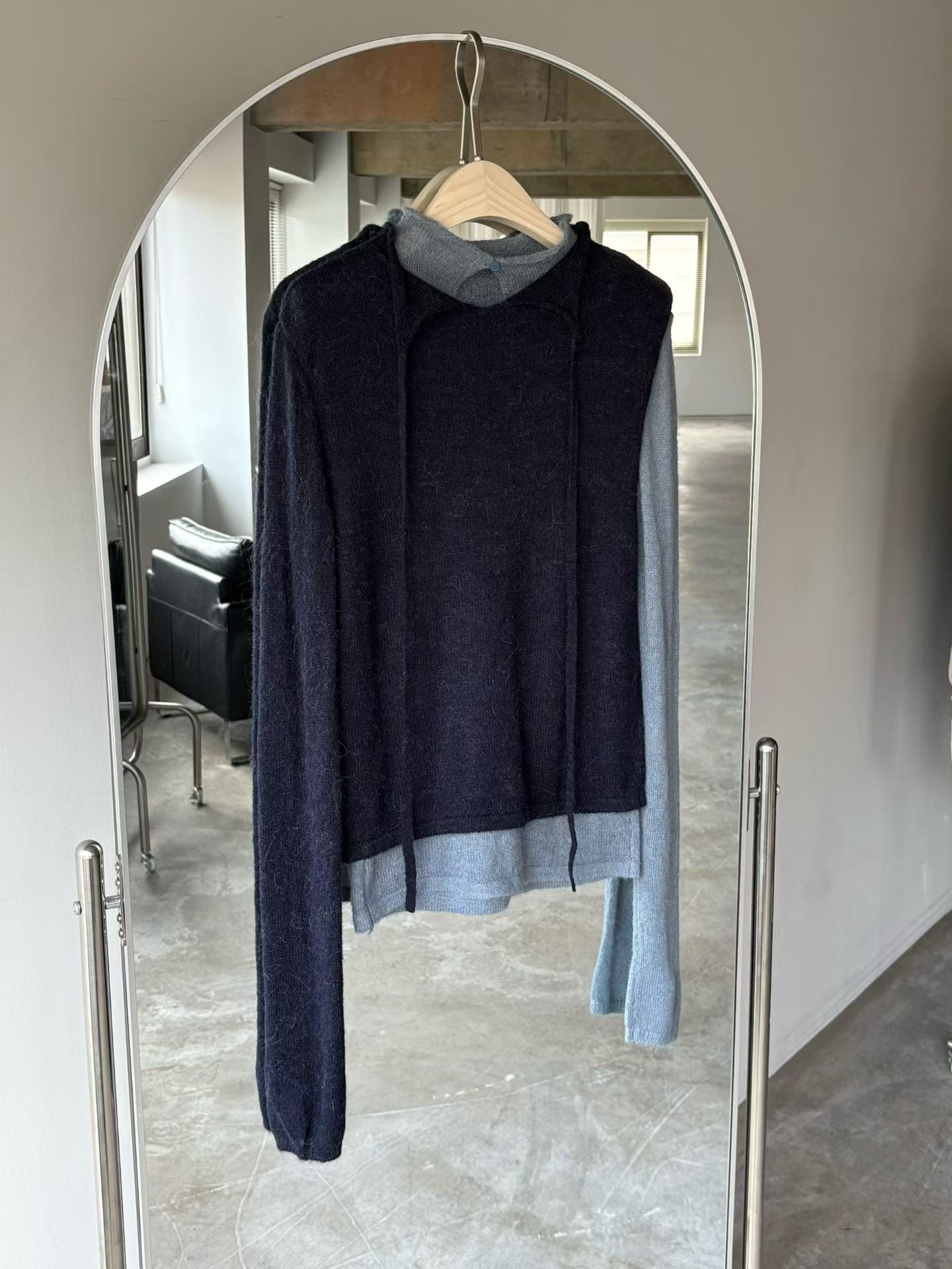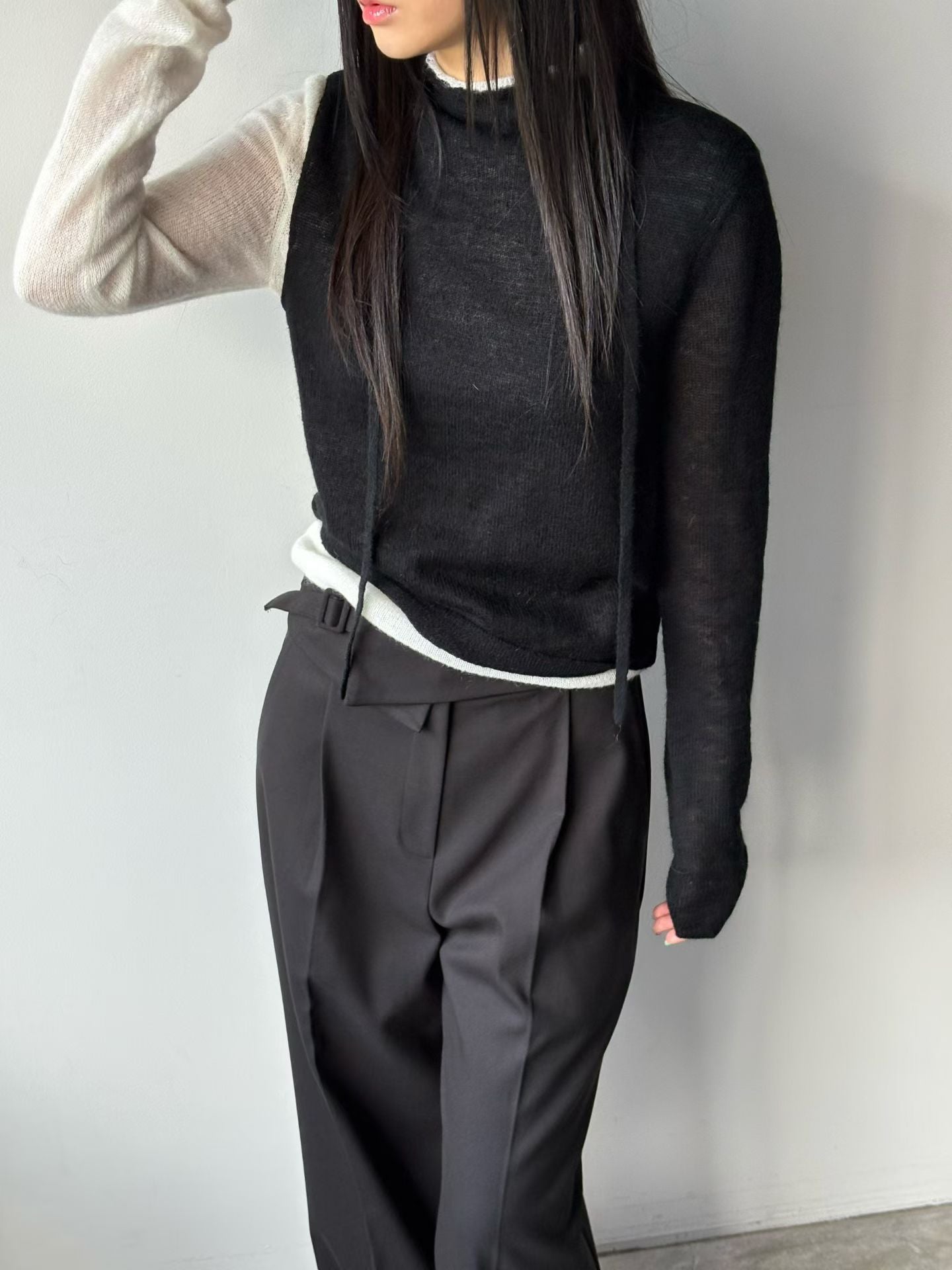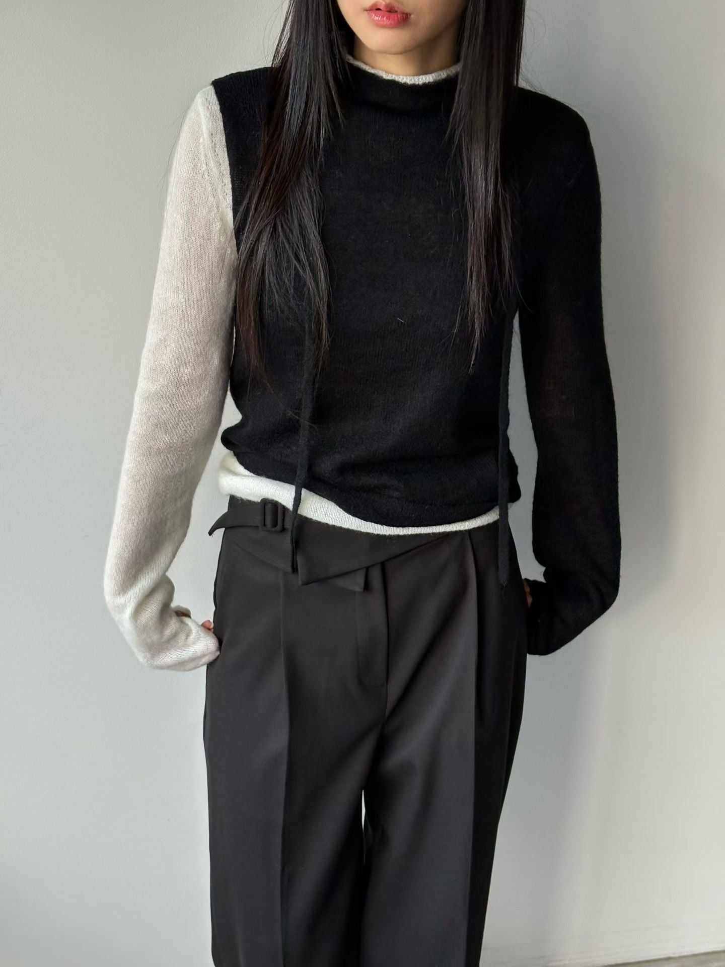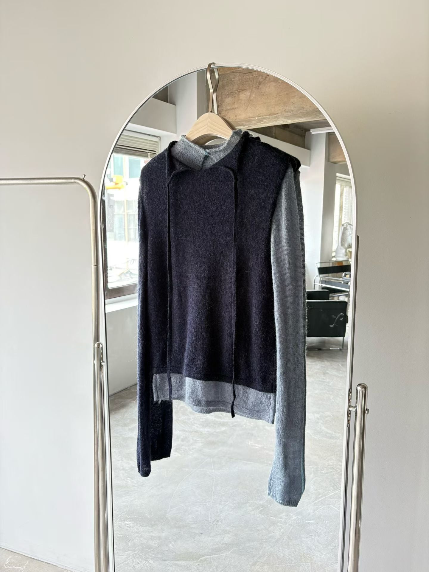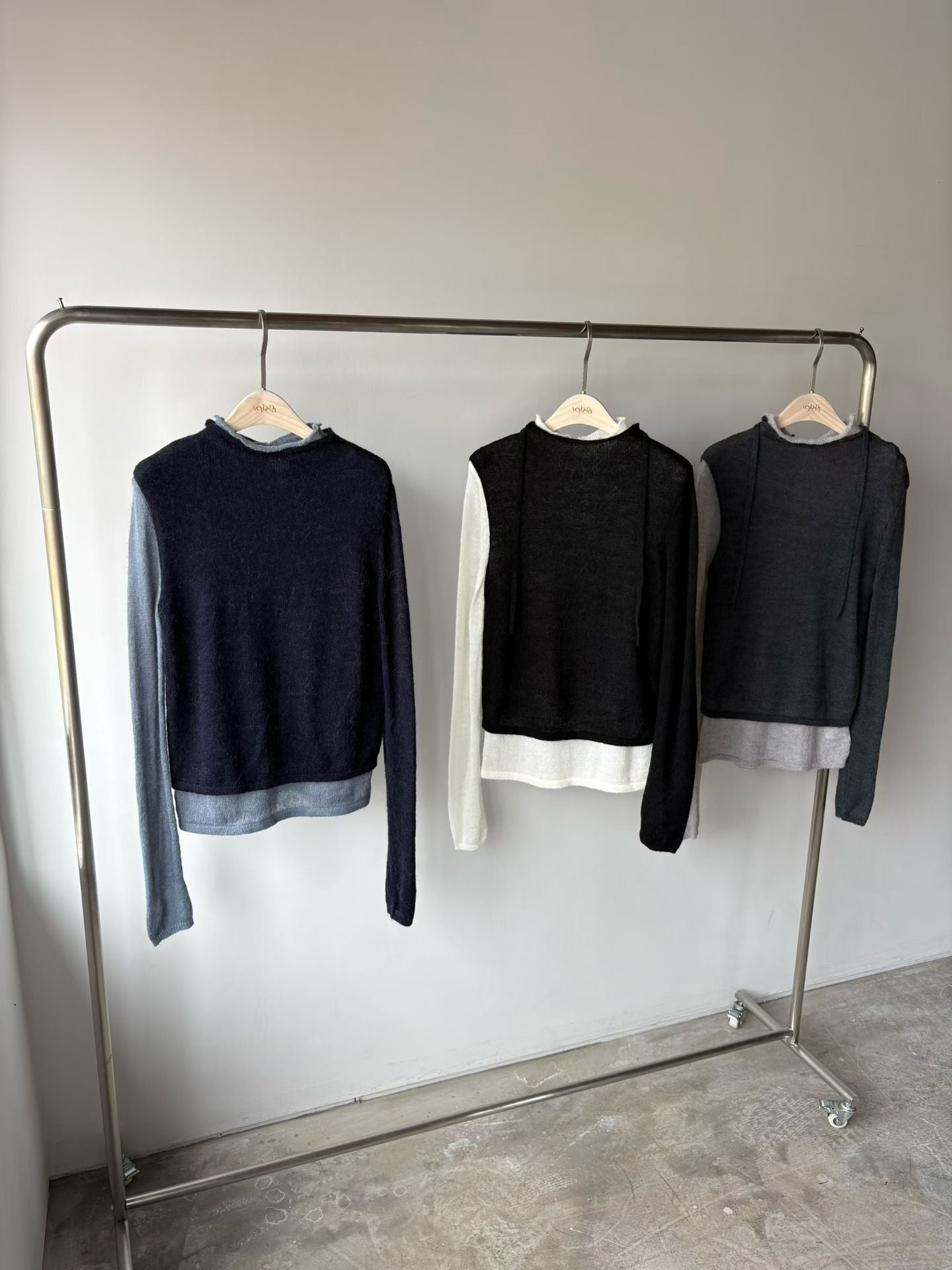 - 拼色袖設計(視覺超加分):左右袖使用不同色階毛料,營造“無造作但很時髦”的韓系風格,比一般素色毛衣更顯設計與層次感。