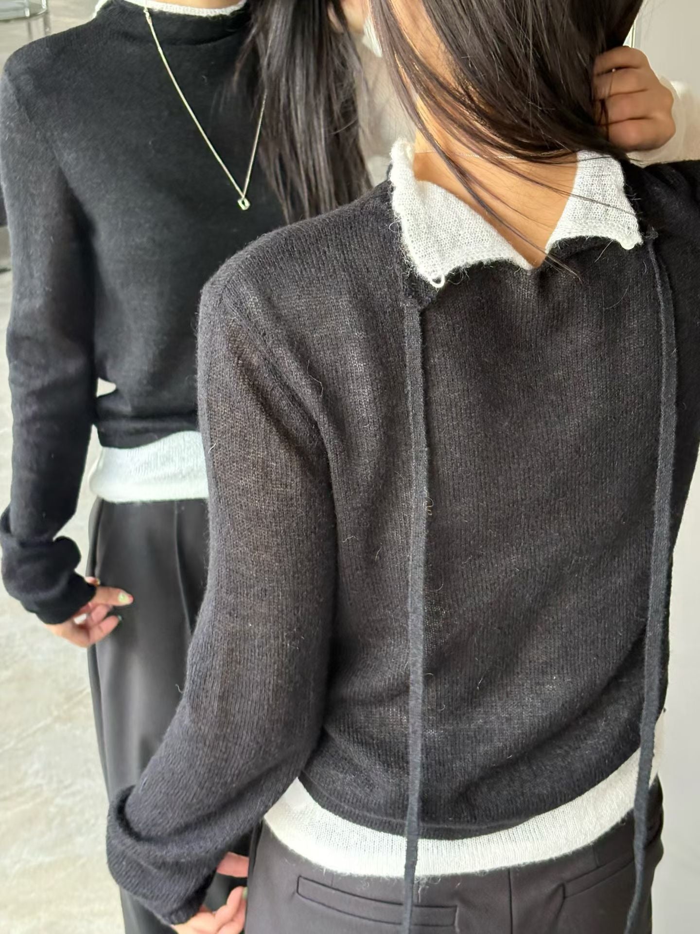 - 此款最大亮點:拼色袖+假兩件領口+質感材質蓬鬆感,完全是今年冬季韓系必買款。