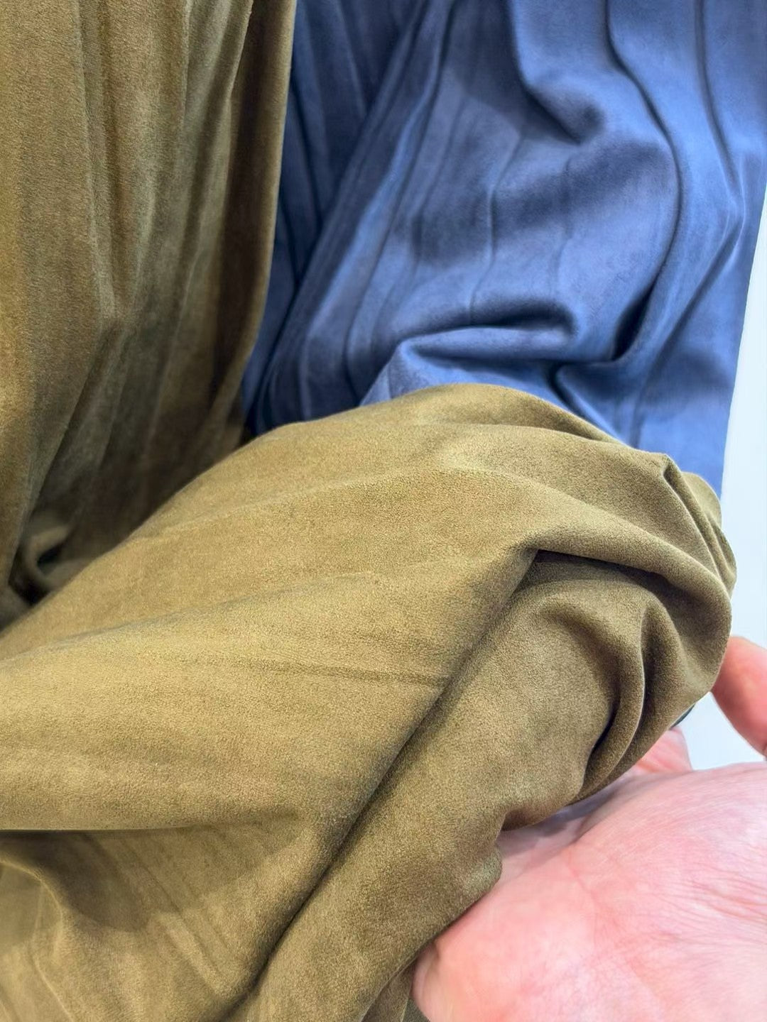 ⫸ 霧面麂皮感:低光澤的霧絨表面,質感顯高級、修飾腿型與臀部線條。