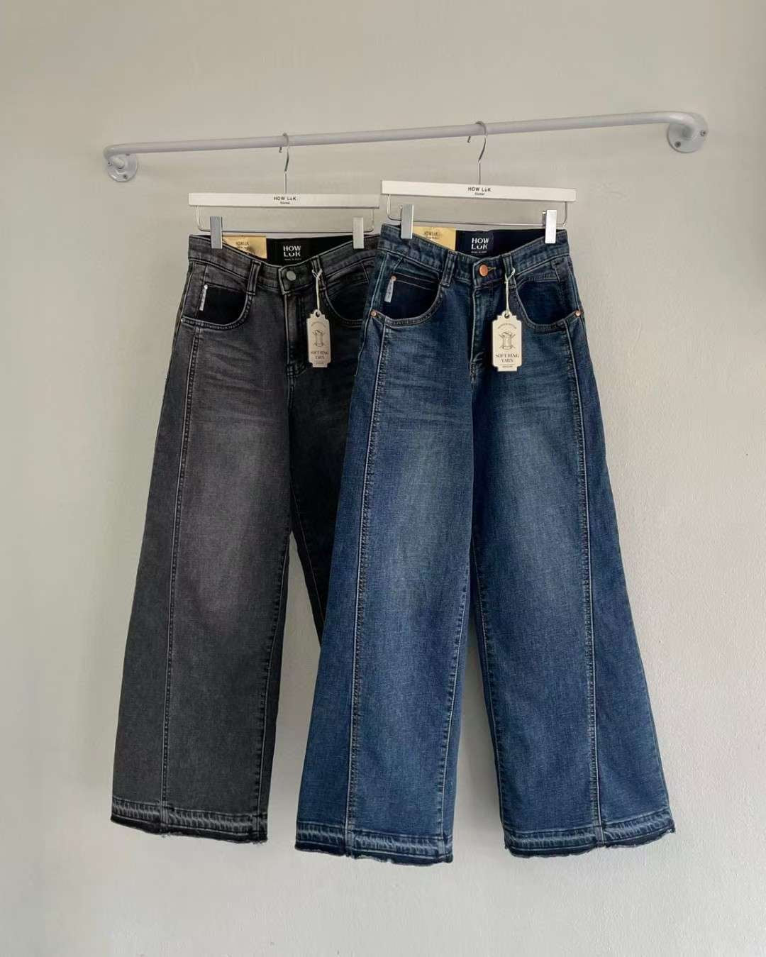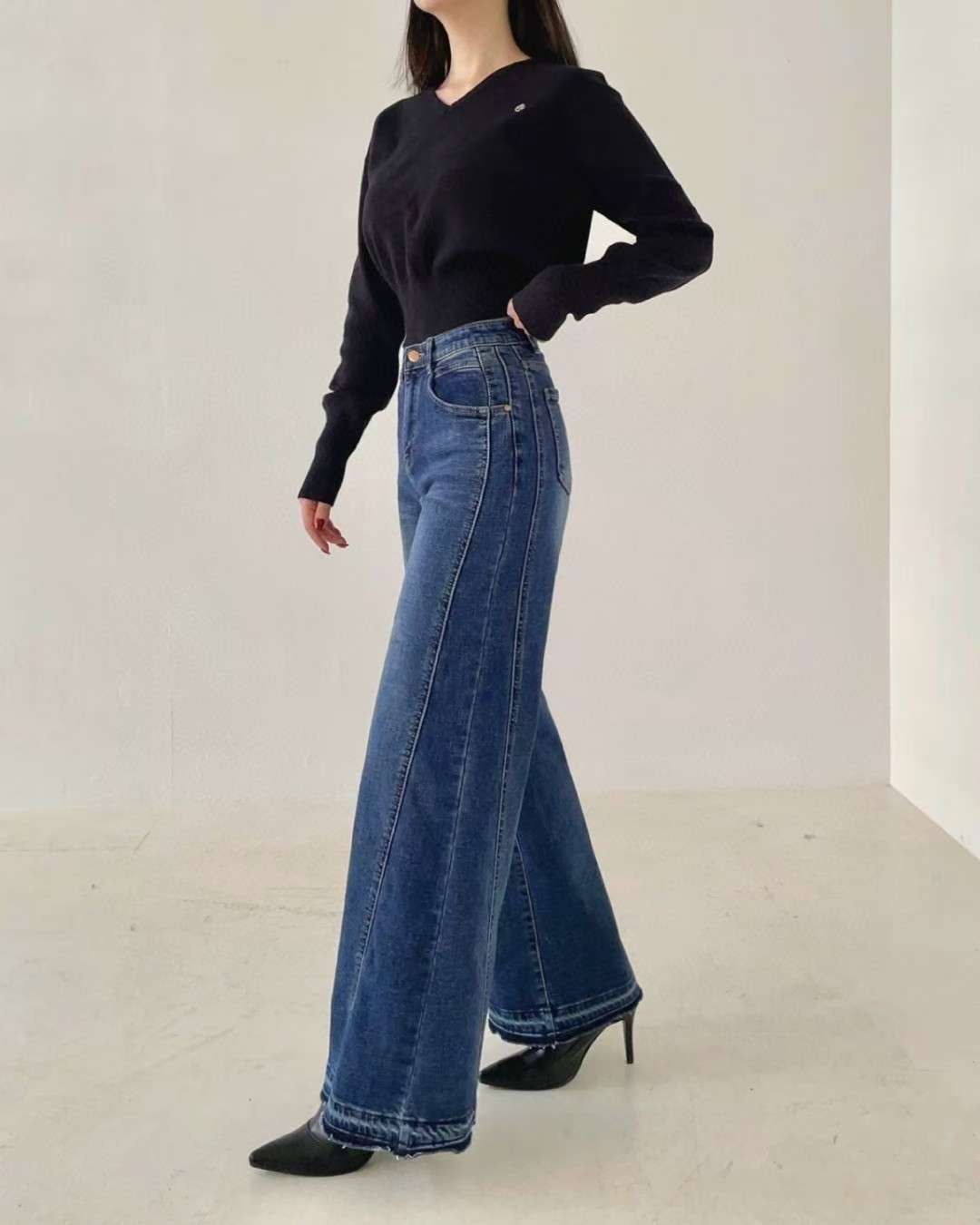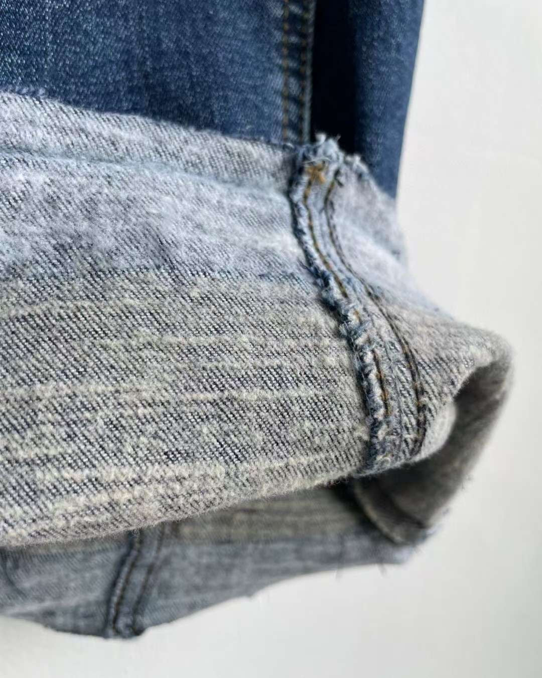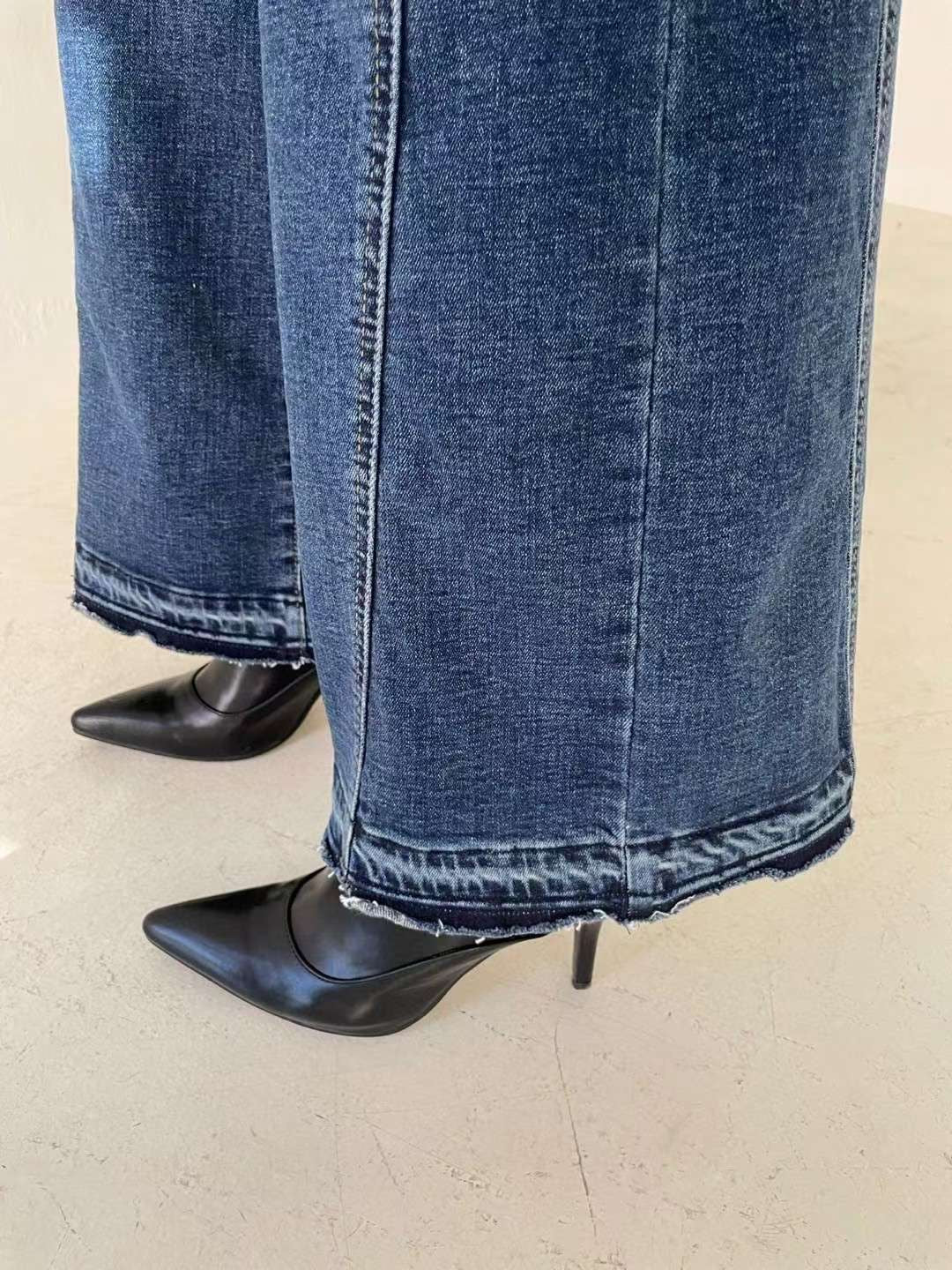 •  下擺毛邊拼接:特殊毛邊刷色+雙層拼接工法,打造「腿更直」的視覺效果,細節滿滿、時髦度直接升級。