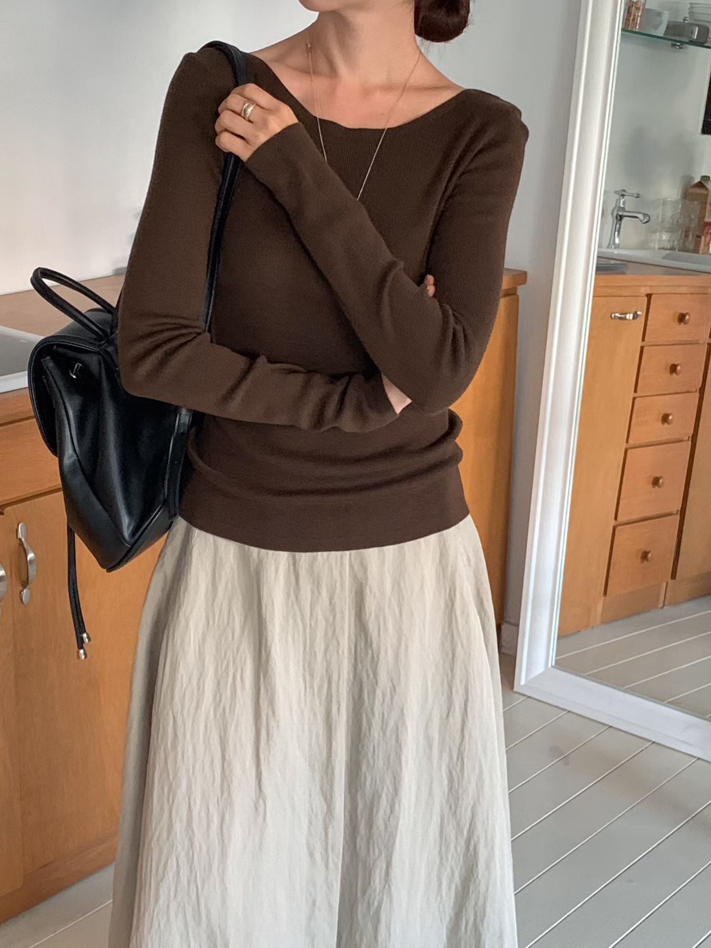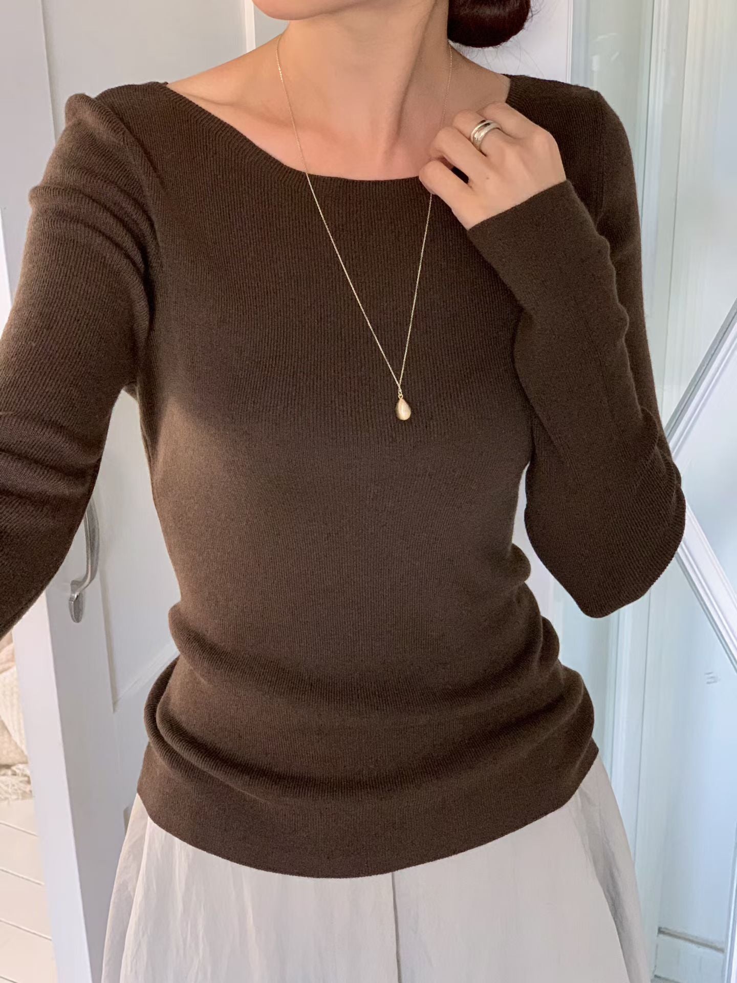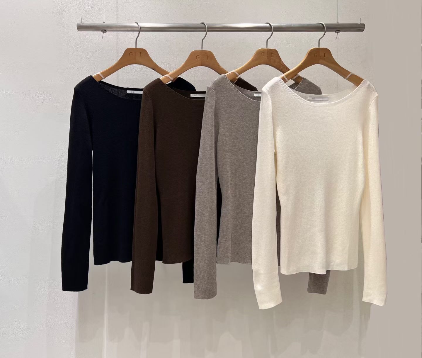 ⫸ 優雅船領:露出鎖骨與頸部線條,修飾臉型;單穿氣質、內搭不搶戲。