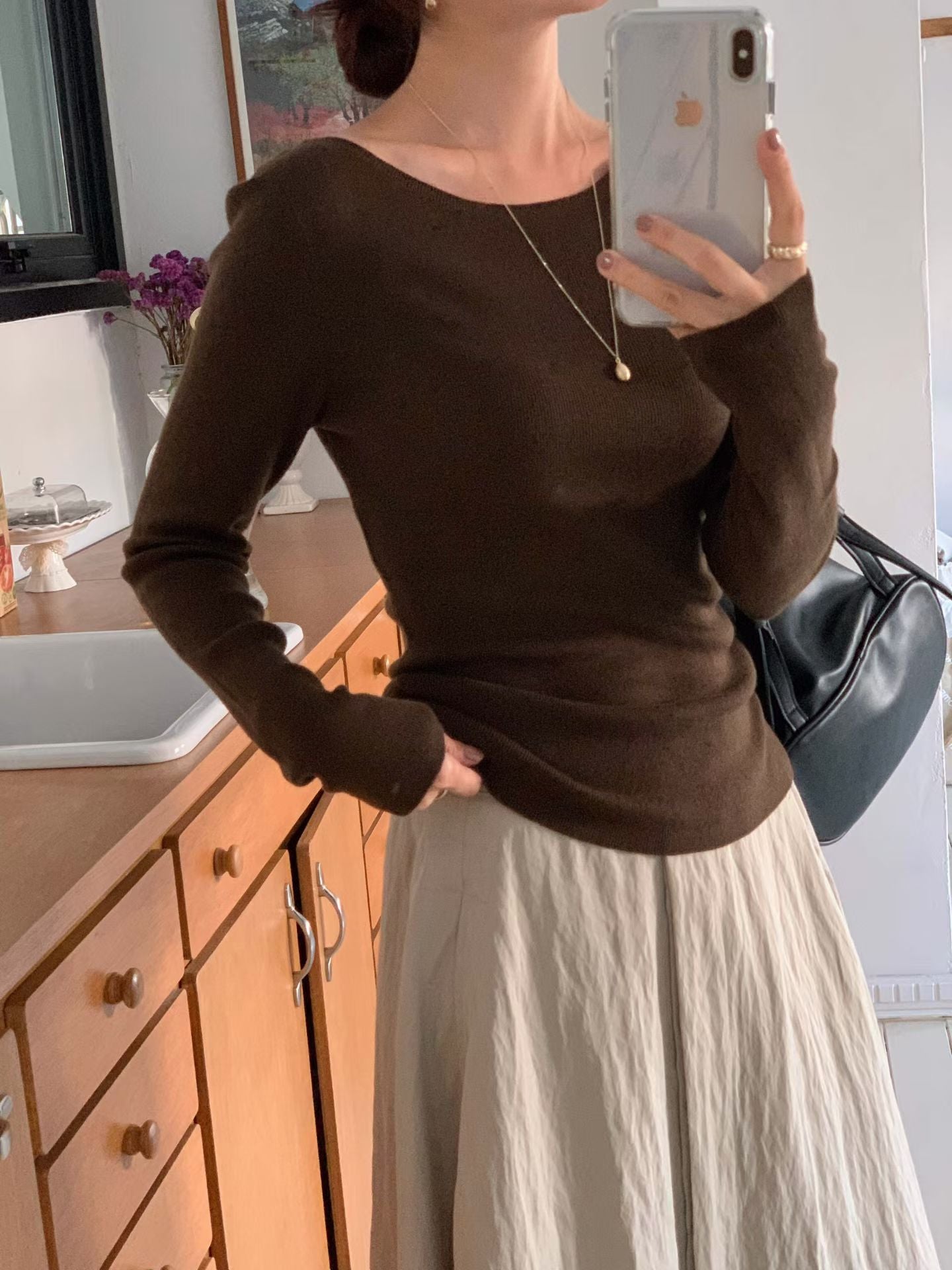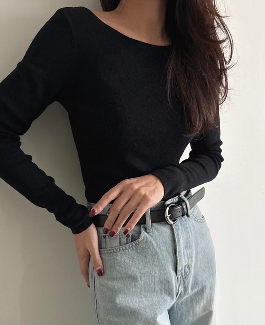 ♡顯瘦細針織船領薄長袖♡ (C251130)