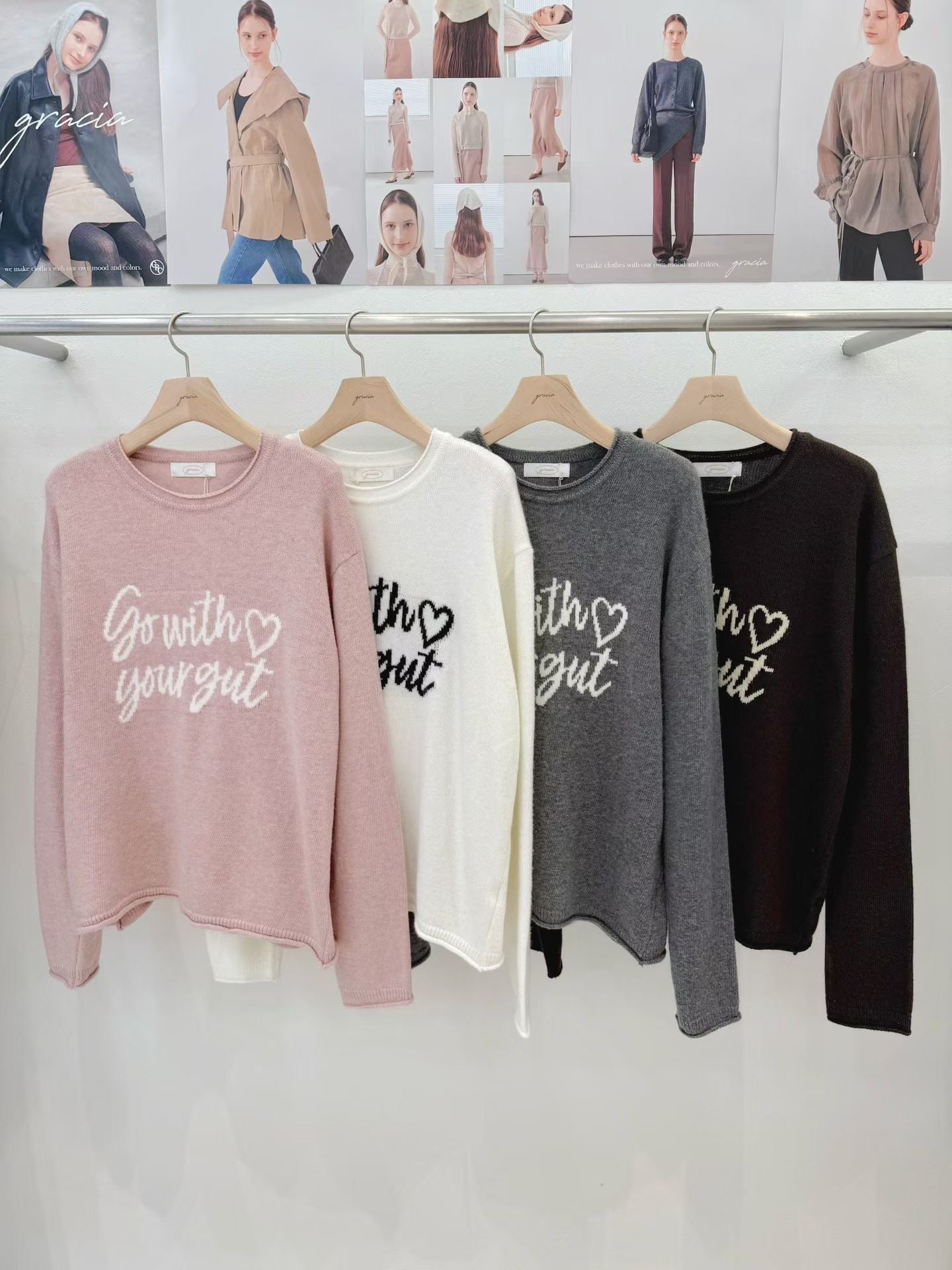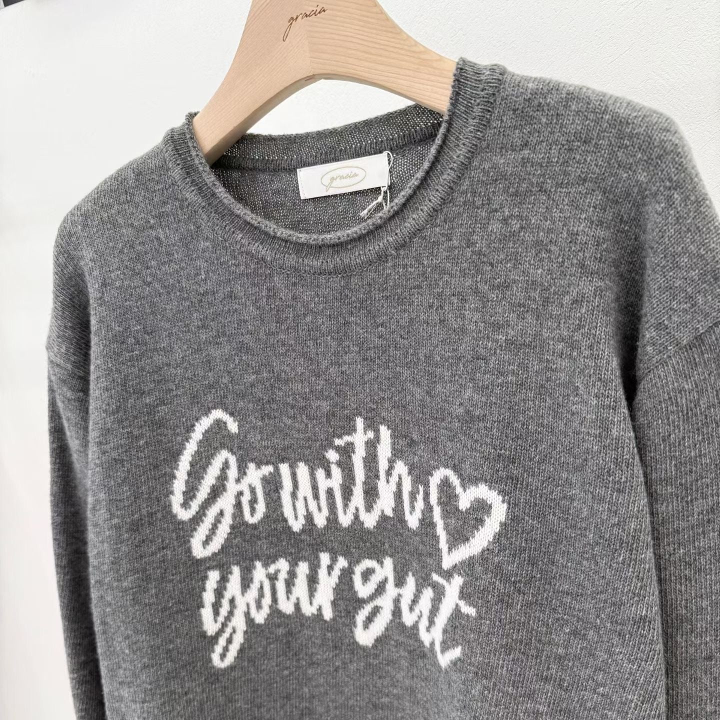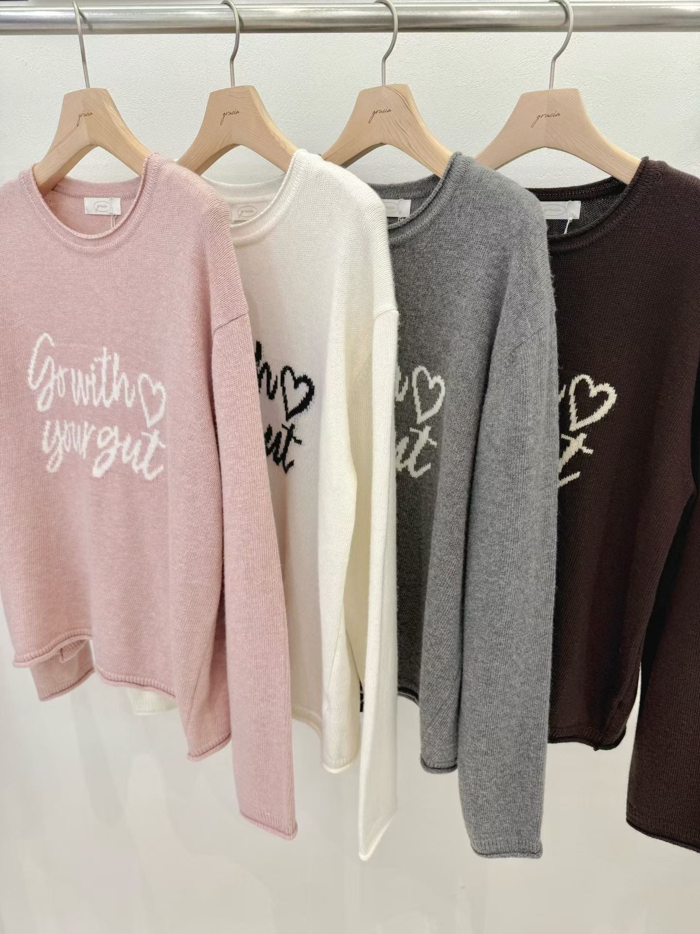 ⫸ 正面手寫感字體『Go with your gut』+小愛心提花~甜中帶率性態度,辨識度高。