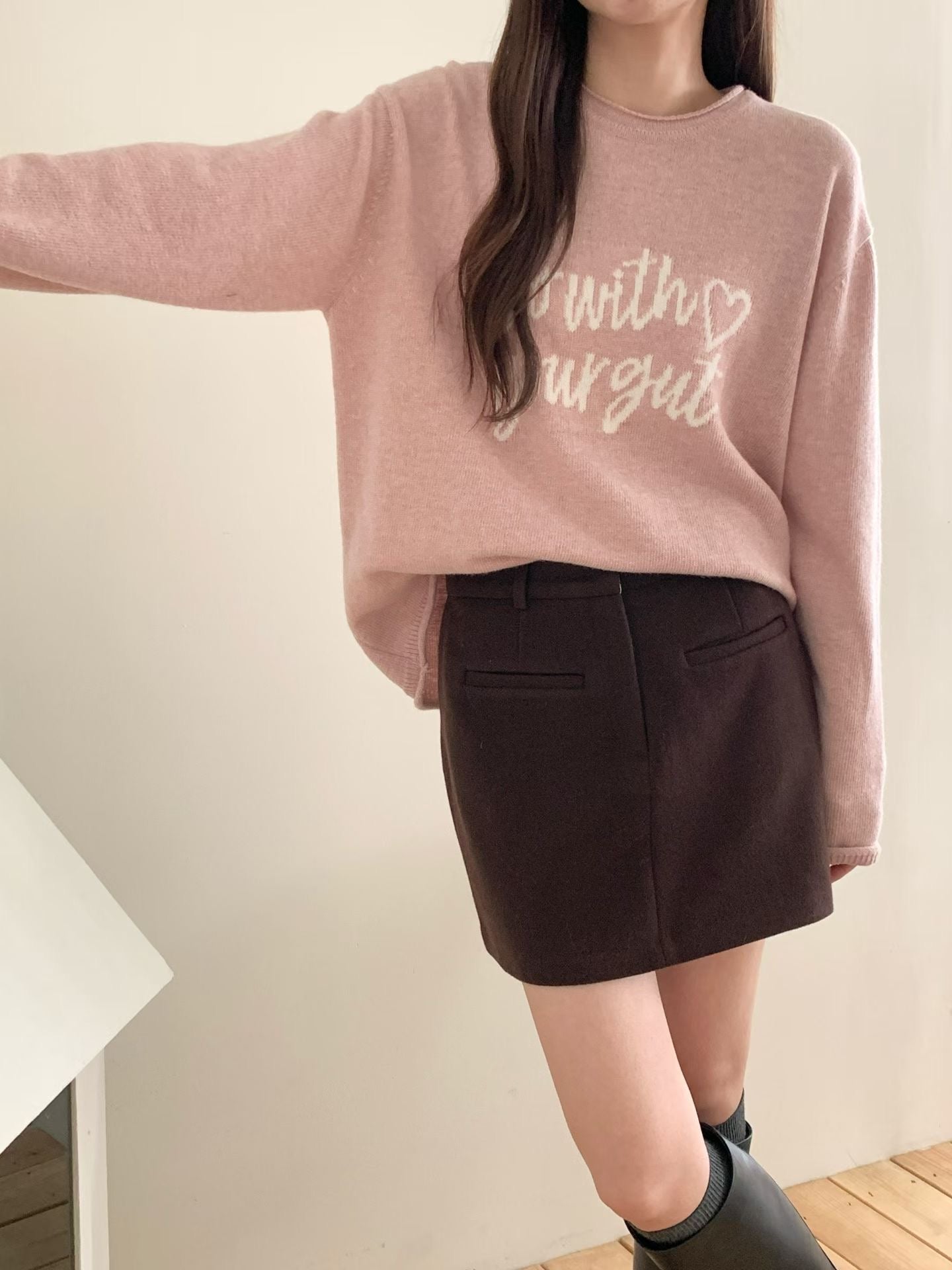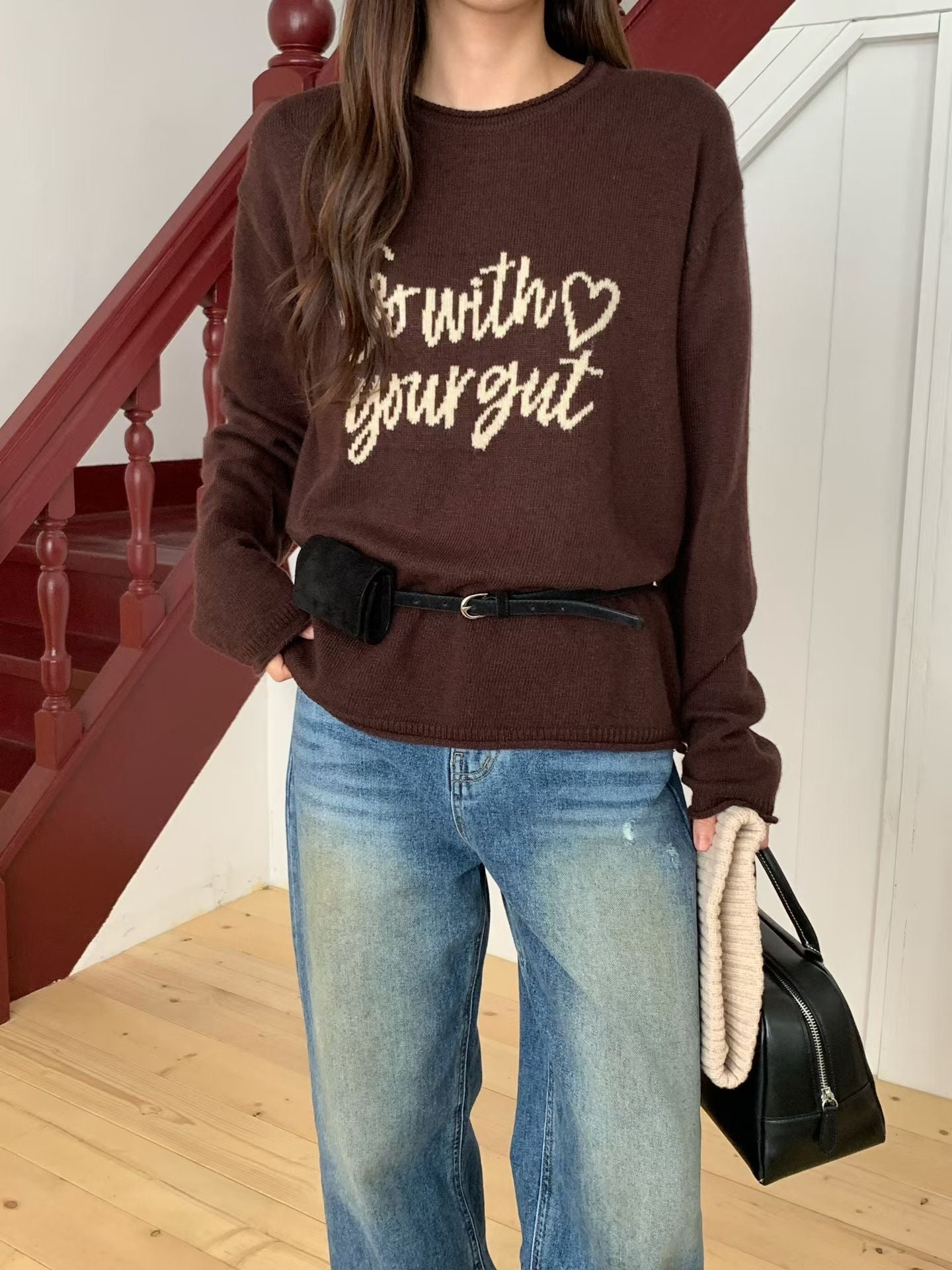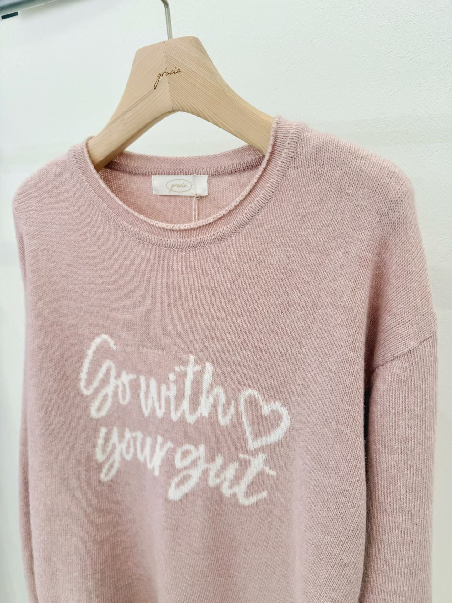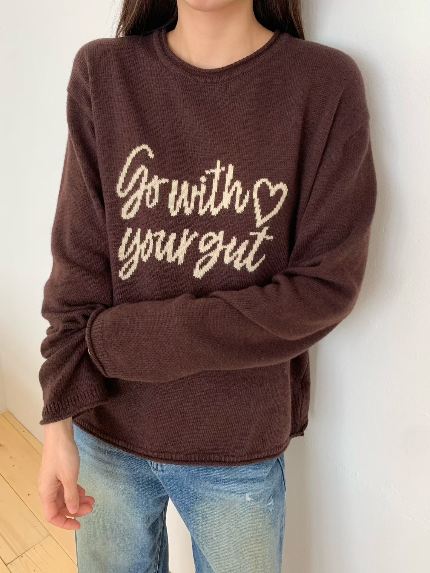 ⫸ 正面手寫感字體『Go with your gut』+小愛心提花~甜中帶率性態度,辨識度高。